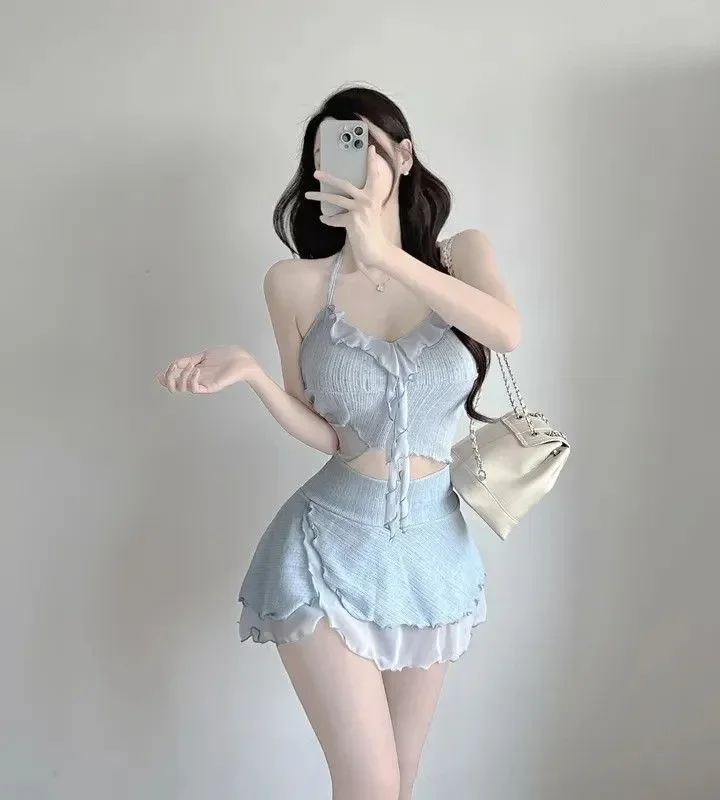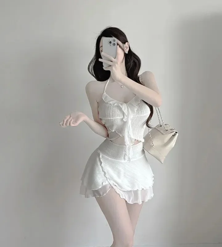 • Bikini Set : This product is a bikini set, offering a complete look with a split skirt and top, ideal for beach outings or pool parties.