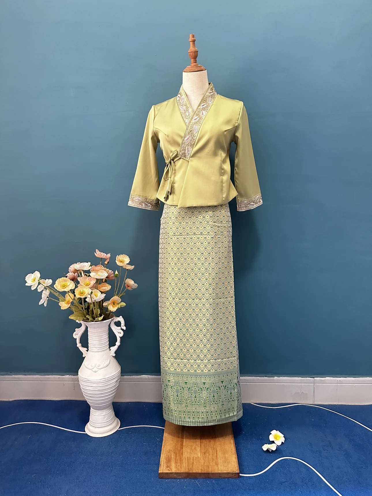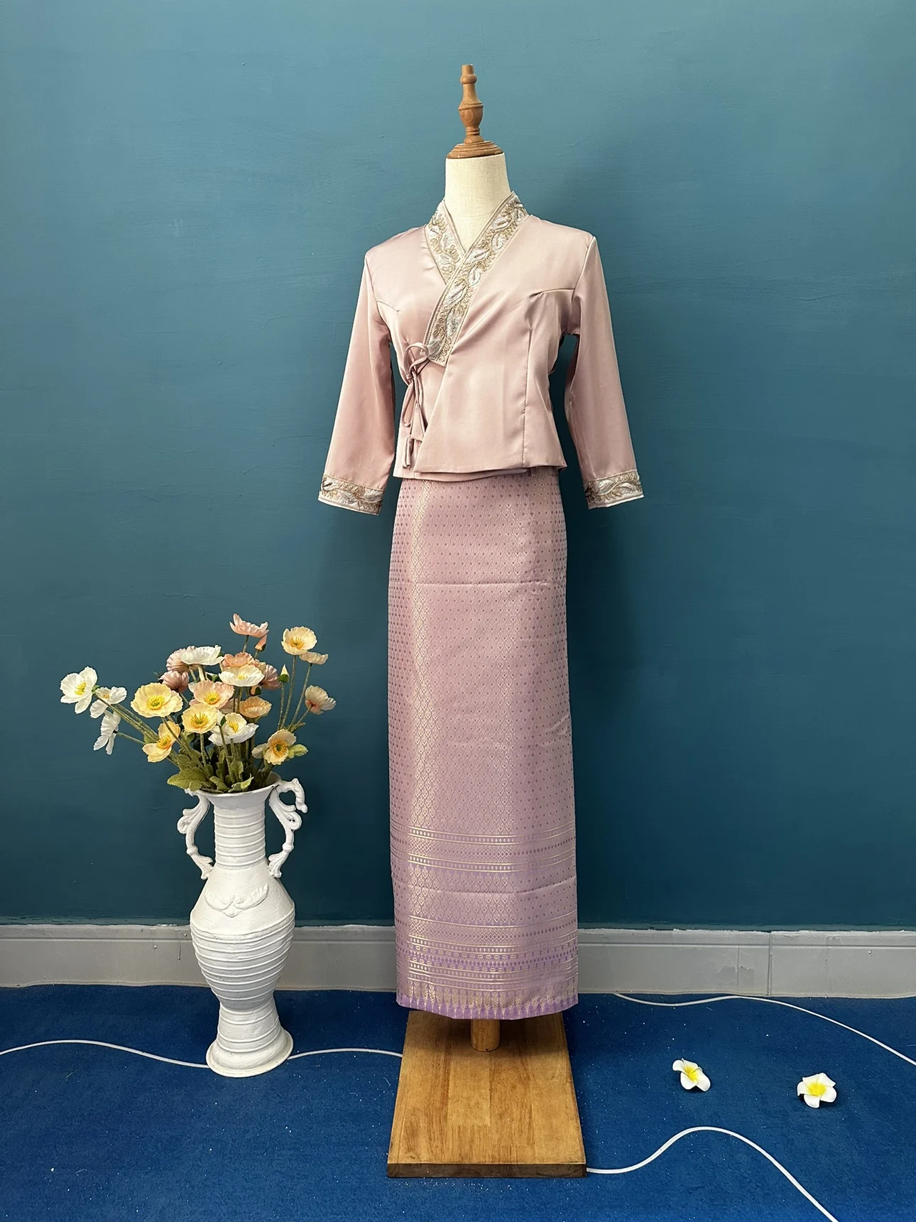 2025 Summer Traditional Dai Ethnic Thai Clothes Women’s Blouse and Long Skirt Set for Daily Wear Traditional Vietnamese Dress