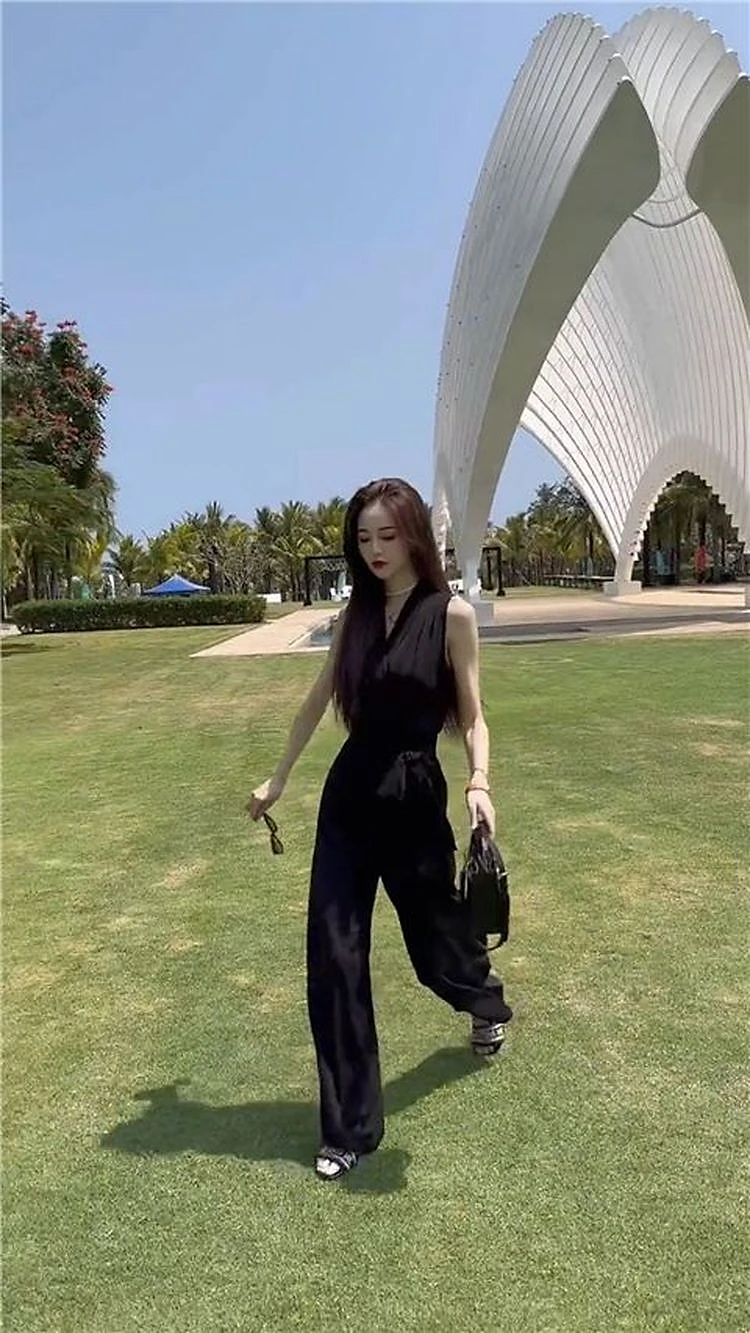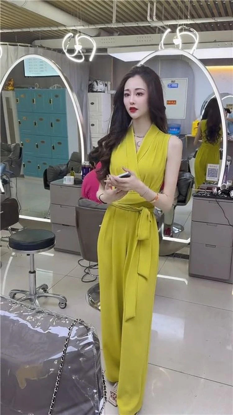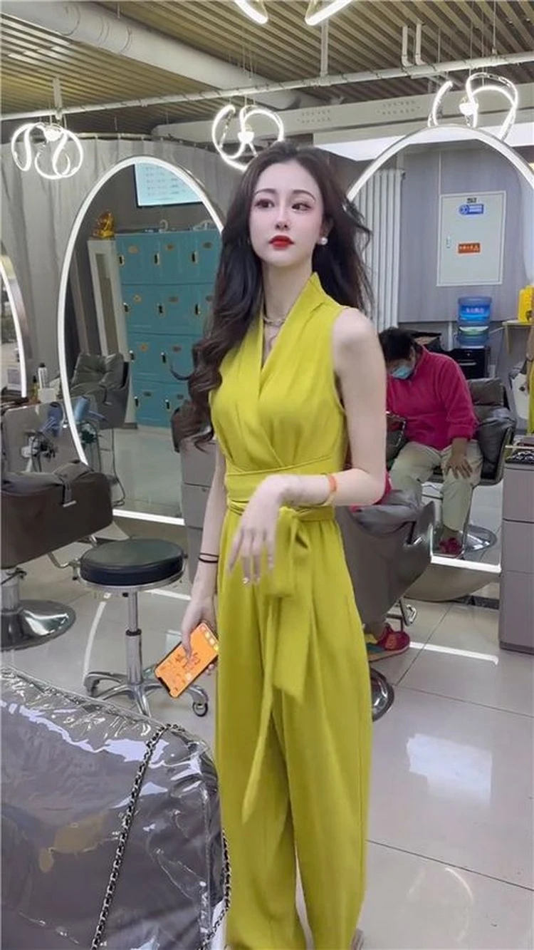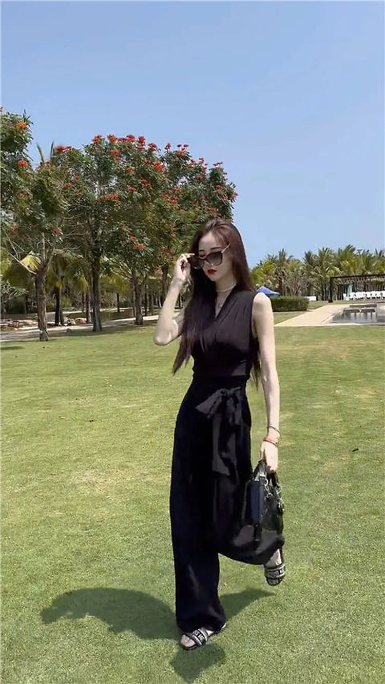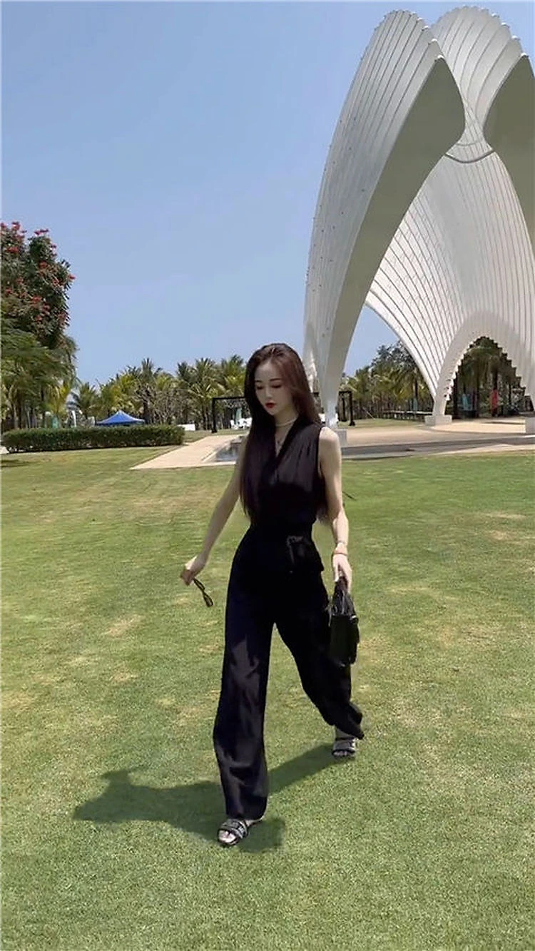 2025 Women’s Summer New V-neck Sleeveless Jumpsuit Female Solid Color Loose Rompers Ladies Fashion Long Wide Leg Pants P100
