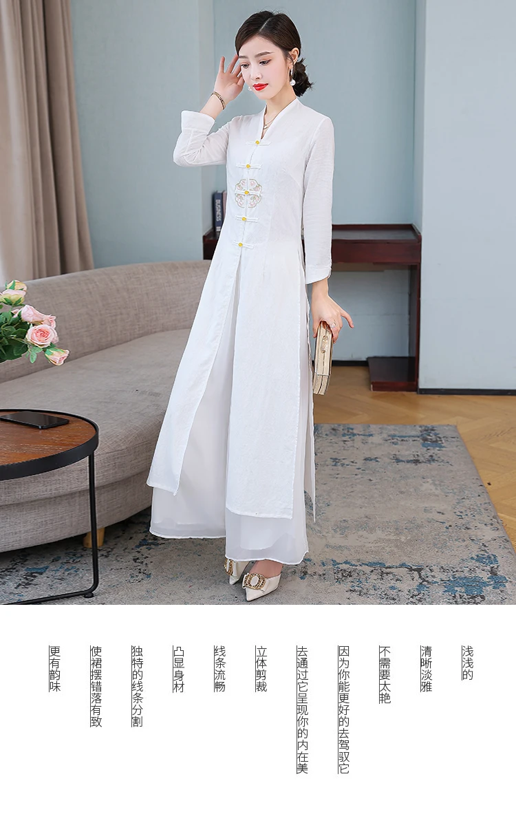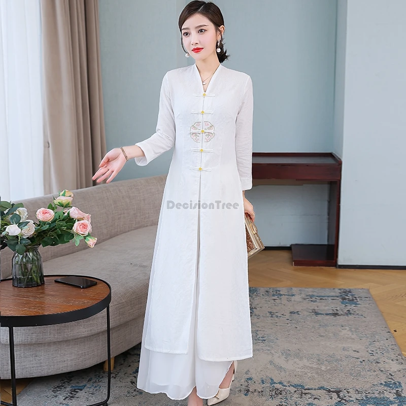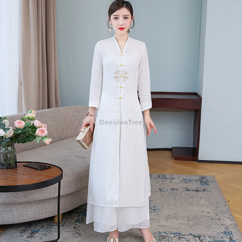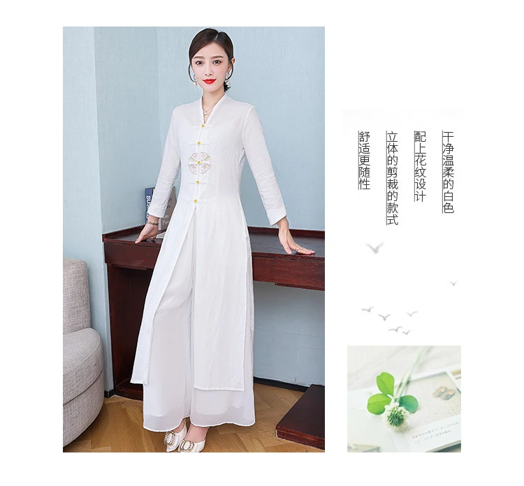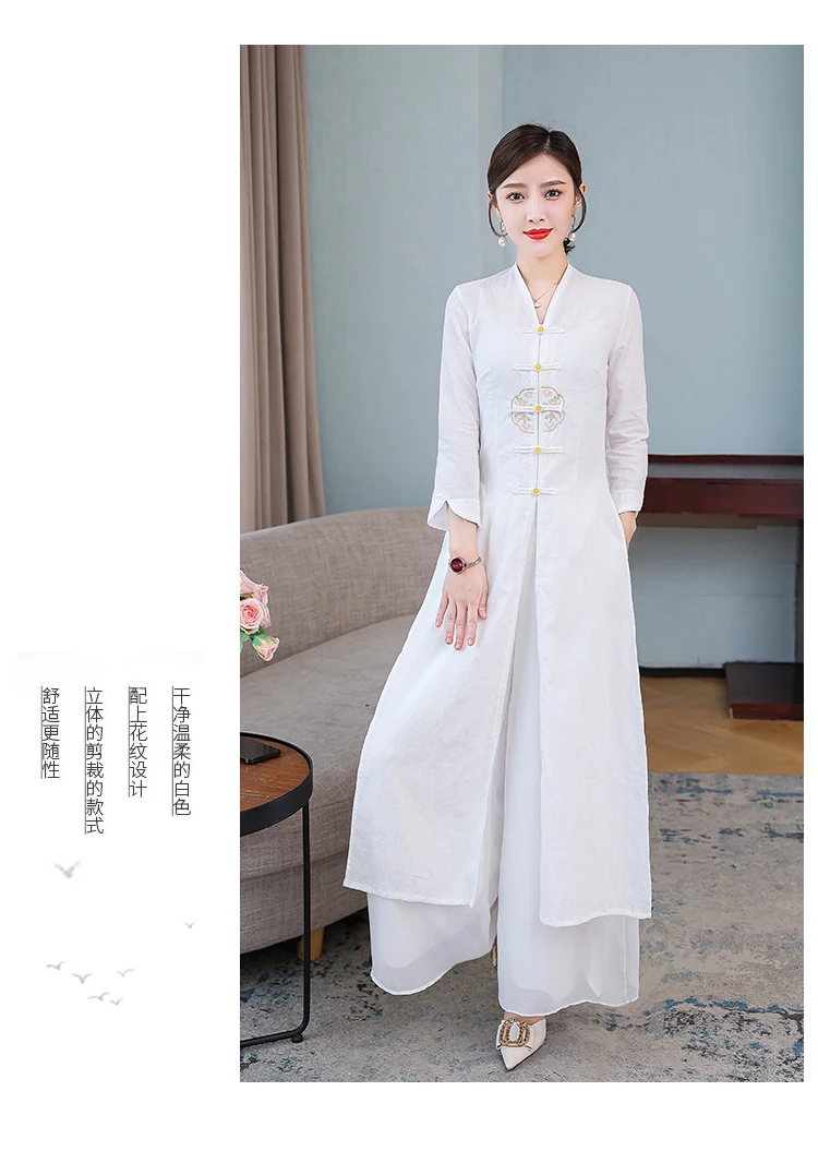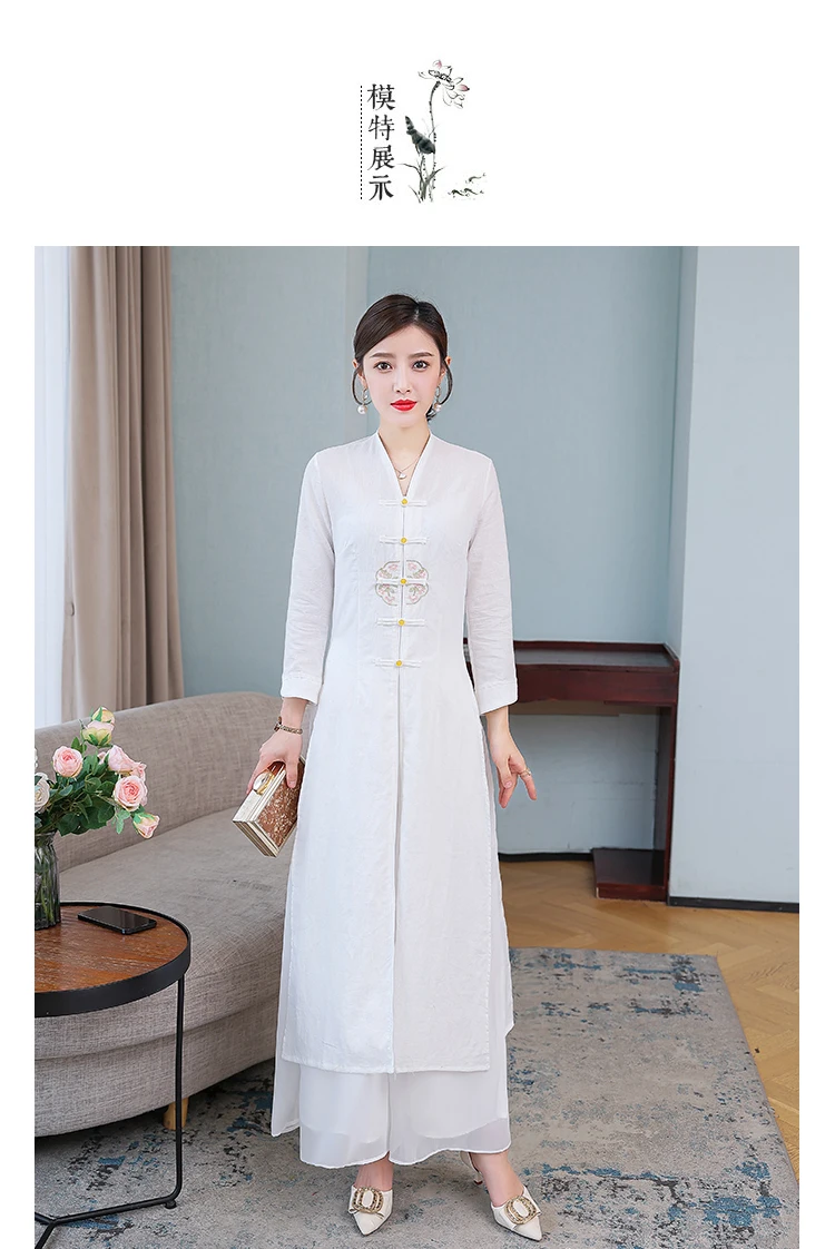 2026 chinese ethnic literature art embroidery tea garment loose comfortable yoga clothes vintage fairy elegant chiffon qipao set