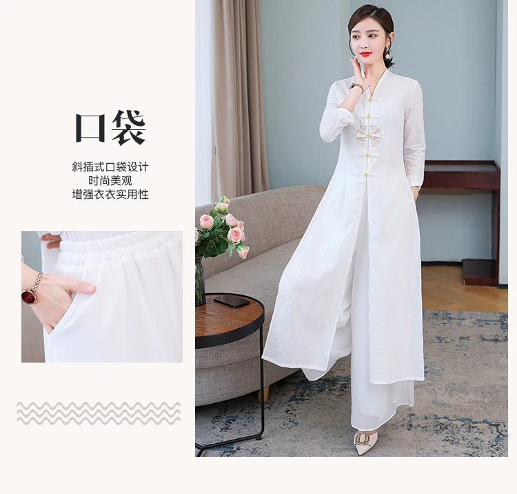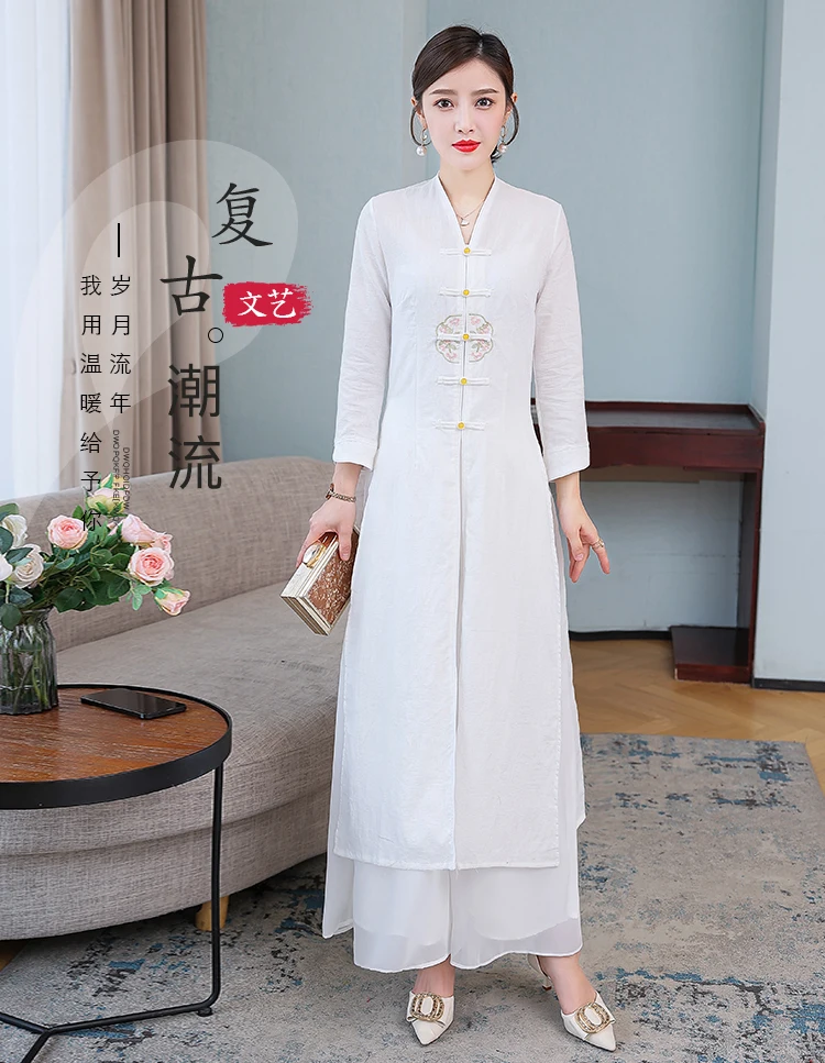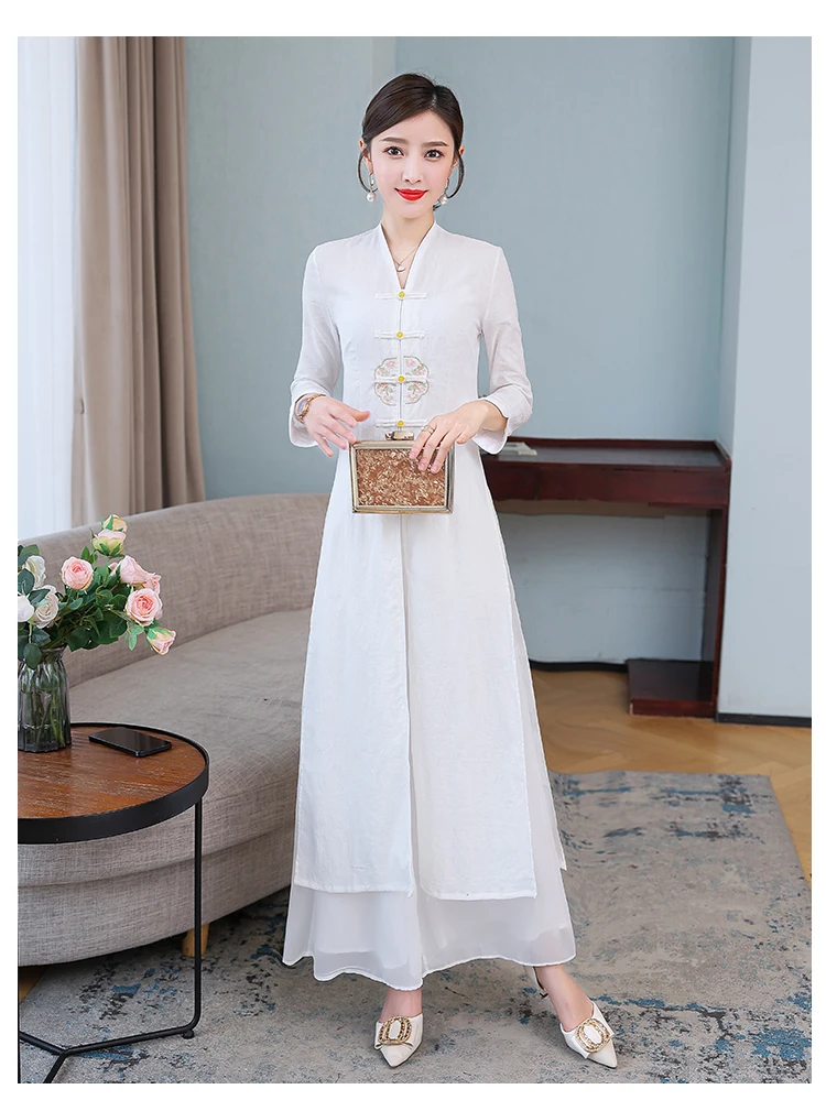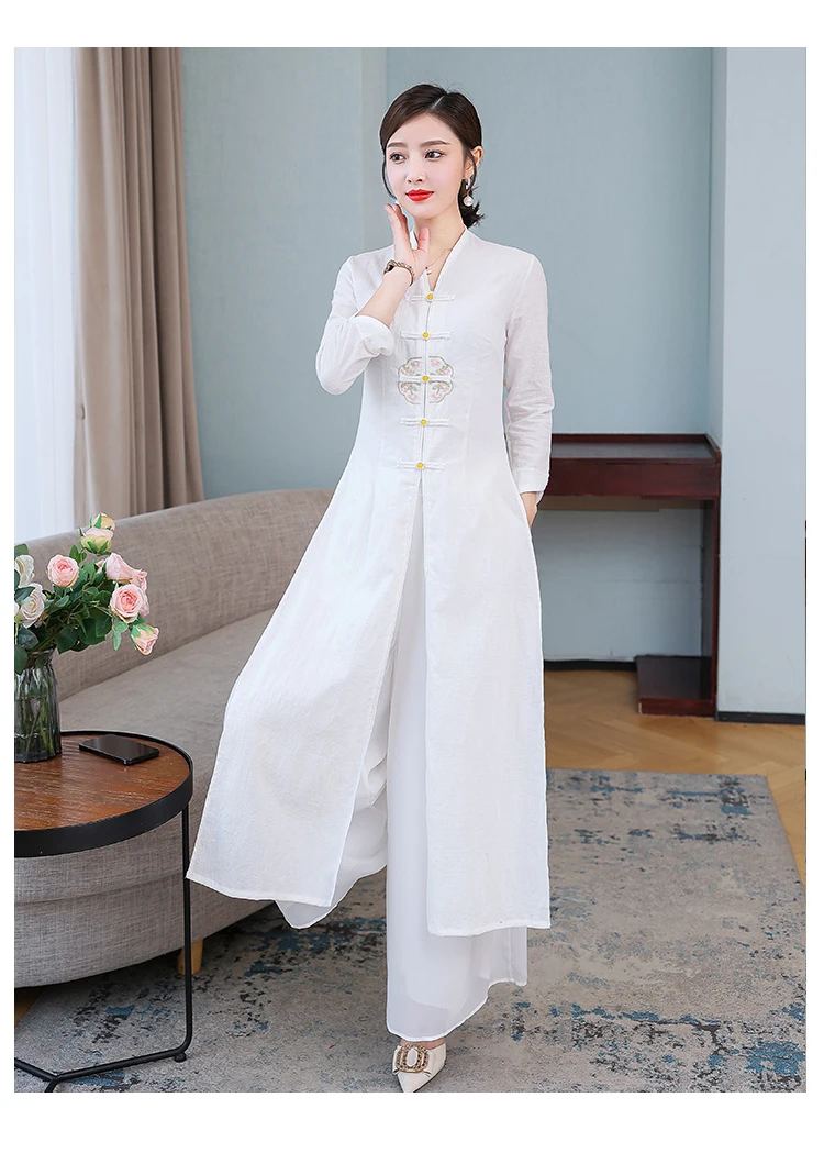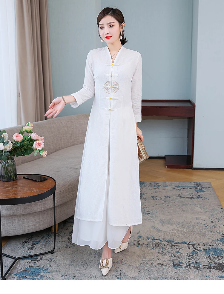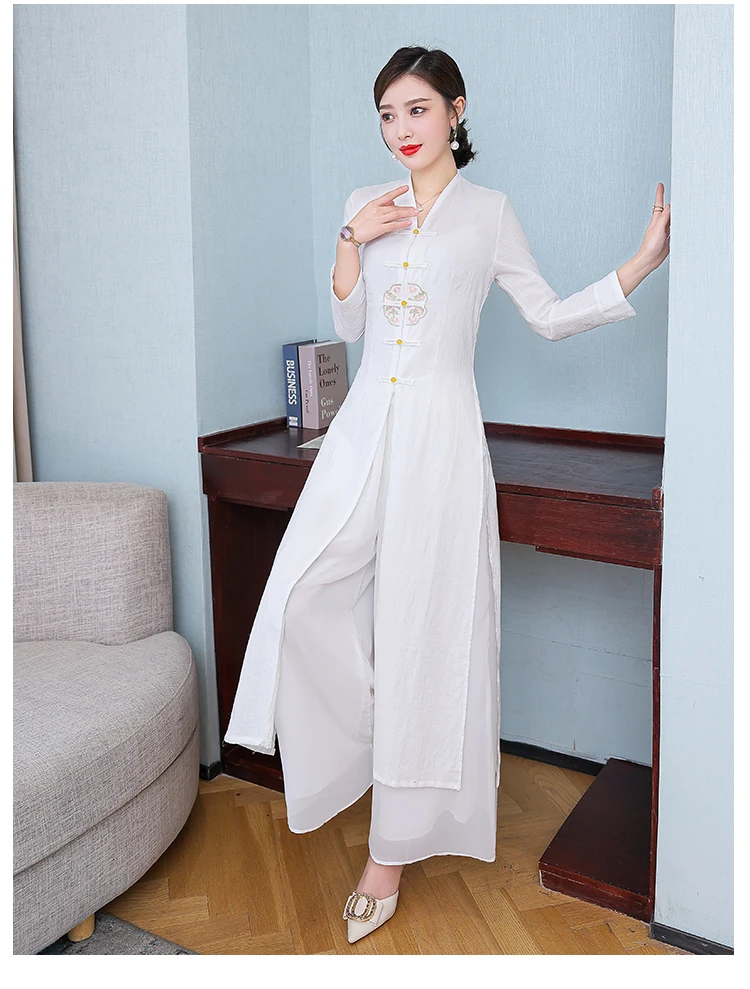 2026 chinese ethnic literature art embroidery tea garment loose comfortable yoga clothes vintage fairy elegant chiffon qipao set