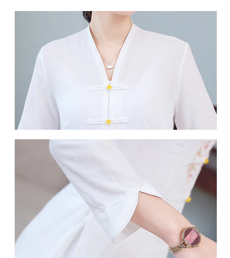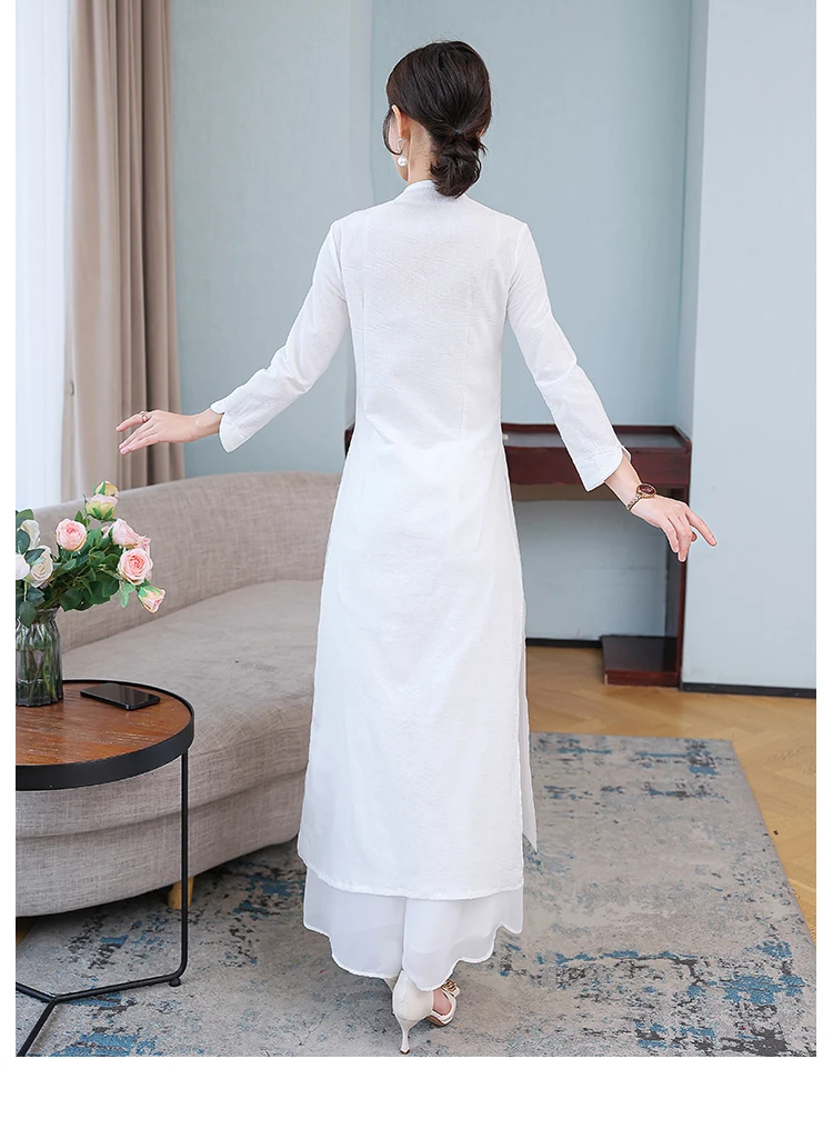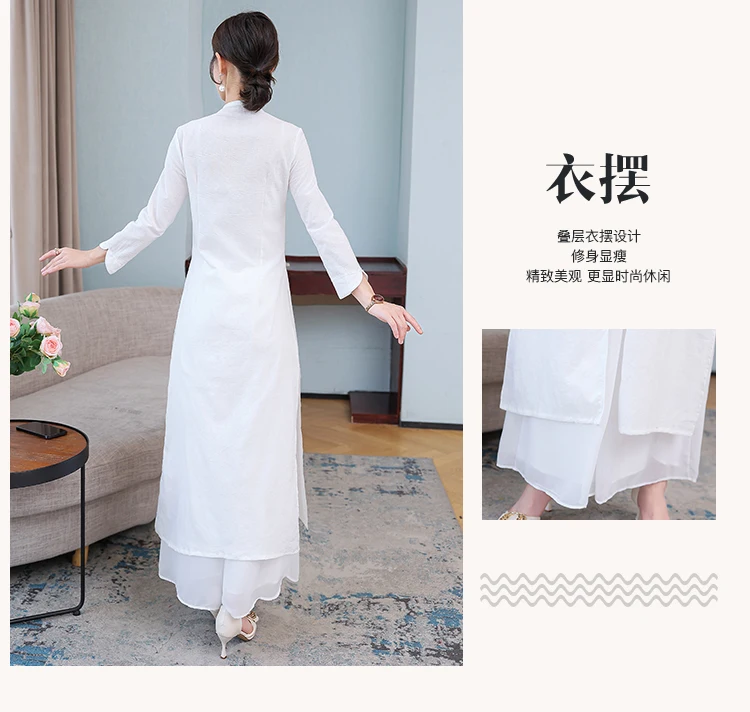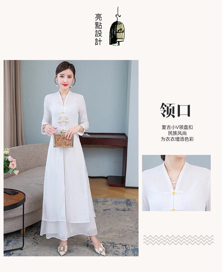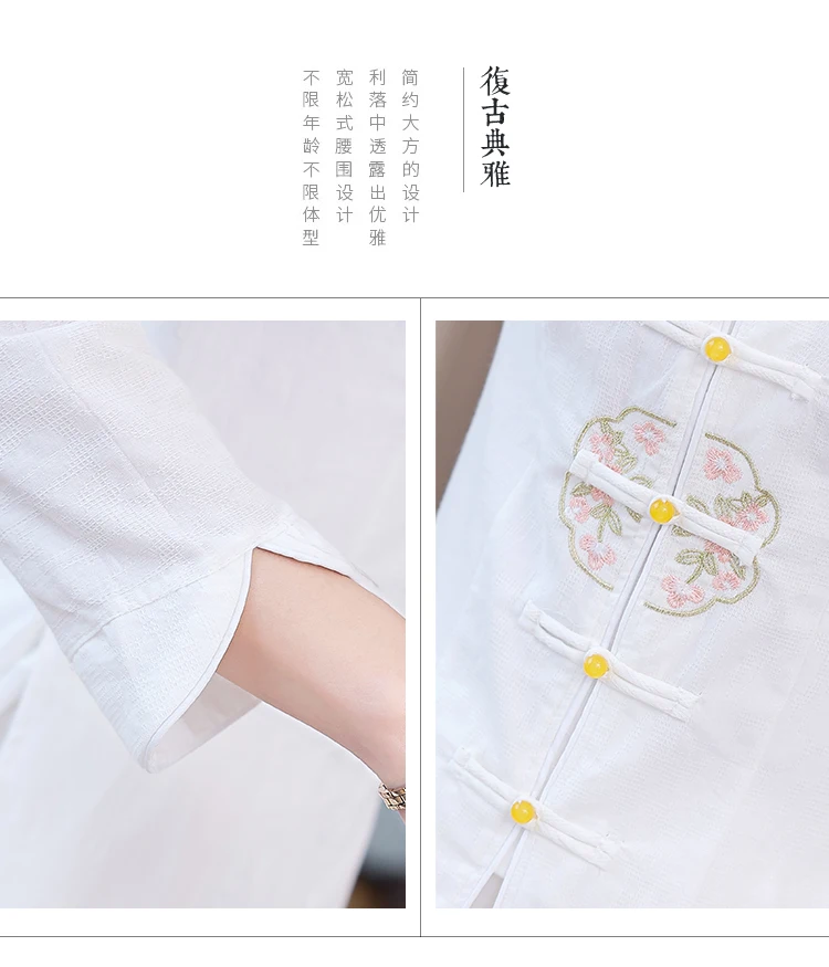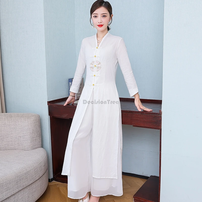 2026 chinese ethnic literature art embroidery tea garment loose comfortable yoga clothes vintage fairy elegant chiffon qipao set
