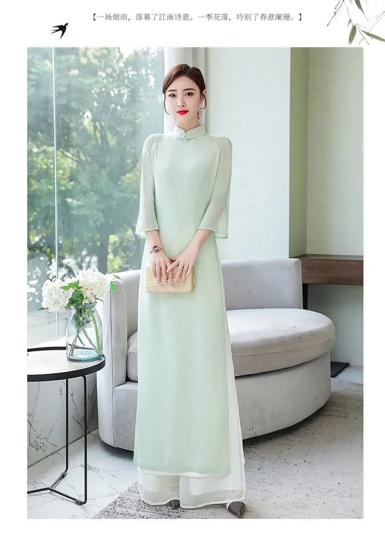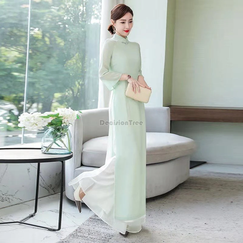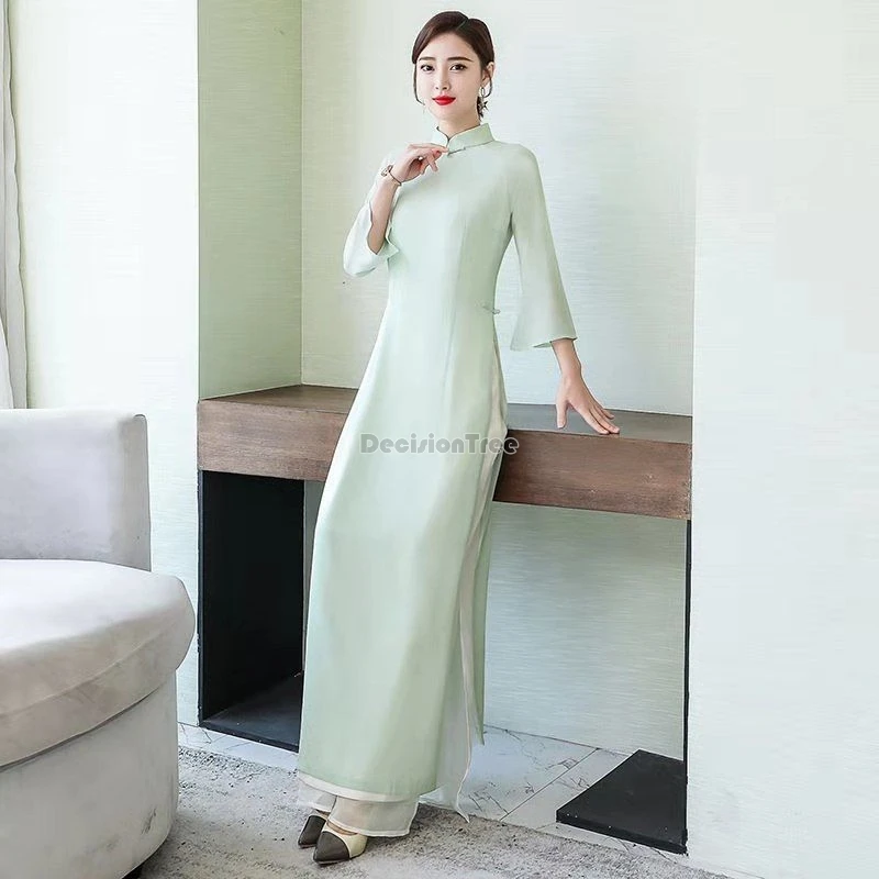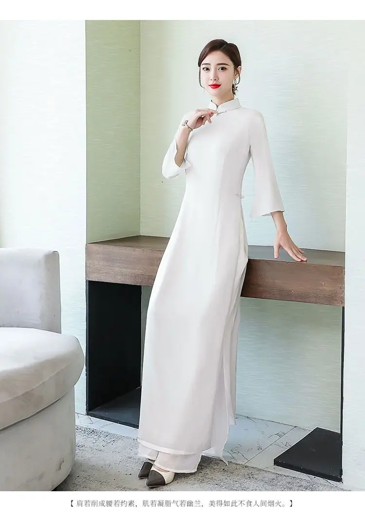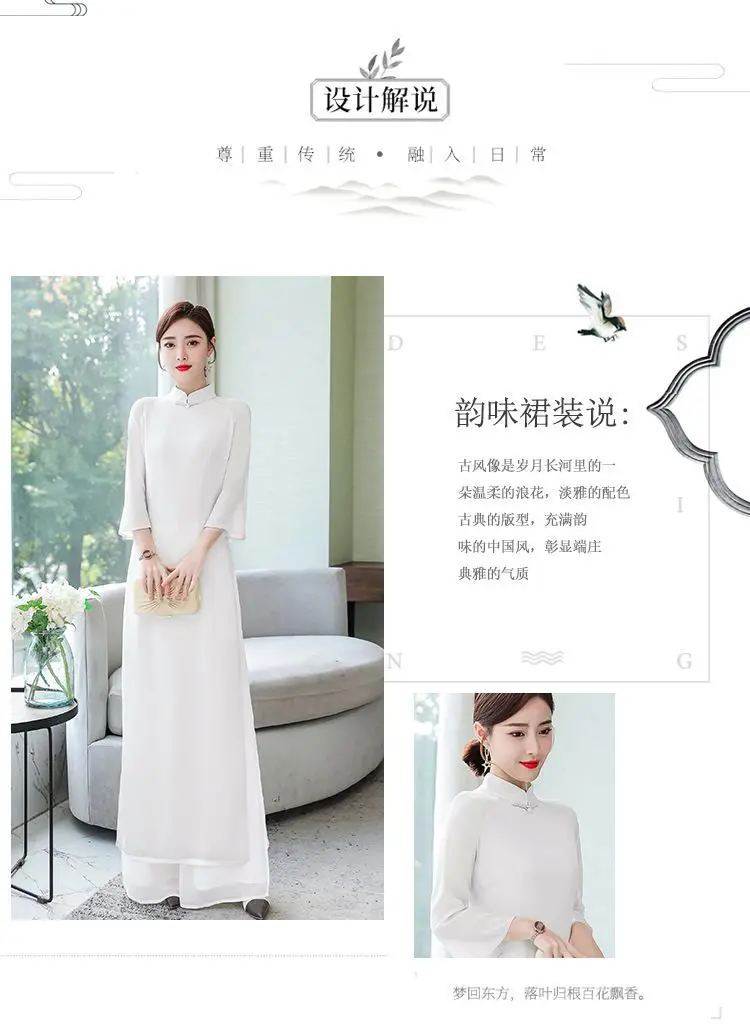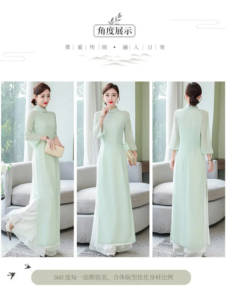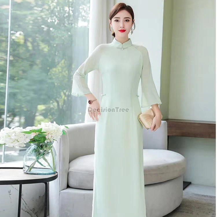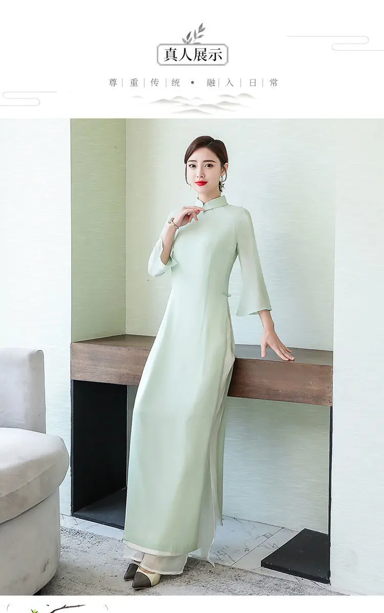 2026 simple gentle temperament vietnam aodai qipao improved chinese style elegant slim cheongsam retro casual daily tea garment