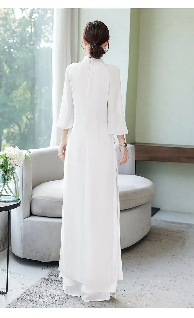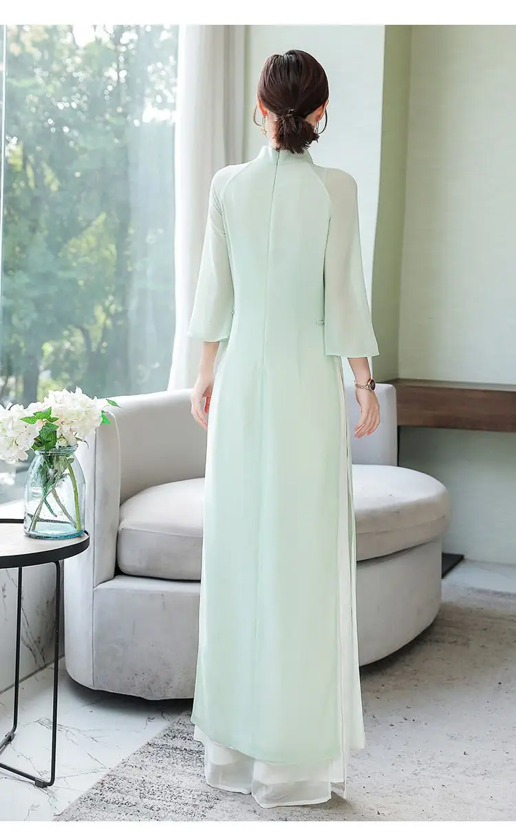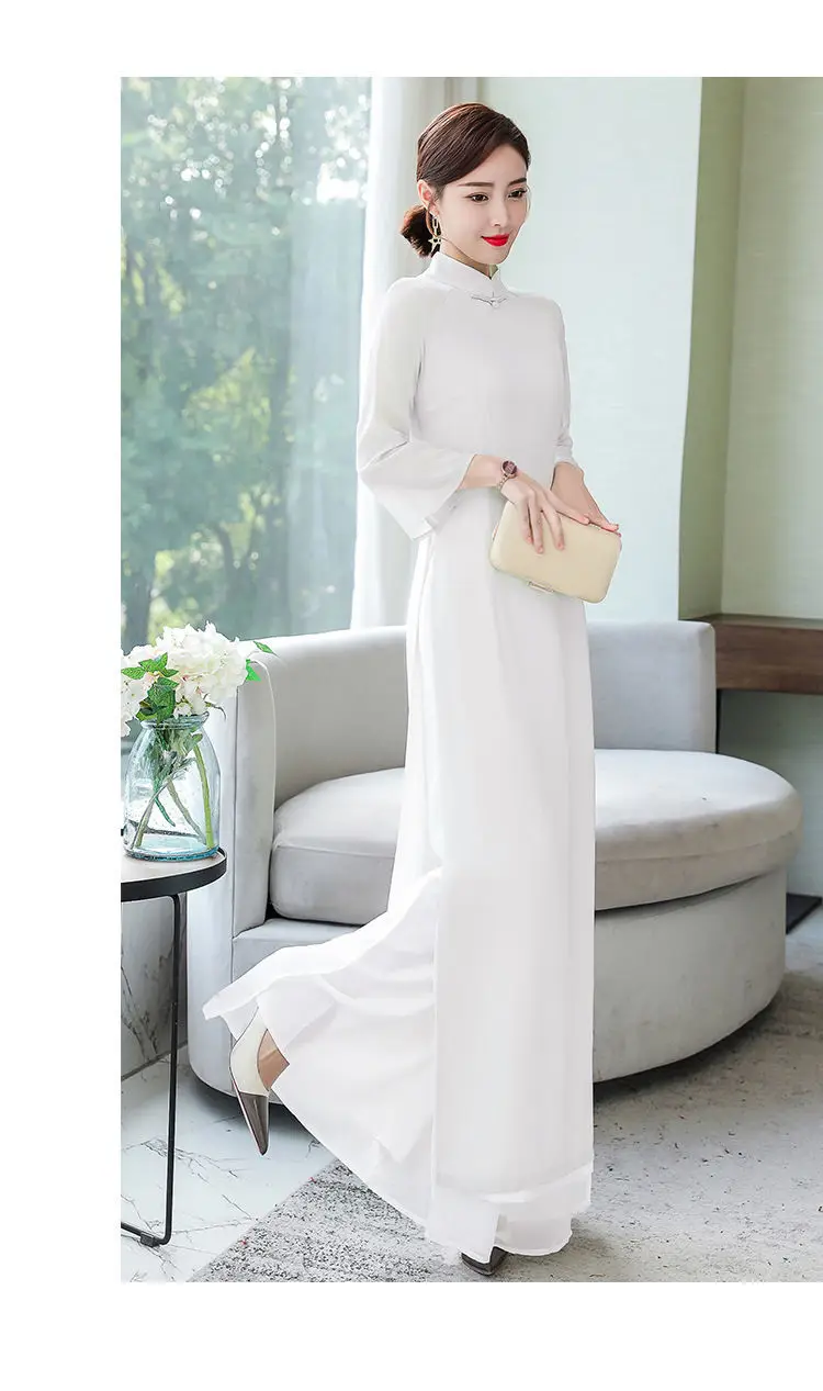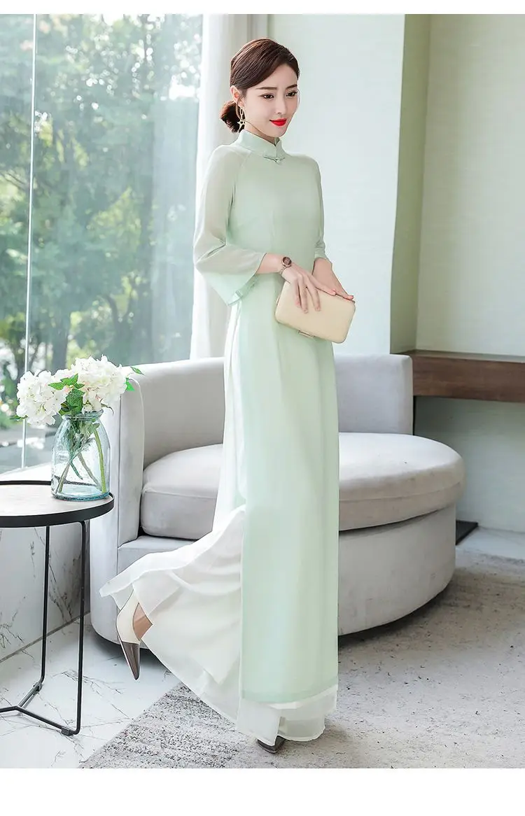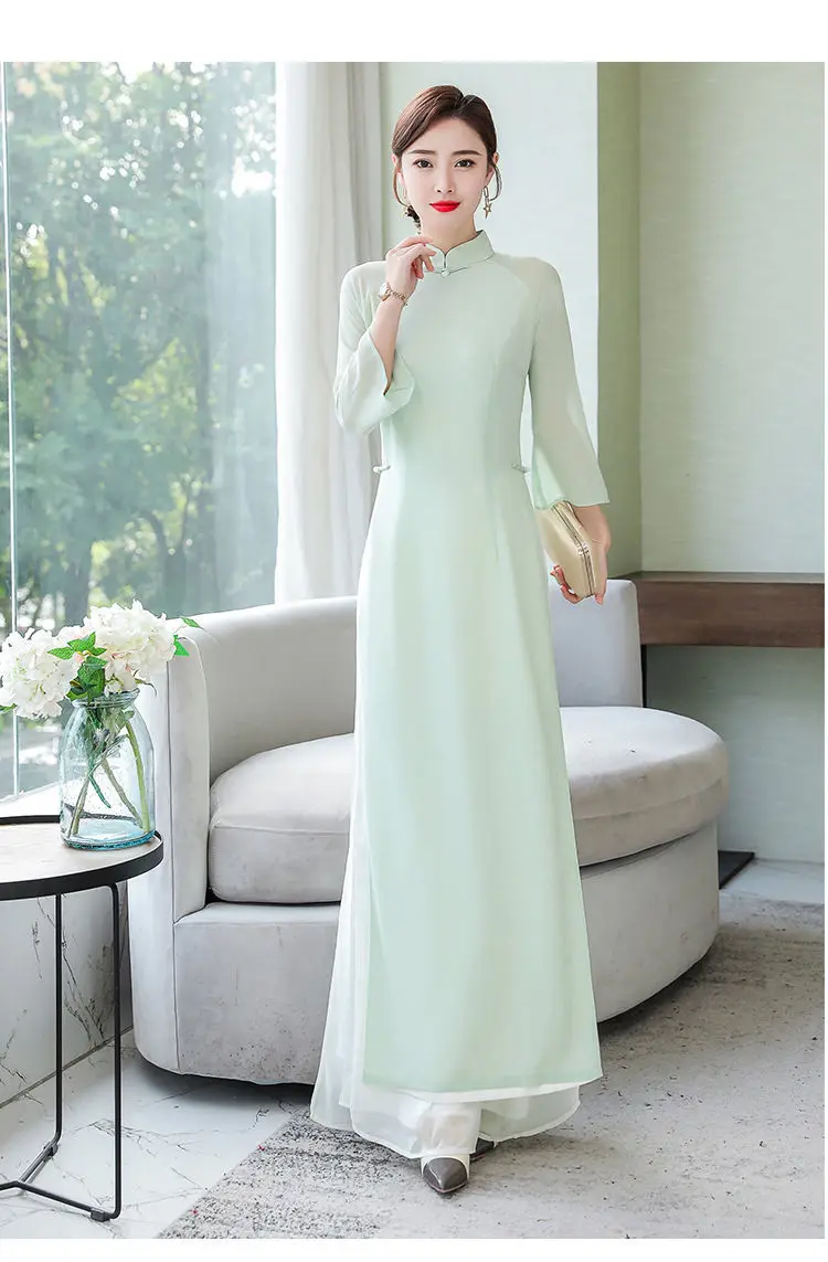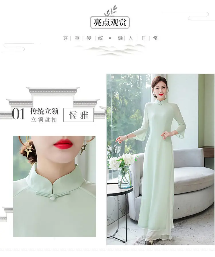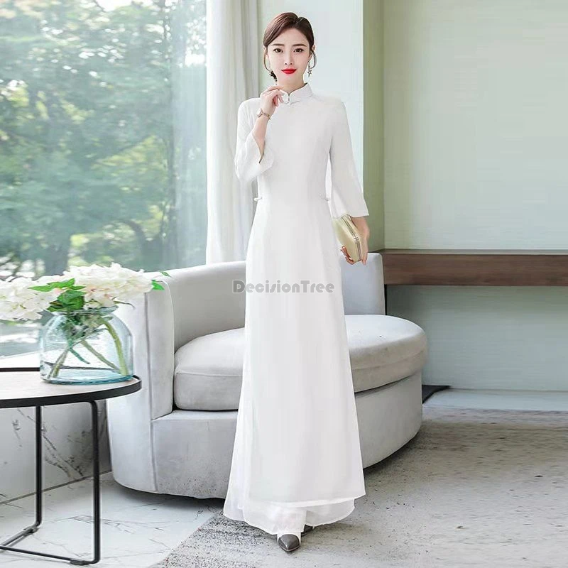2026 simple gentle temperament vietnam aodai qipao improved chinese style elegant slim cheongsam retro casual daily tea garment
