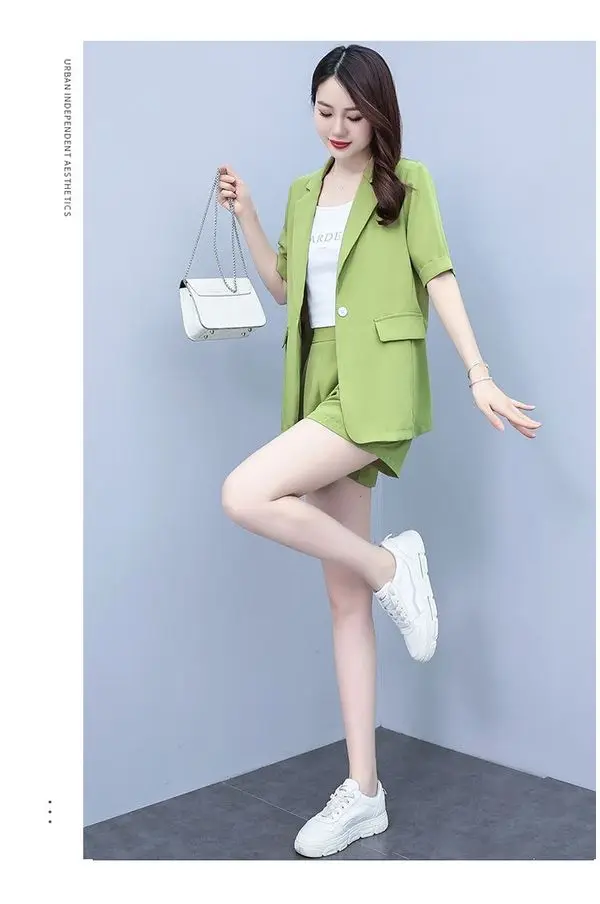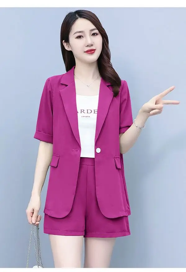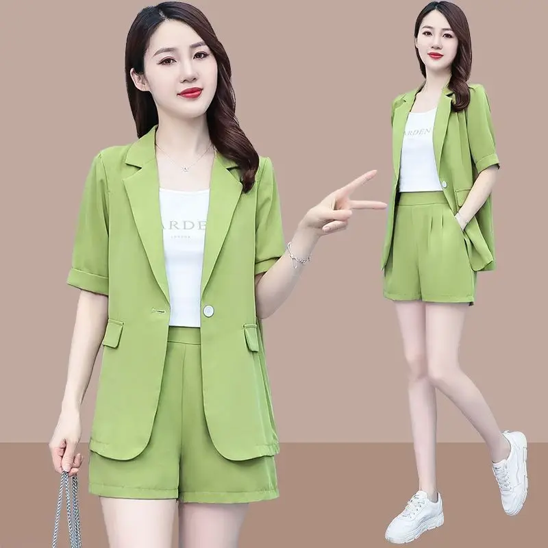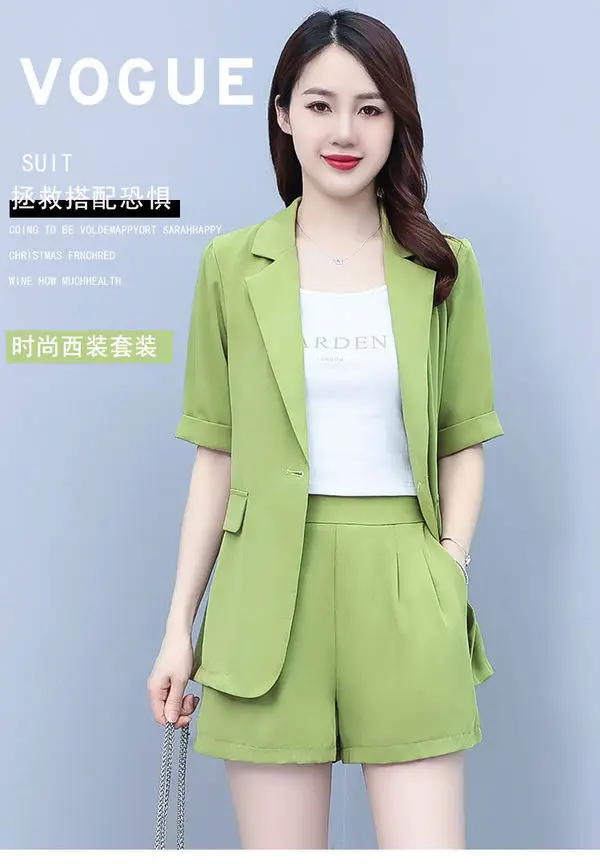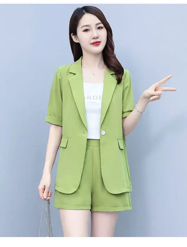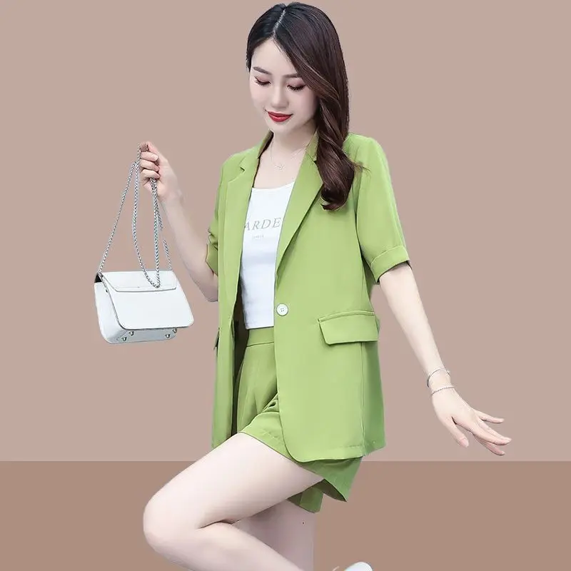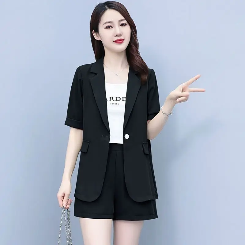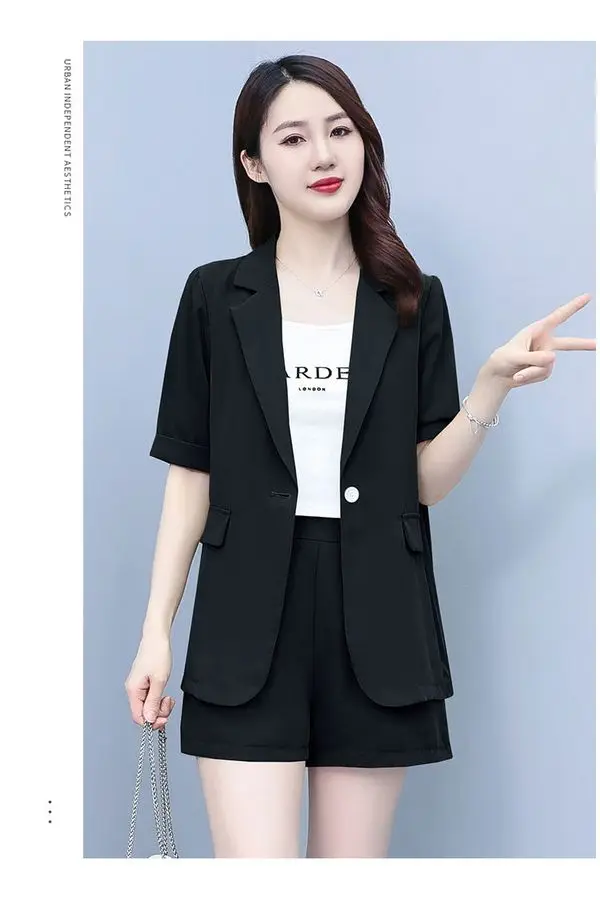 2026 Summer New Korean Casual Short Sleeved Blazrs Jacket Matching Set Women’s Fashion Professional Suit Coat Shorts Two-piece