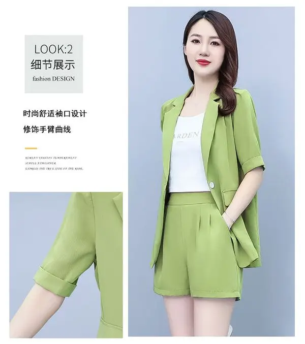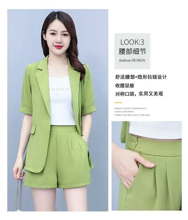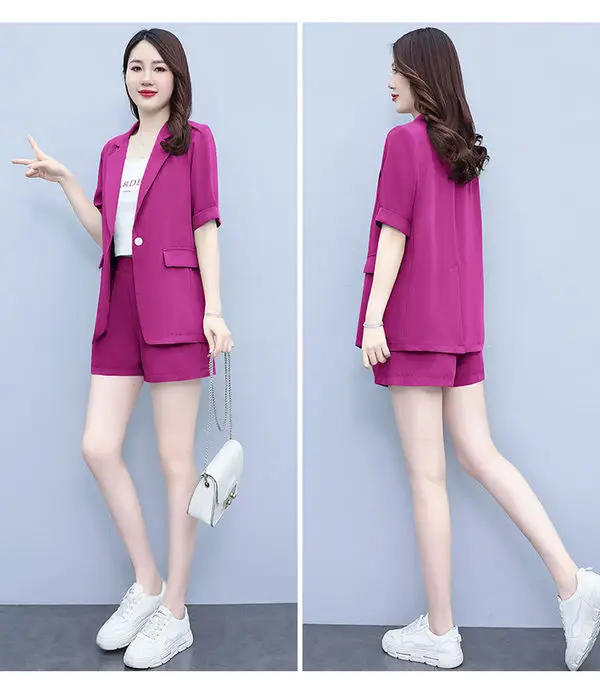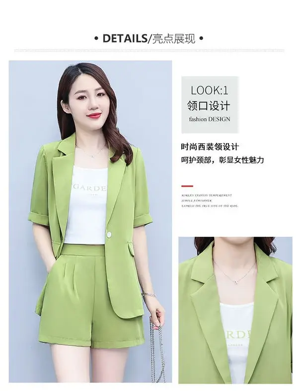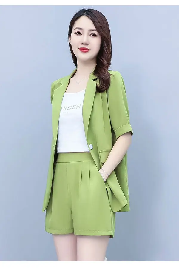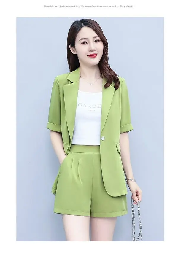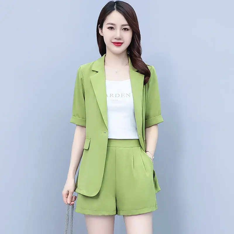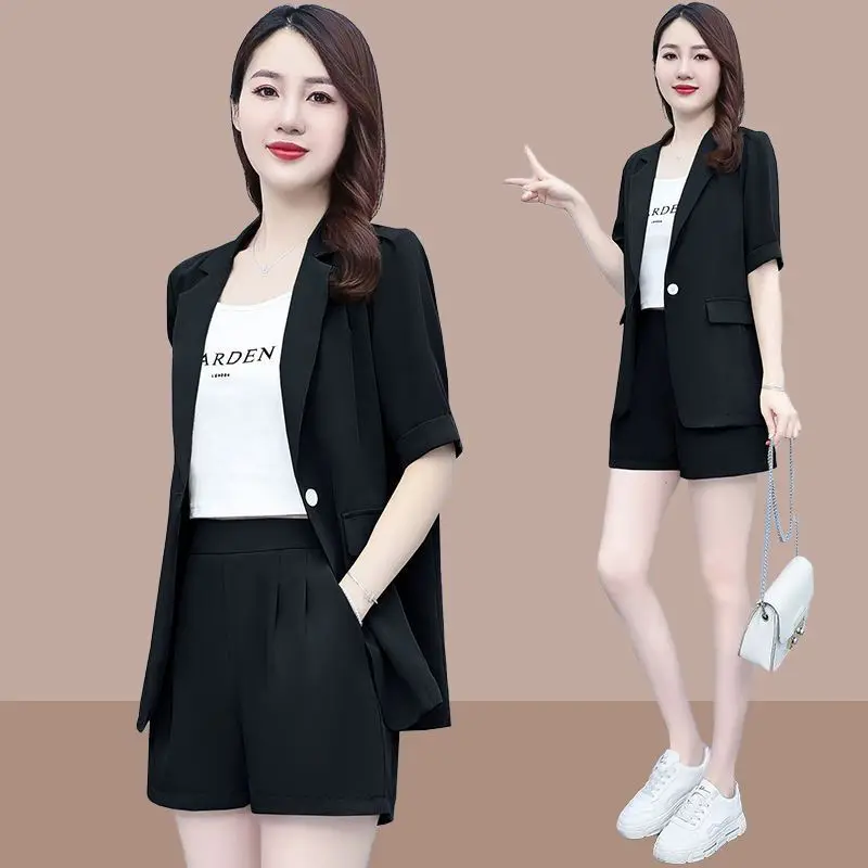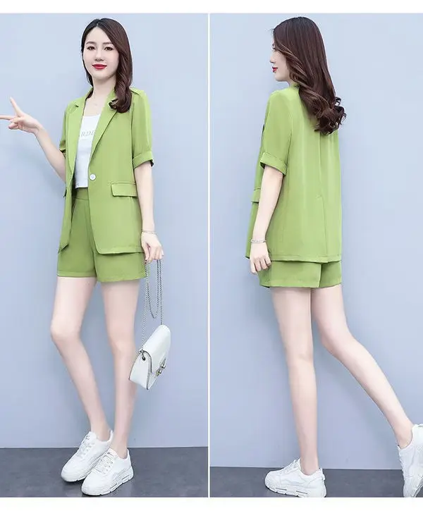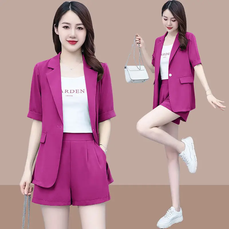 2026 Summer New Korean Casual Short Sleeved Blazrs Jacket Matching Set Women’s Fashion Professional Suit Coat Shorts Two-piece