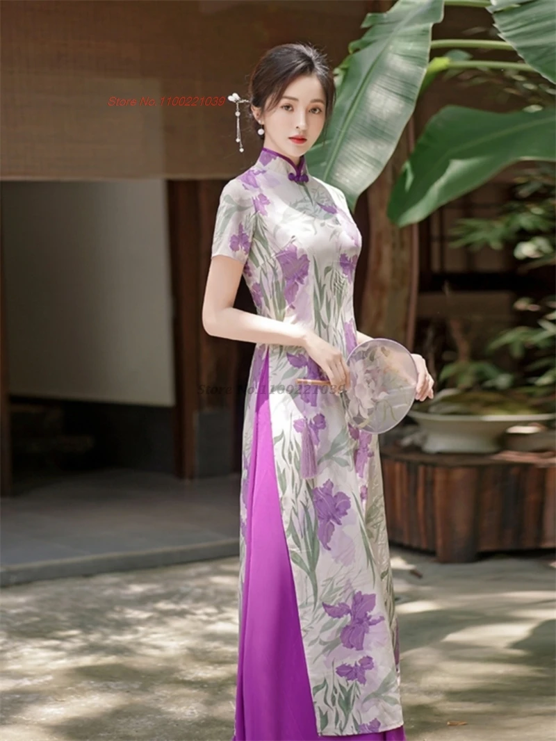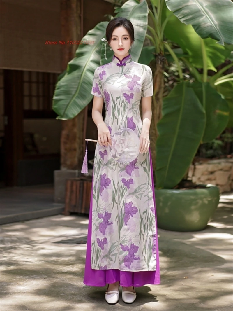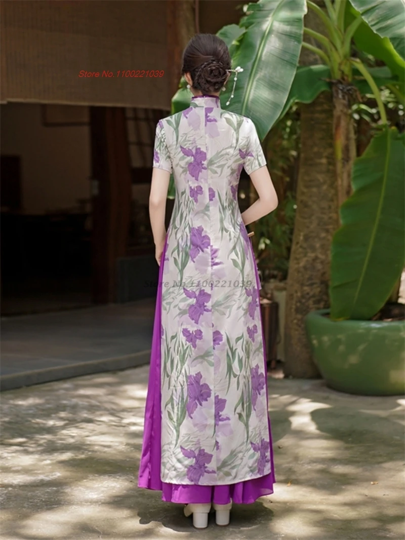2026 vietnam traditional dress aodai national flower print cheongsam oriental improved a-line qipao banquet evening aodai dress