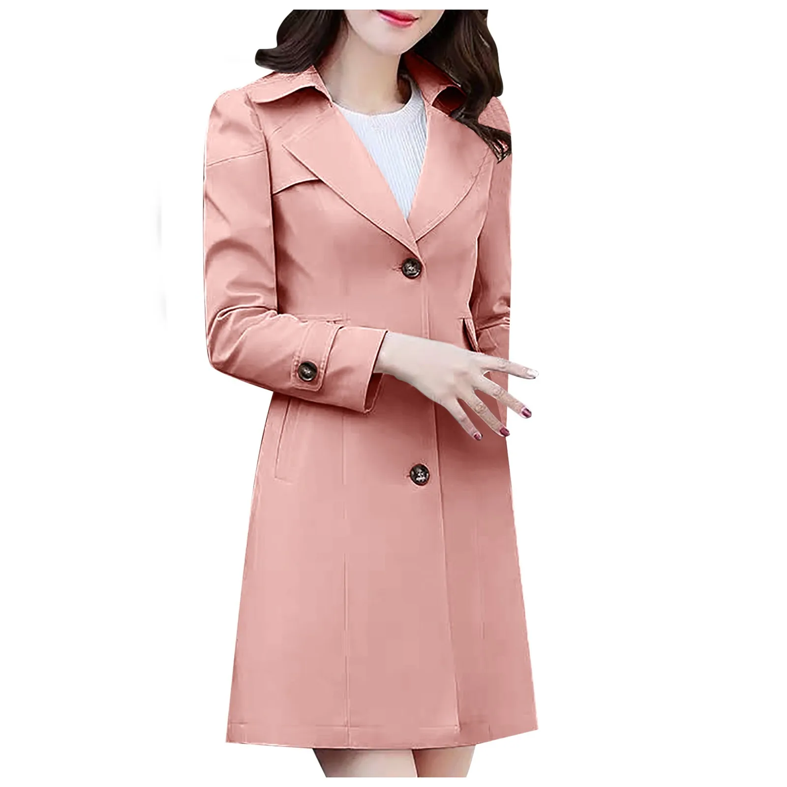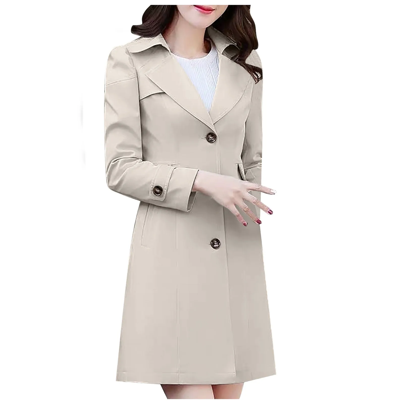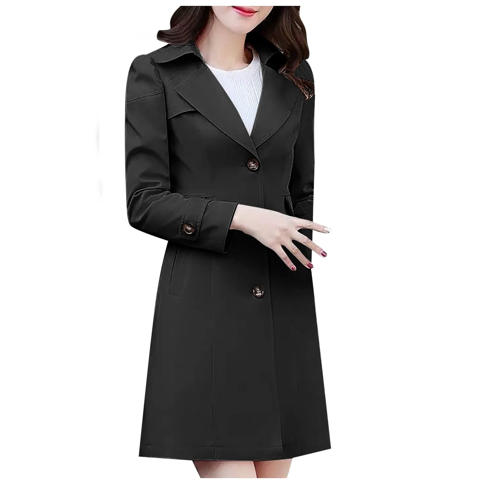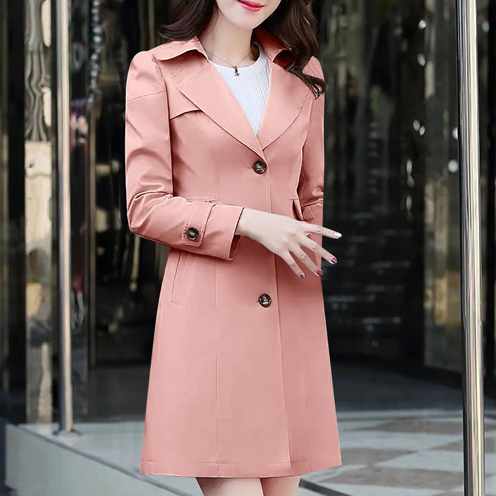 Spring And Autumn New Double Breasted Slim Fit Over The Knee Mid Long Trench Coat For Women