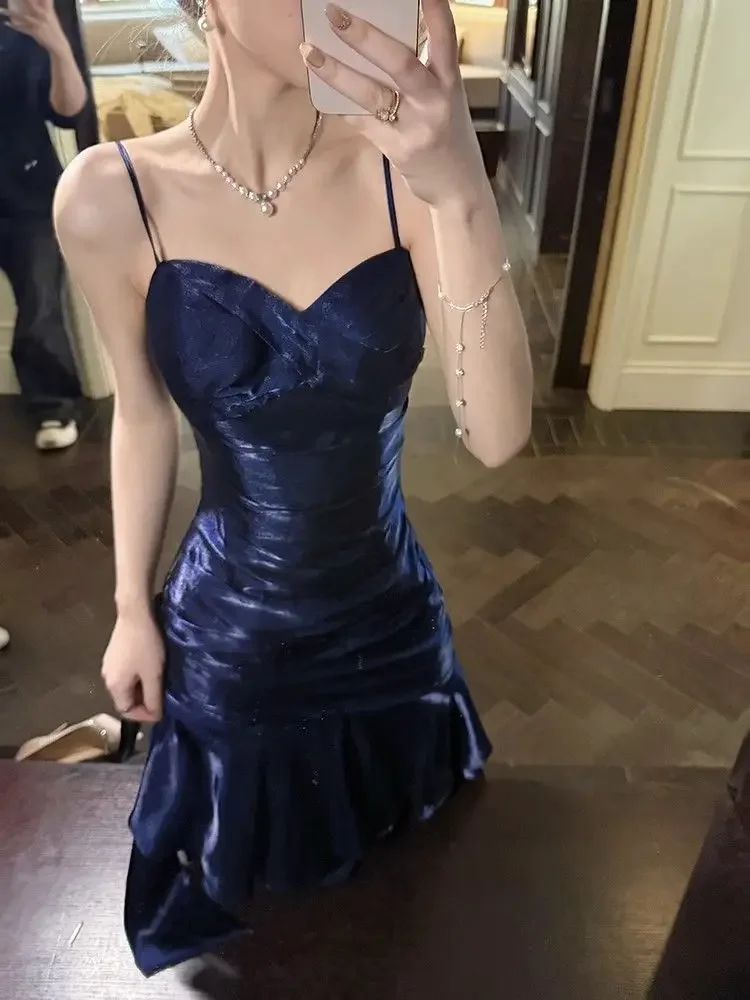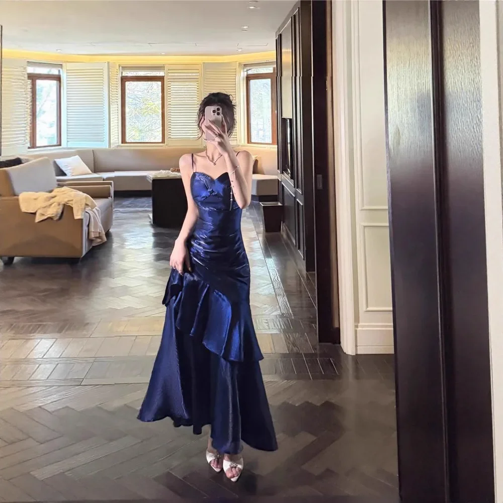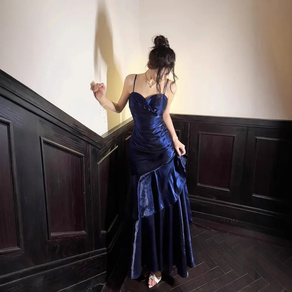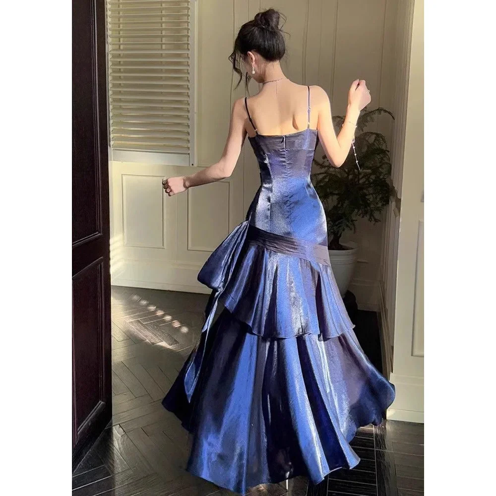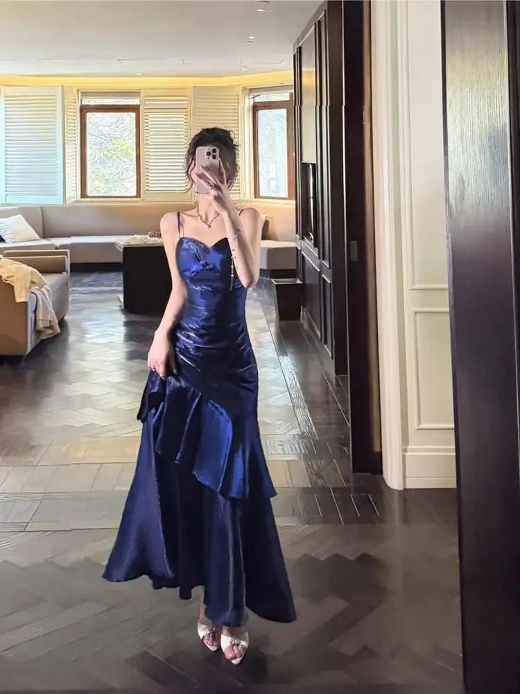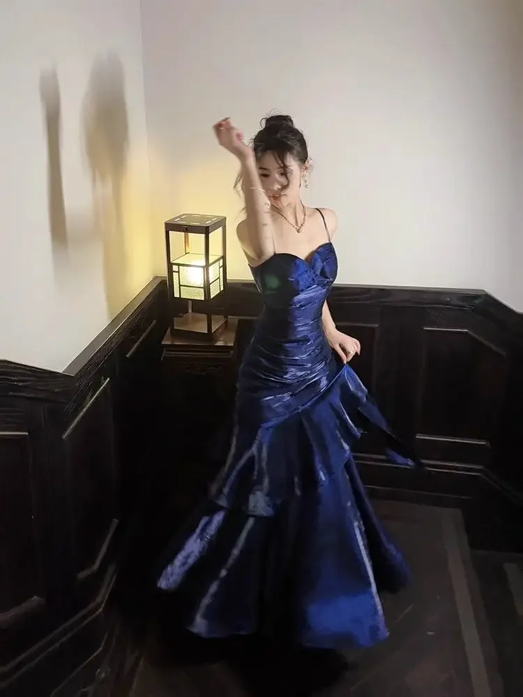 Be the first to review “Blue Mermaid Style Birthday Dress with Lace Trim Strapless Gown Adult Ceremony Dress Long Ankle Length V-neckline No-sleeve”
