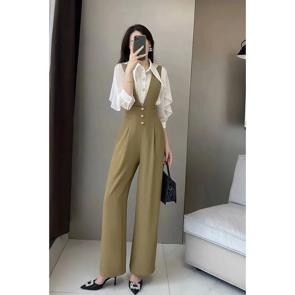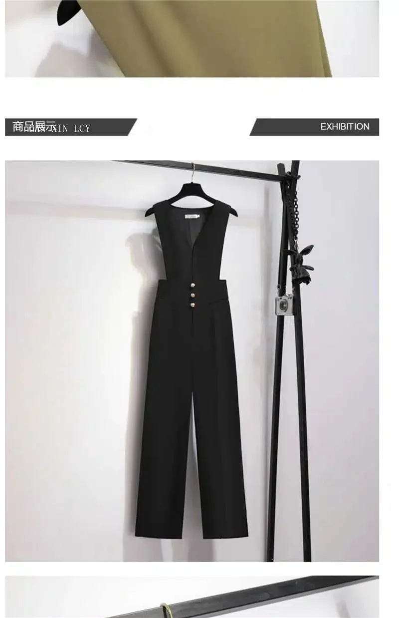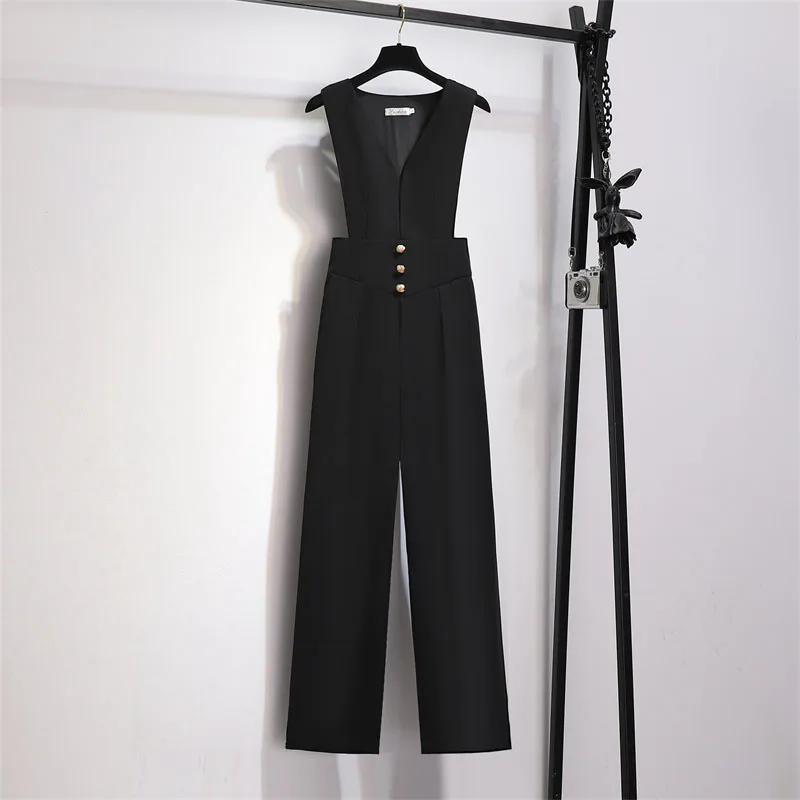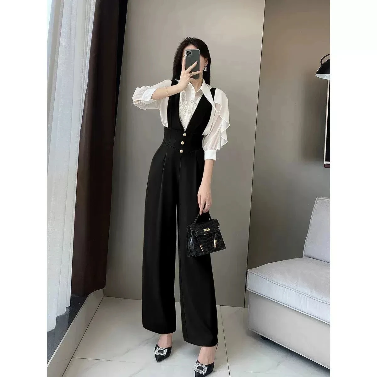 Design Sense Chic Jumpsuit For Women Spring Autumn 2023 New Advanced Slim High Waist Suit Wide Leg Pants Women Black Overalls