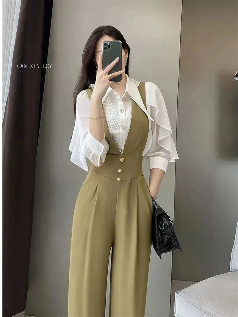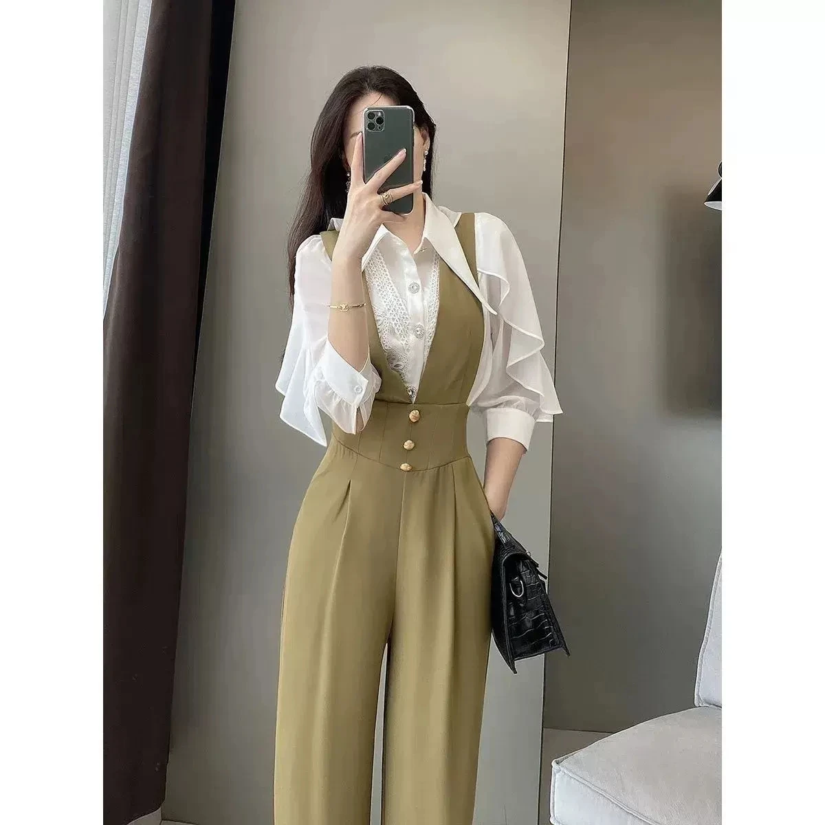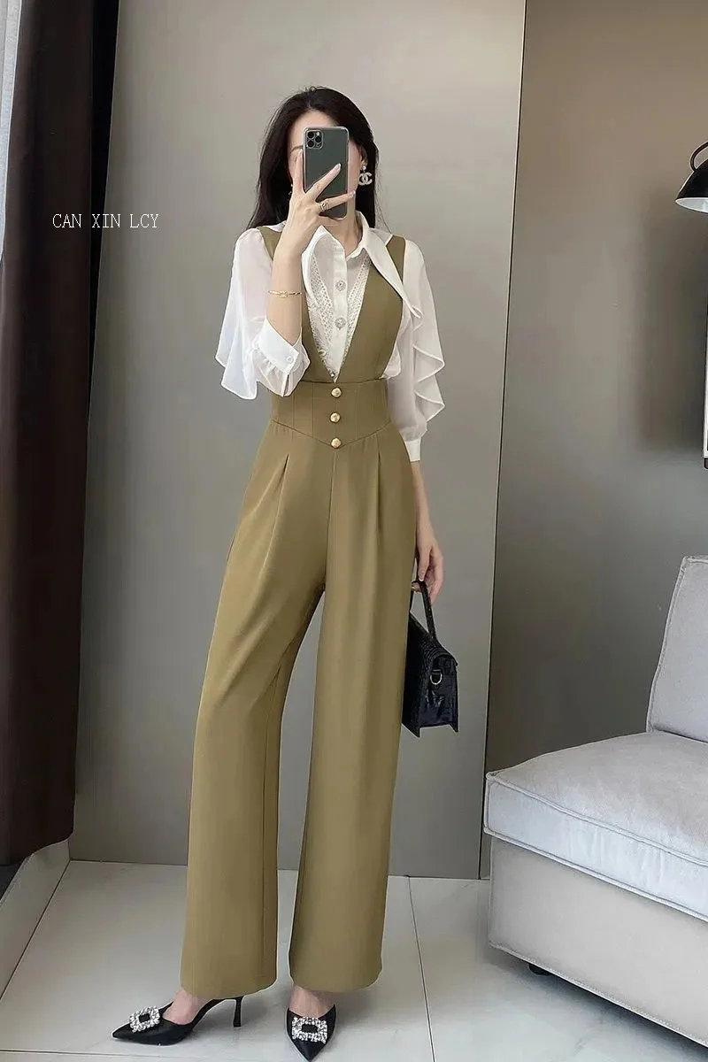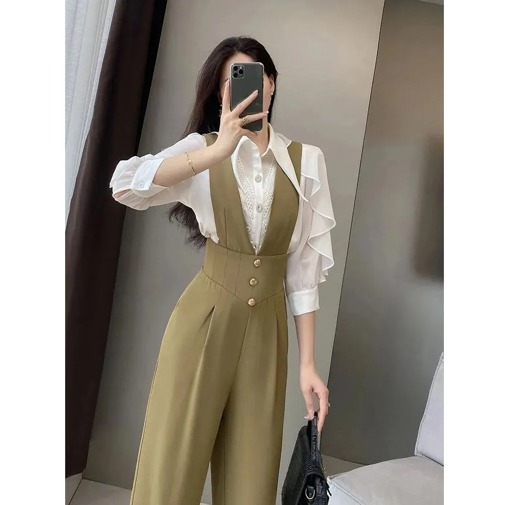 Design Sense Chic Jumpsuit For Women Spring Autumn 2023 New Advanced Slim High Waist Suit Wide Leg Pants Women Black Overalls