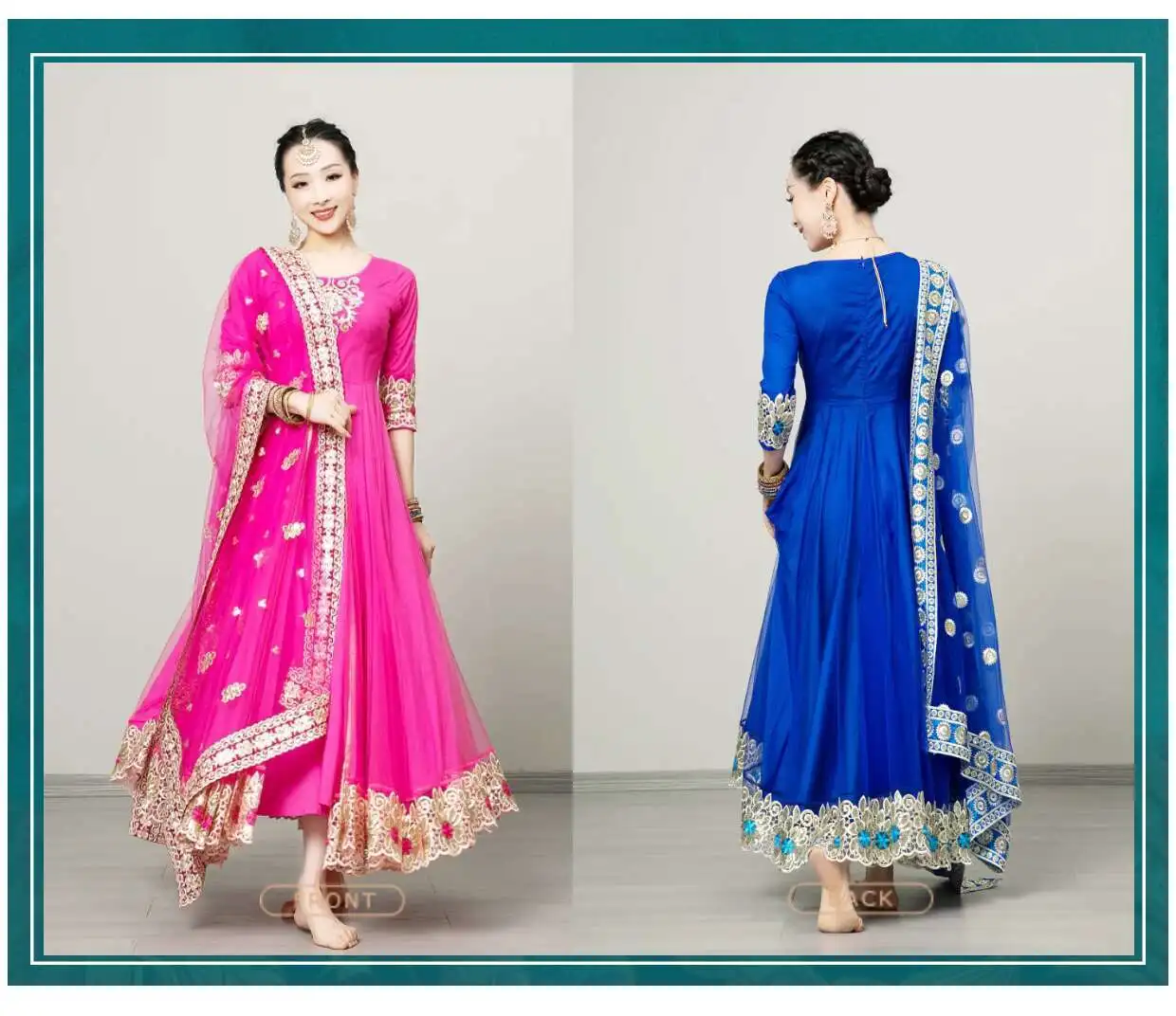 Rose red dress, Rose red scarf, Blue Dress, Blue scarf
