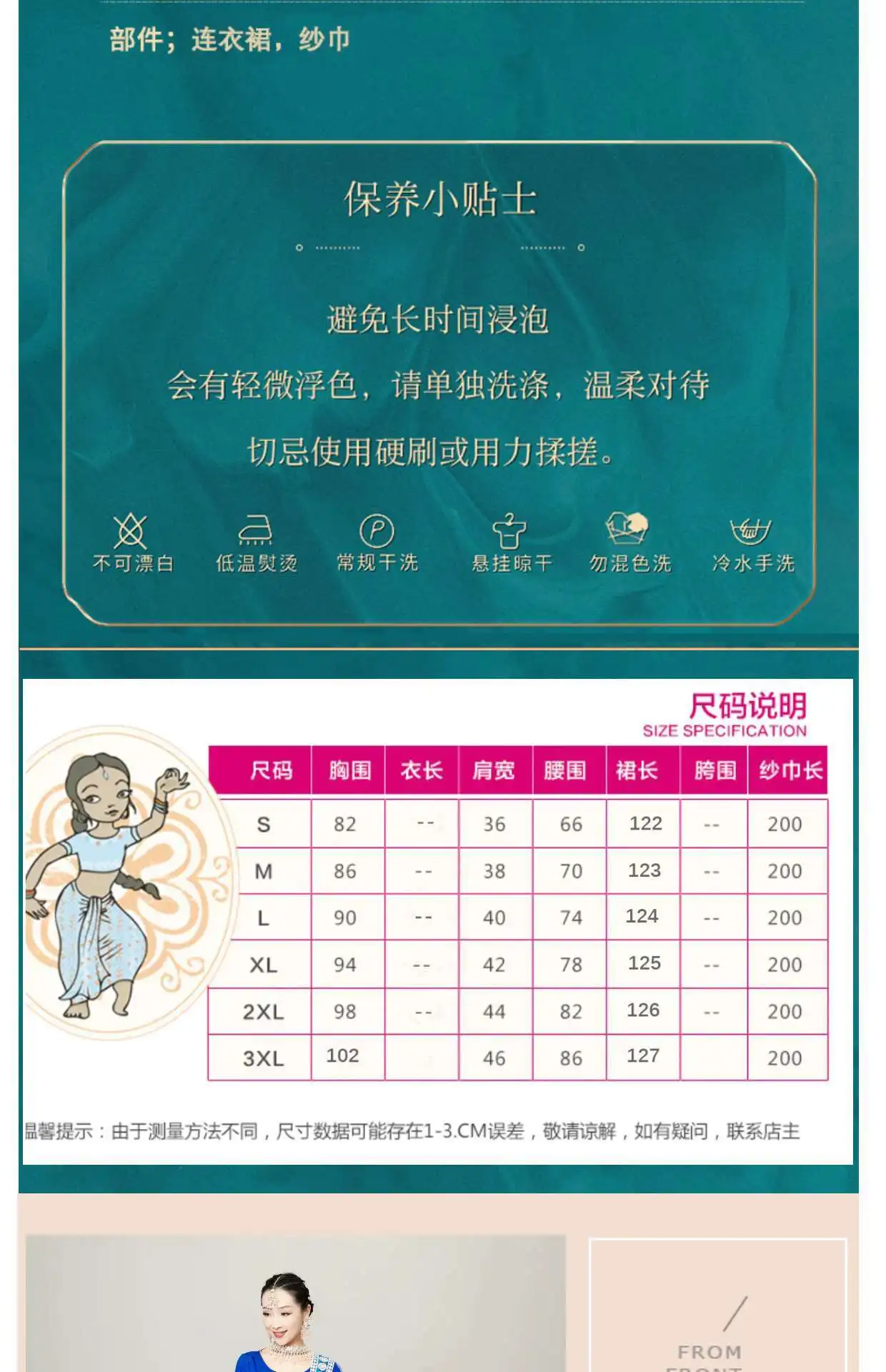 3XL      Bust:102cm  Shoulder width:46cm  Waistline:86cm  Skirt length:127cm  Yarn length:200cm