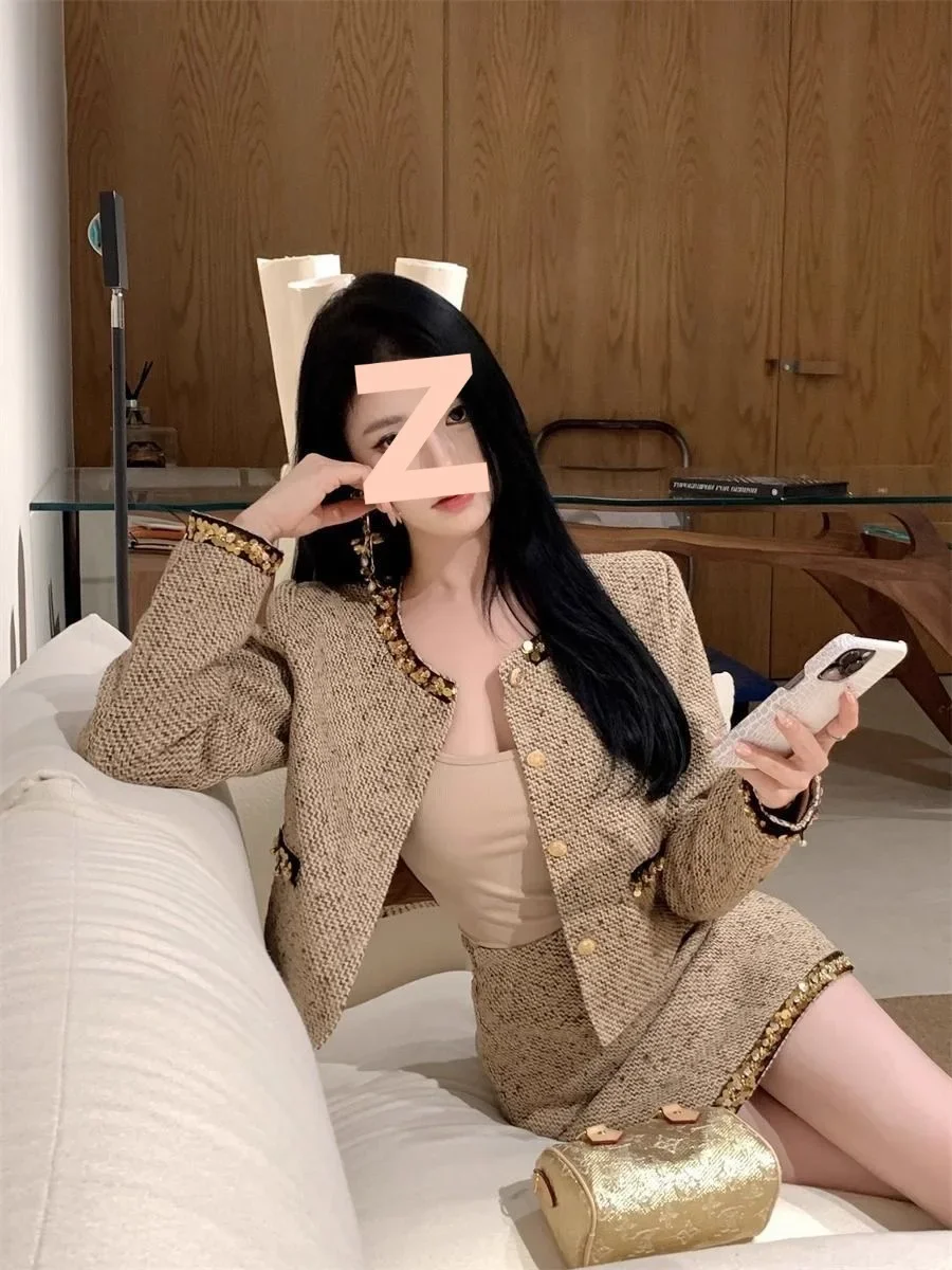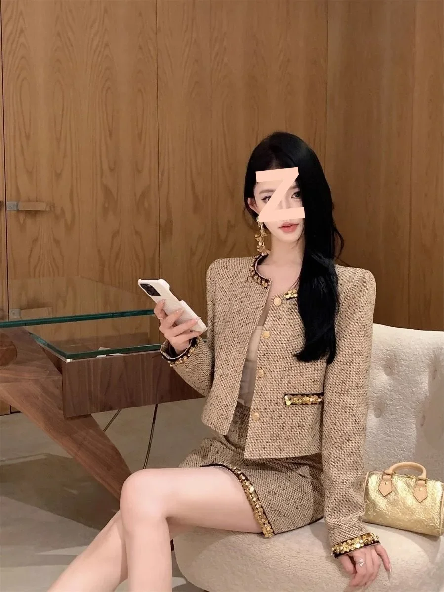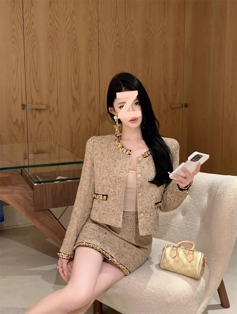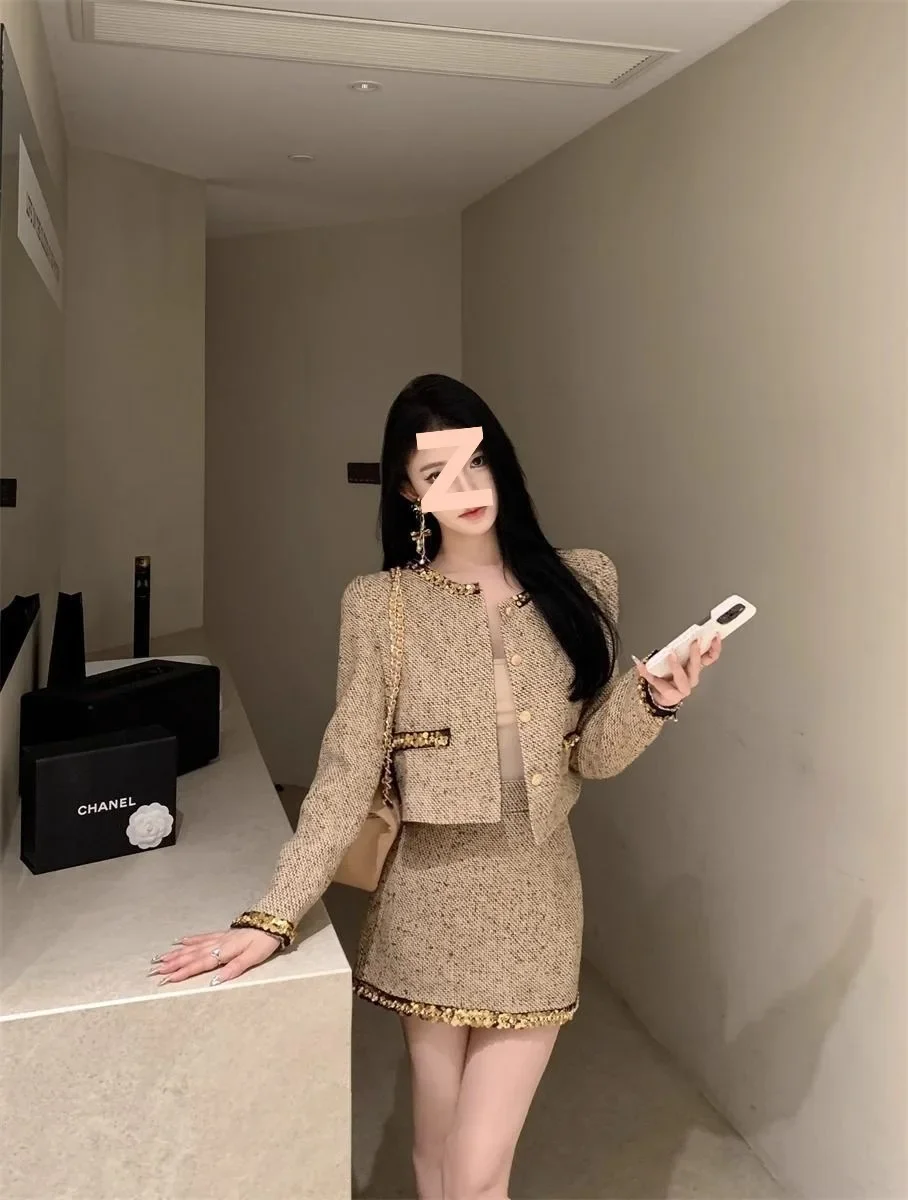 • French Style Design : This Chanel-inspired tweed suit exudes elegance with its French style design, perfect for autumn and winter occasions.