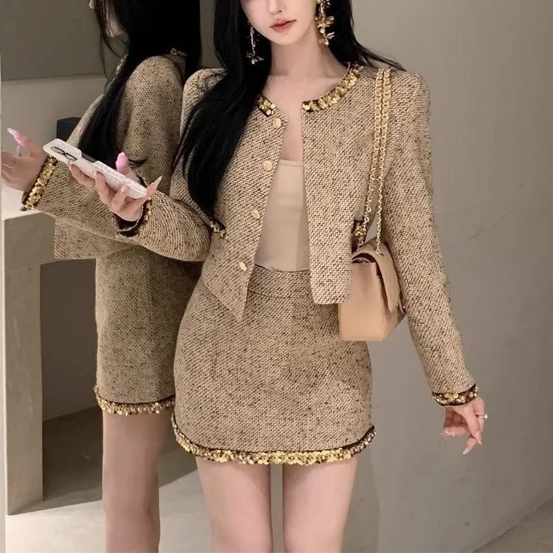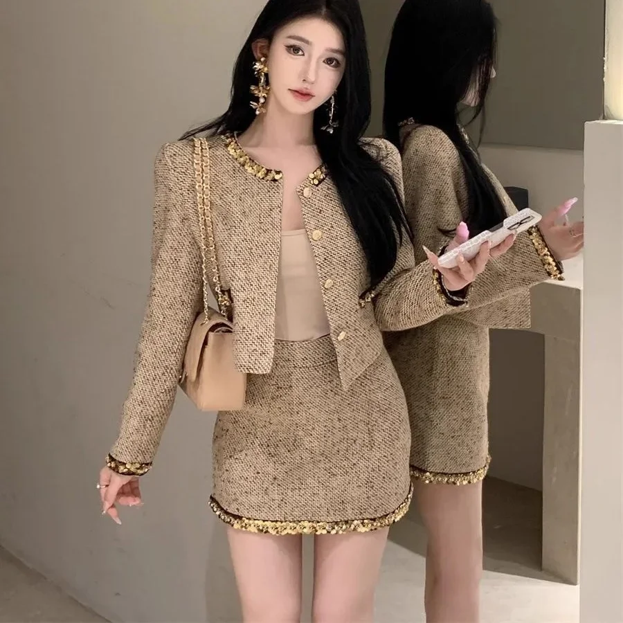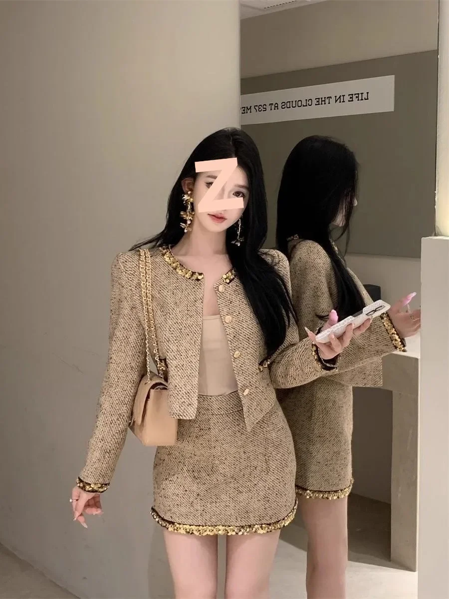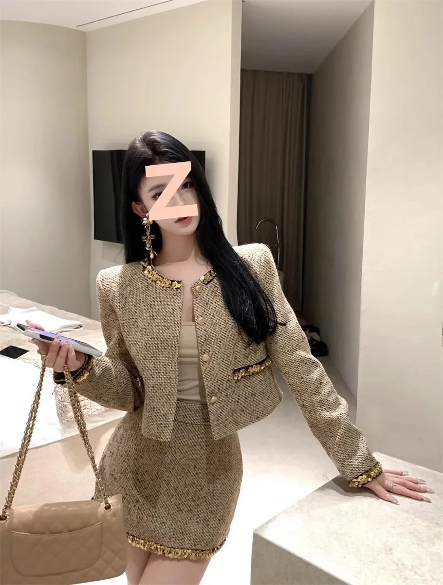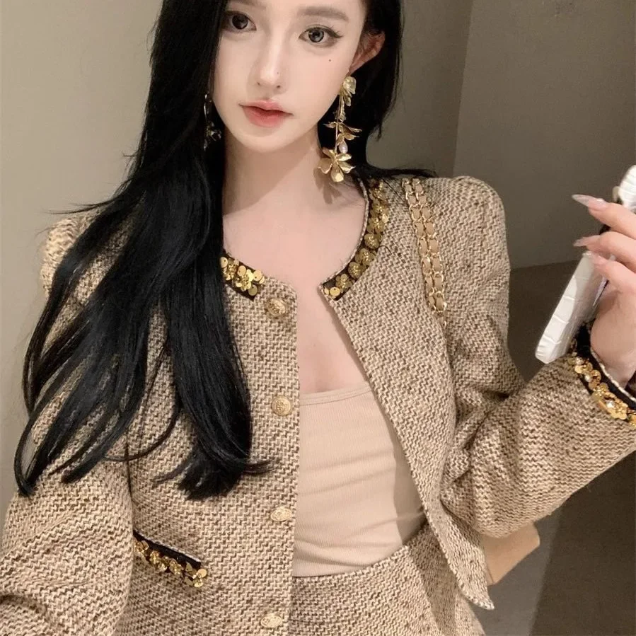 • French Style Design : This Chanel-inspired tweed suit exudes elegance with its French style design, perfect for autumn and winter occasions.