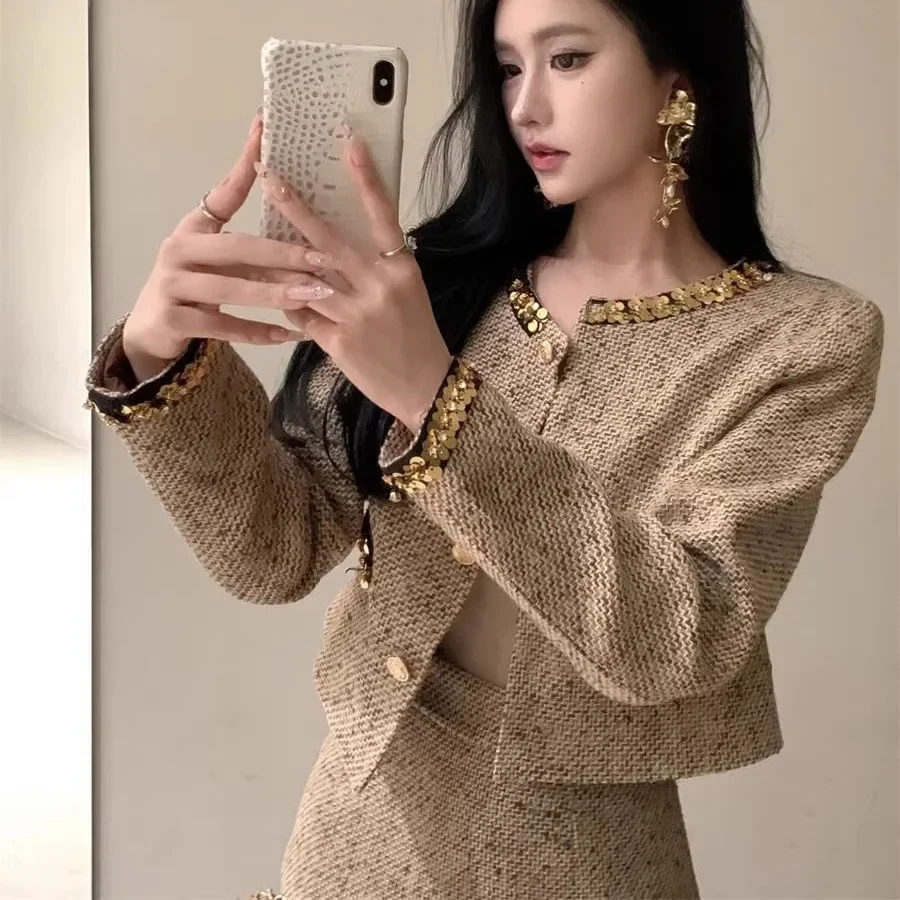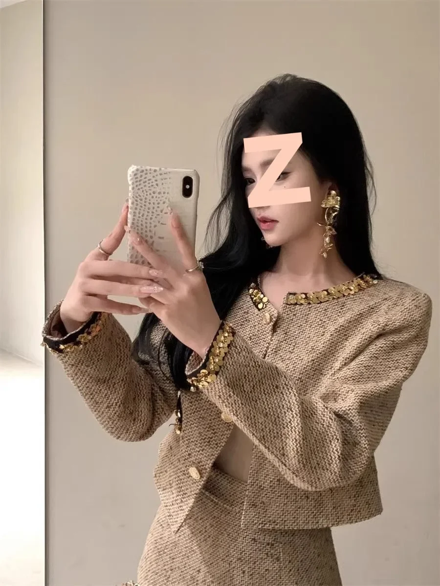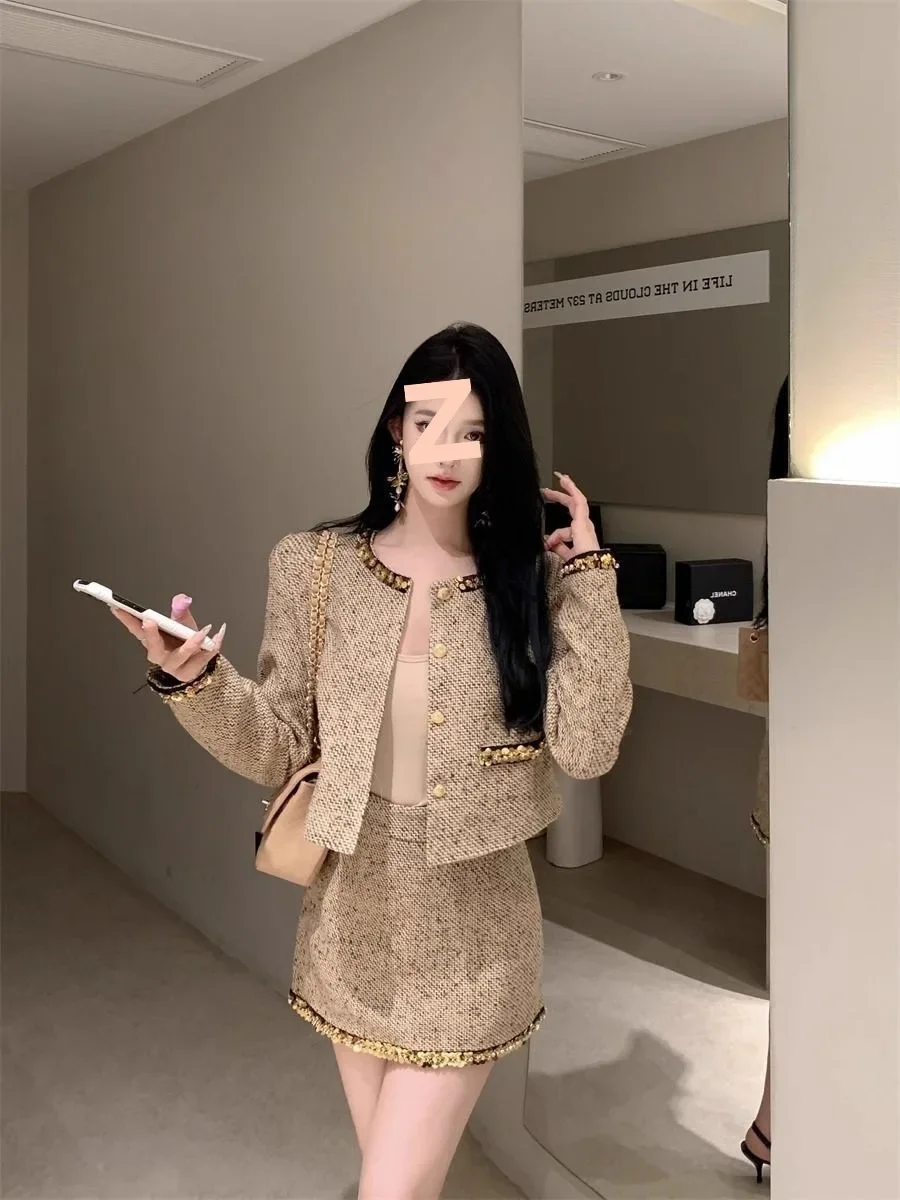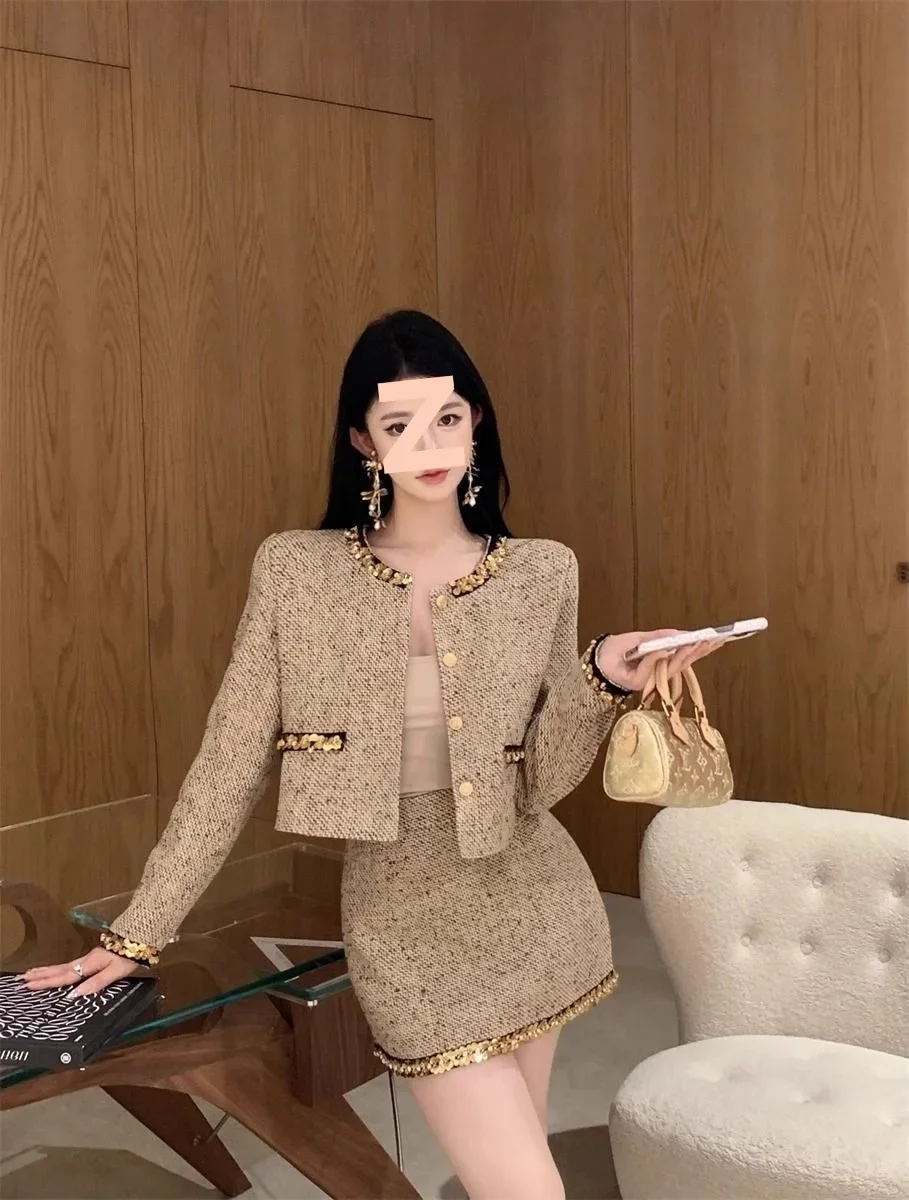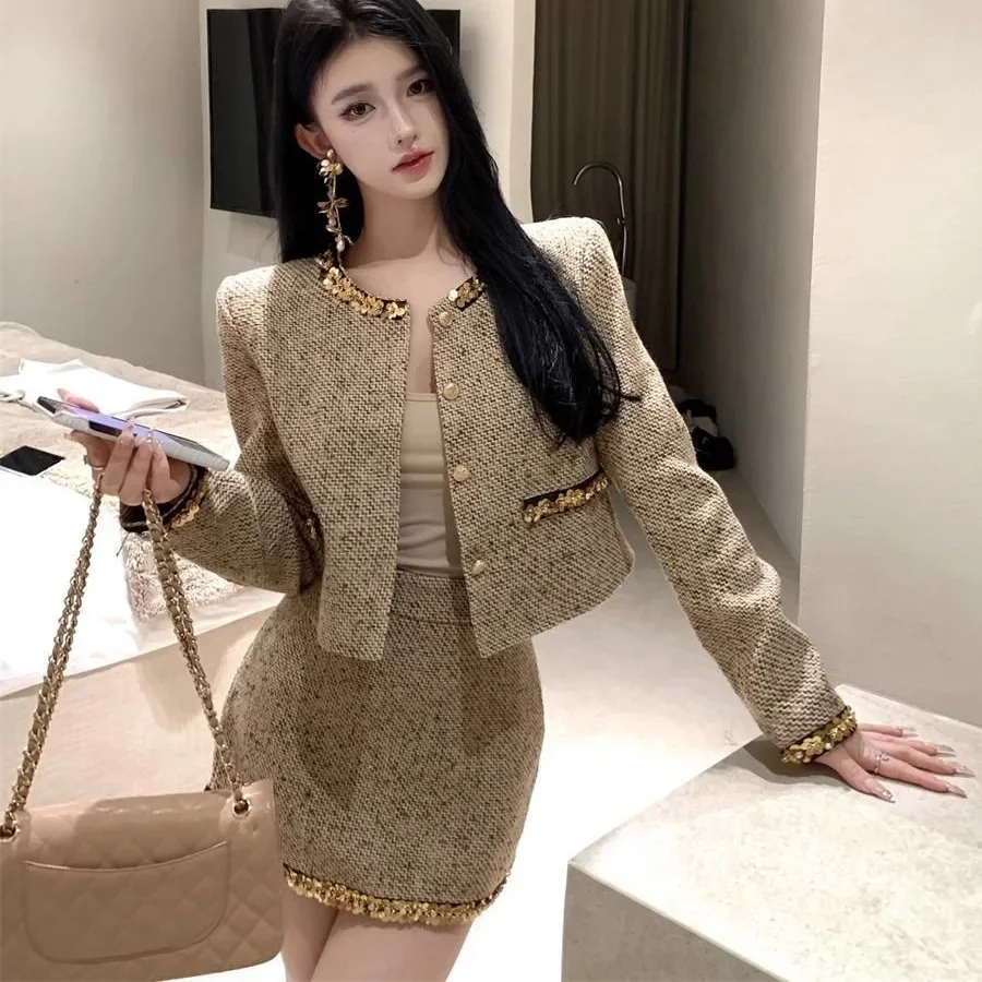 • French Style Design : This Chanel-inspired tweed suit exudes elegance with its French style design, perfect for autumn and winter occasions.