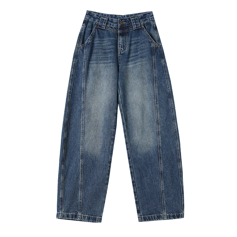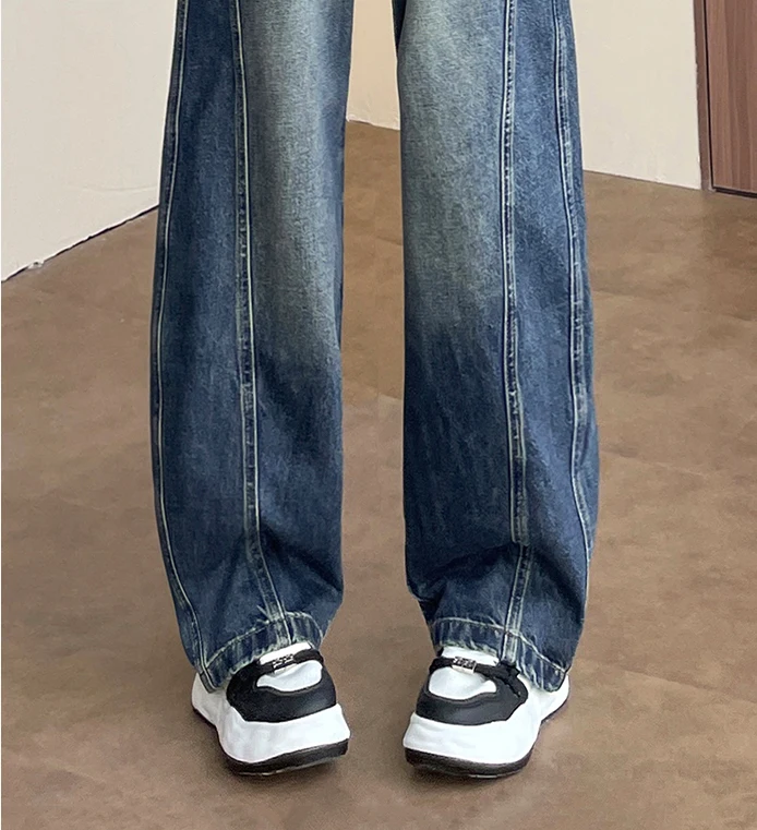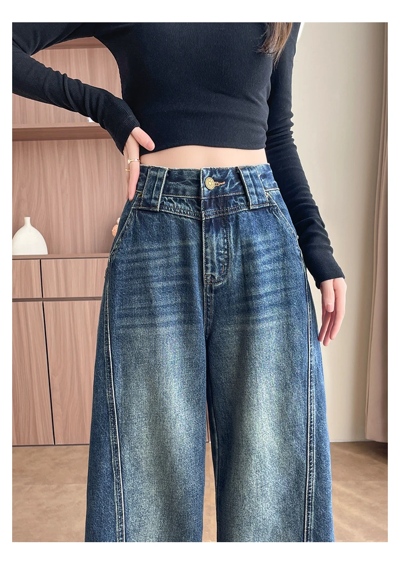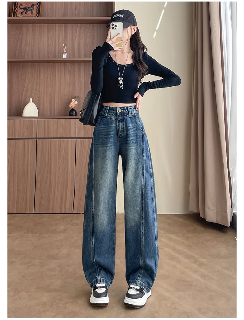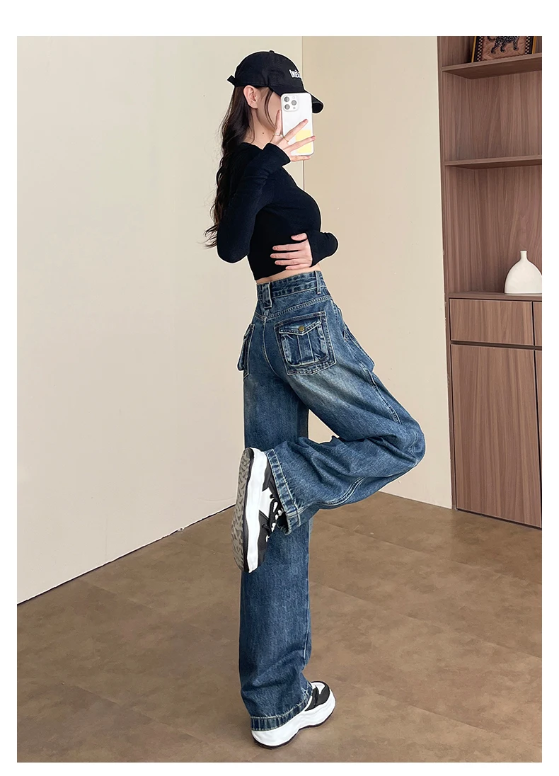 High Waist Loose Wide Leg Jeans Women Y2K Cotton Personalized Design Casual Straight Denim Fashion Tube Loose Plus Trousers