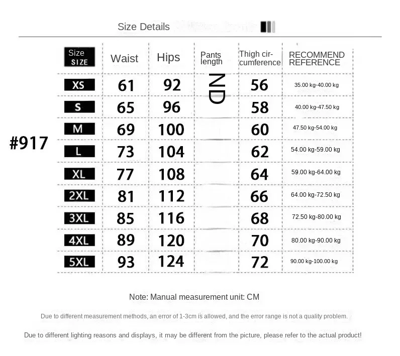 XS, M, L, XL, XXL