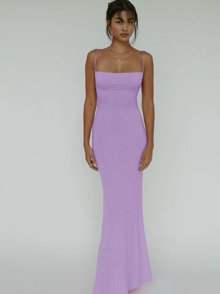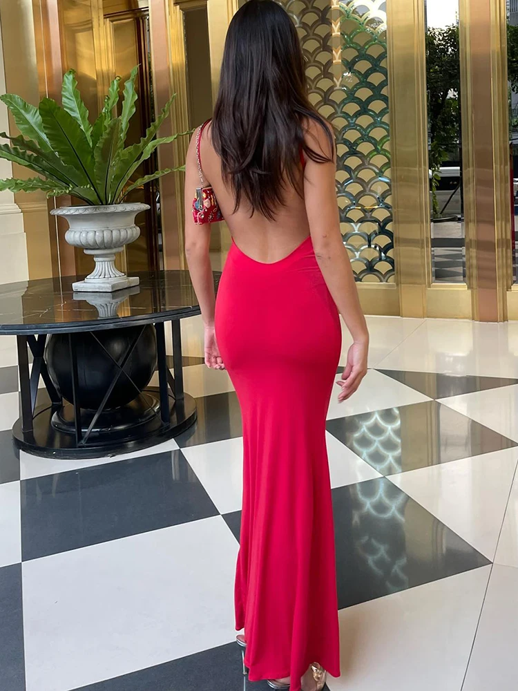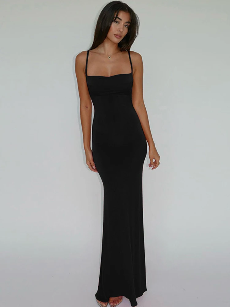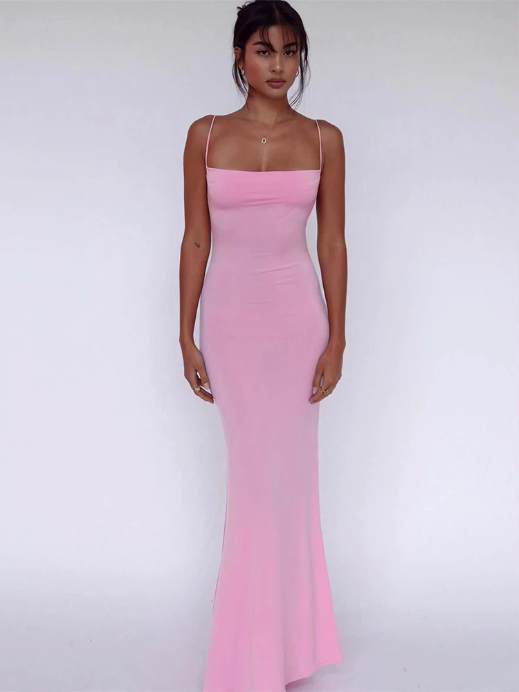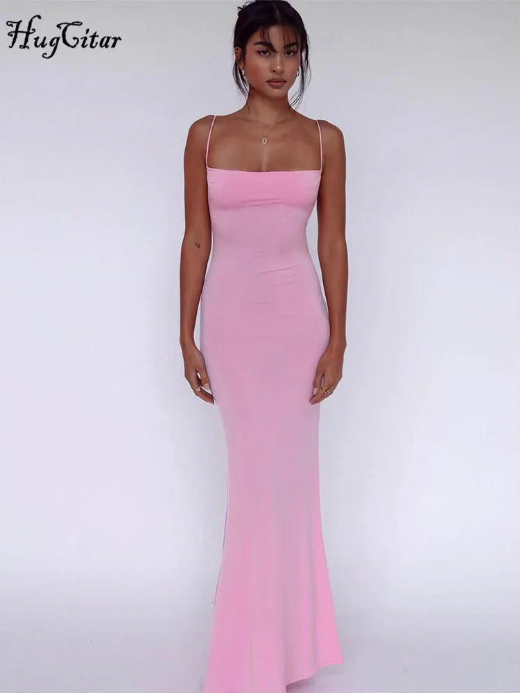 Hugcitar 2025 Spring Solid Sleeveless Backless Elegant Sexy Bodycon Y2K Maxi Prom Dress Women Clothes Birthday Party Casual Y2K