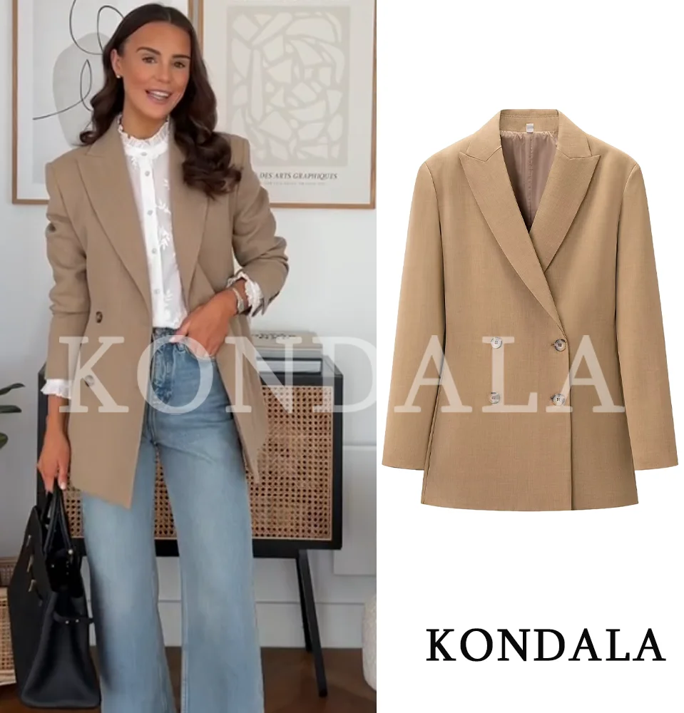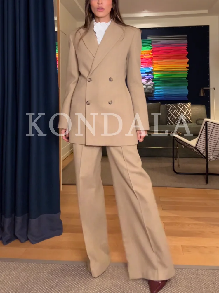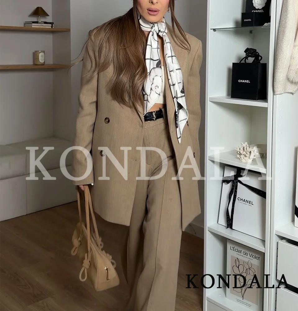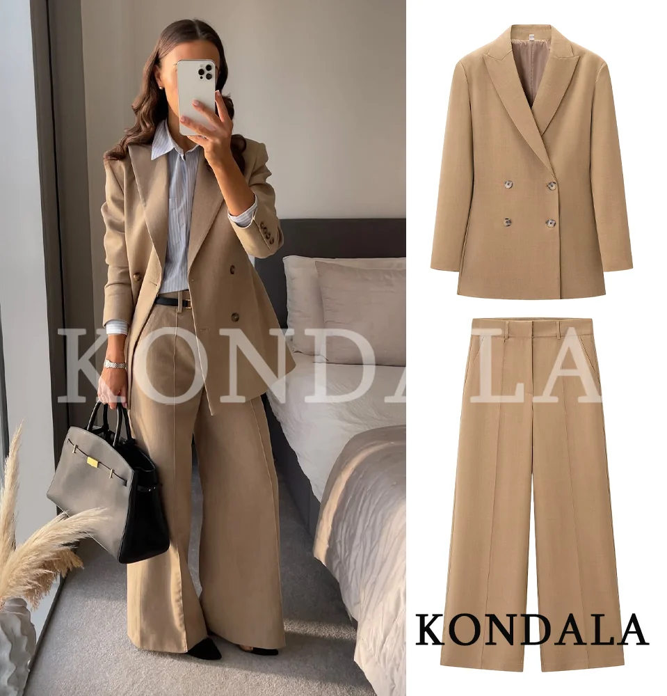 KONDALA Commute Chic Blazer Suit Women Slim Double Breasted Blazer, Long Pants 2026 New Spring Fashion Elegant Blazer Pants Set