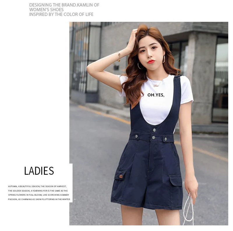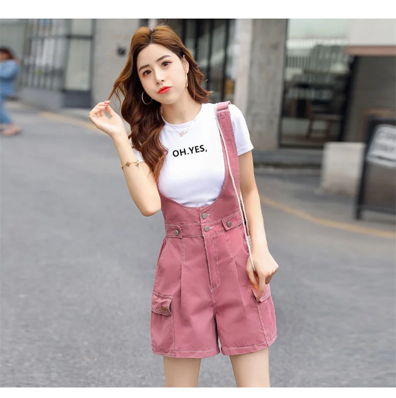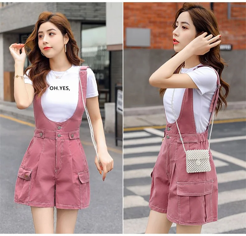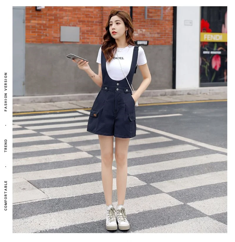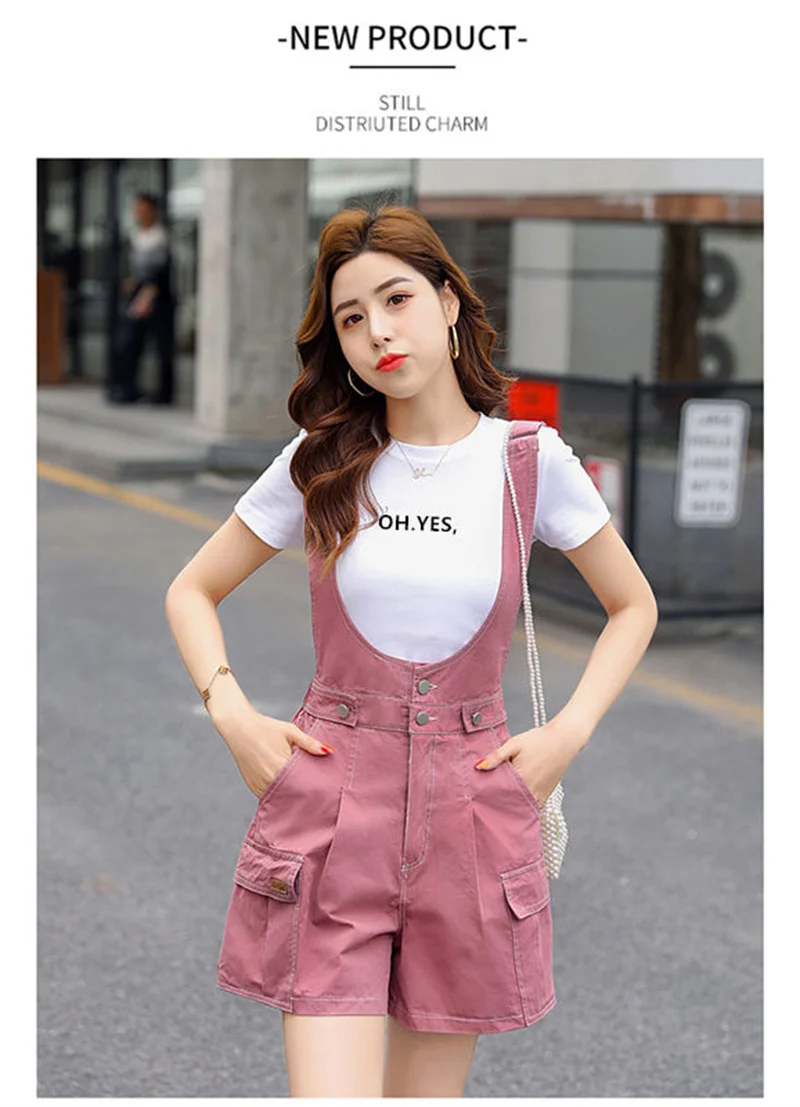 Korean Women High Waisted Backstraps Pants New Female Loose Fit Solid Color Versatile Rompers 2024 Summer Ladies Jumpsuit Shorts