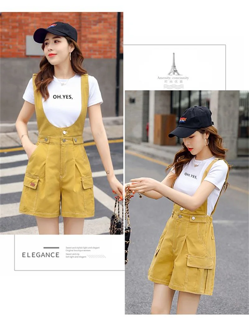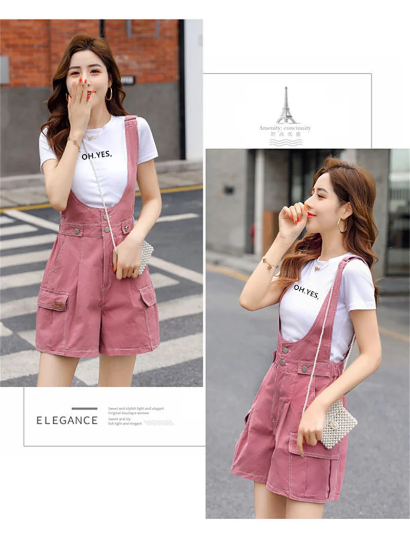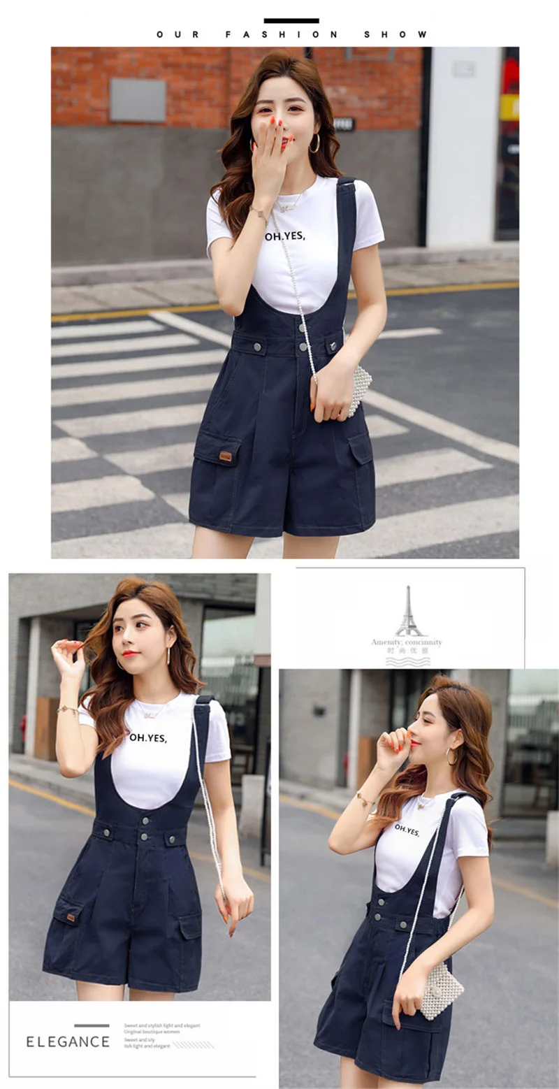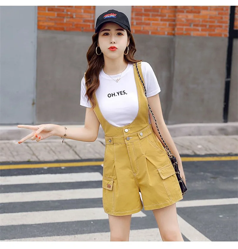 Korean Women High Waisted Backstraps Pants New Female Loose Fit Solid Color Versatile Rompers 2024 Summer Ladies Jumpsuit Shorts