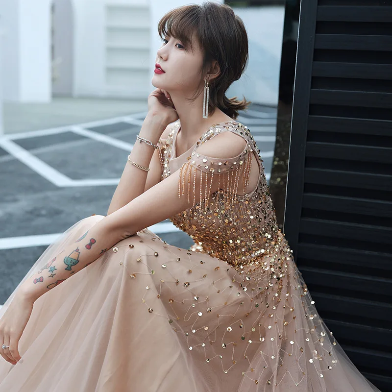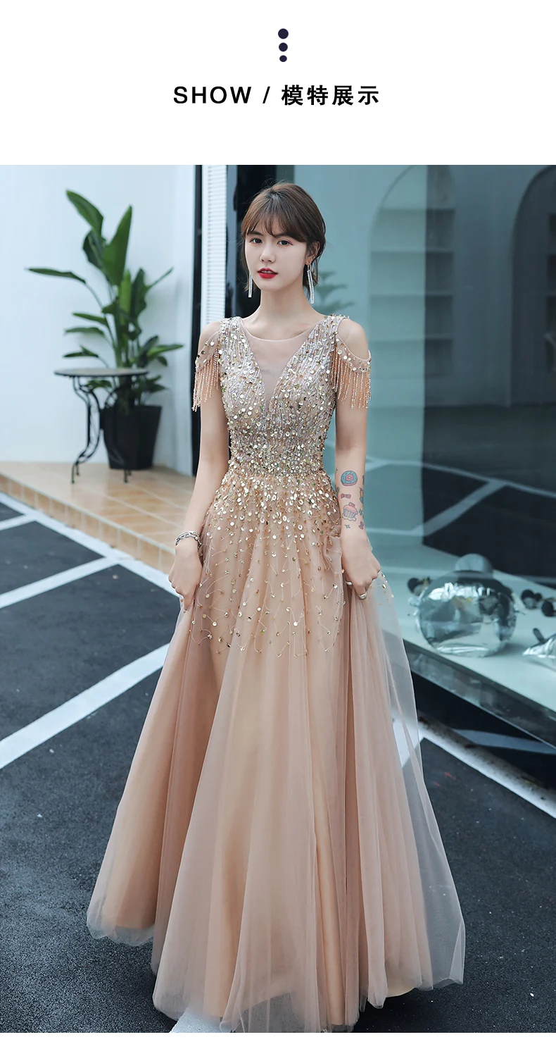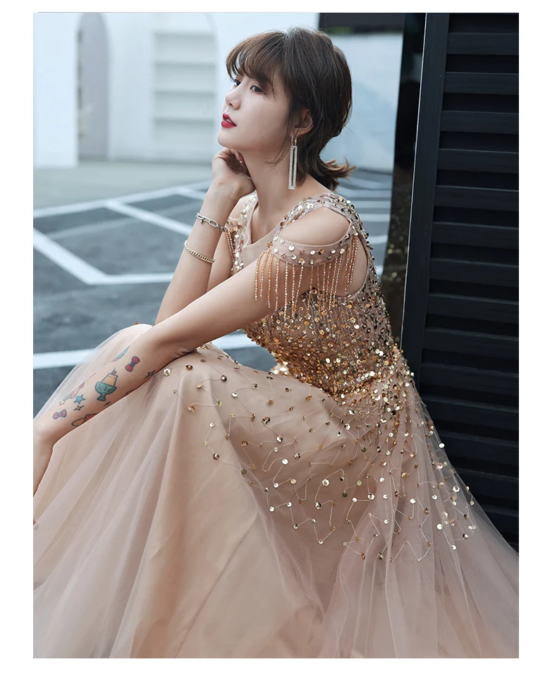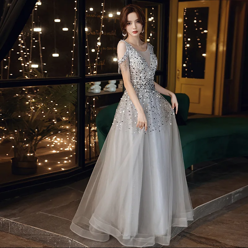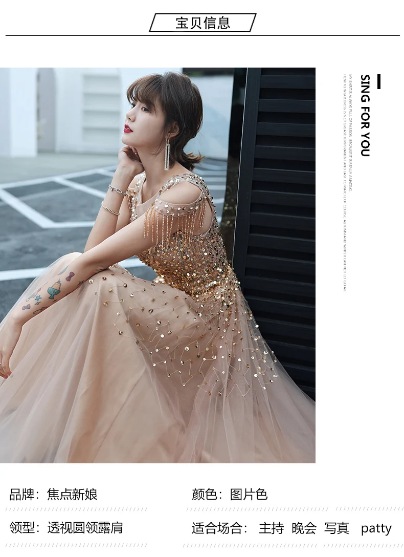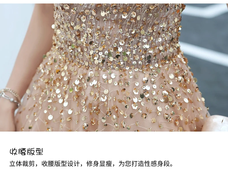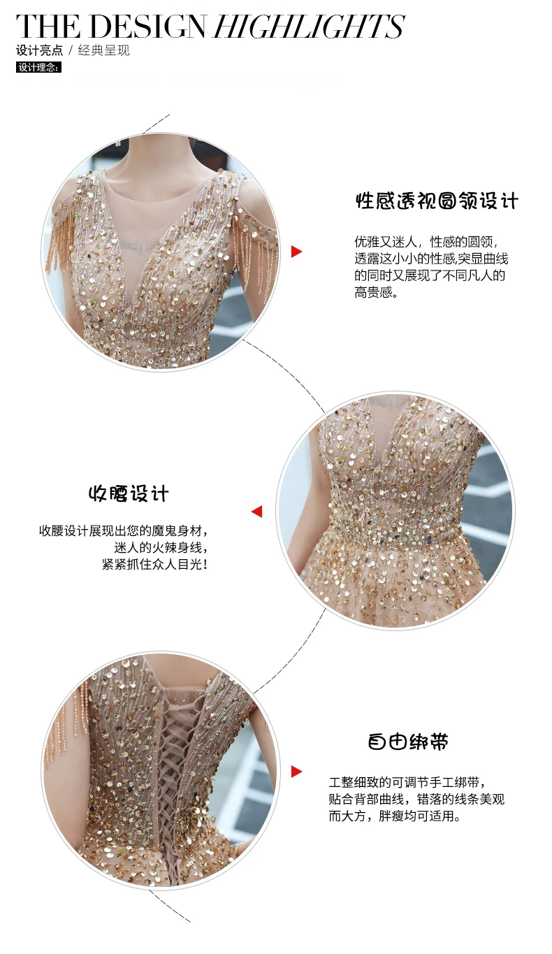 New sweat sequined long lady girl women princess banquet party prom performance dance ball dress gown