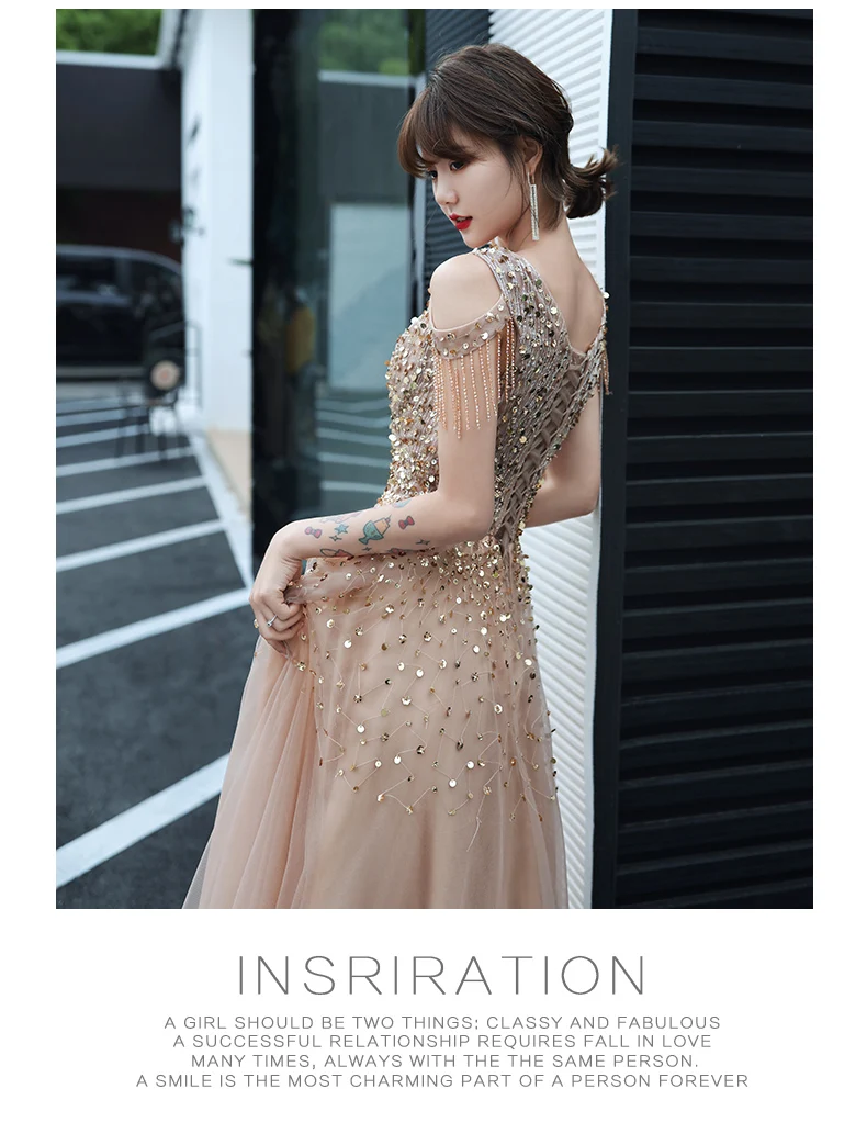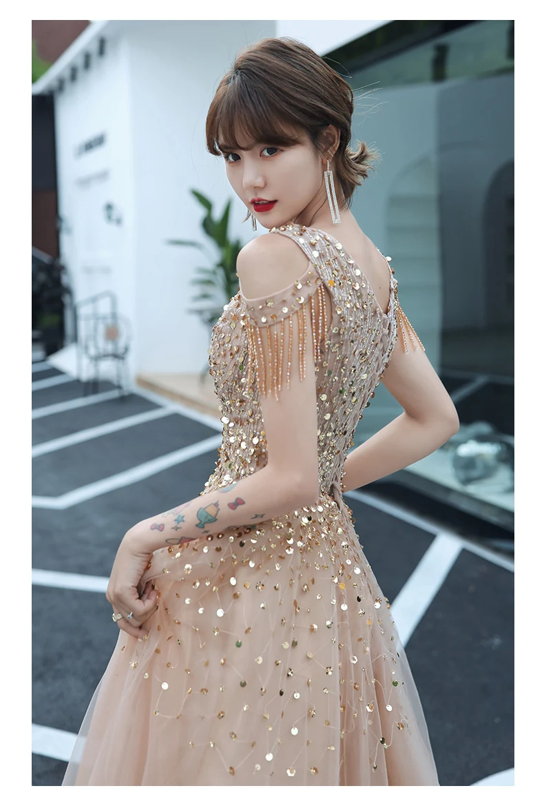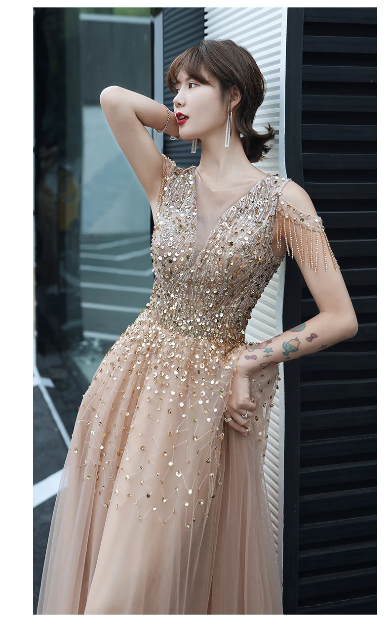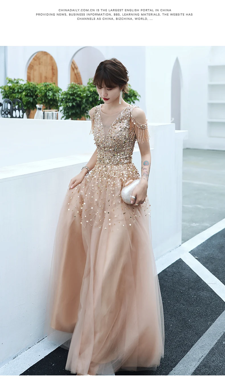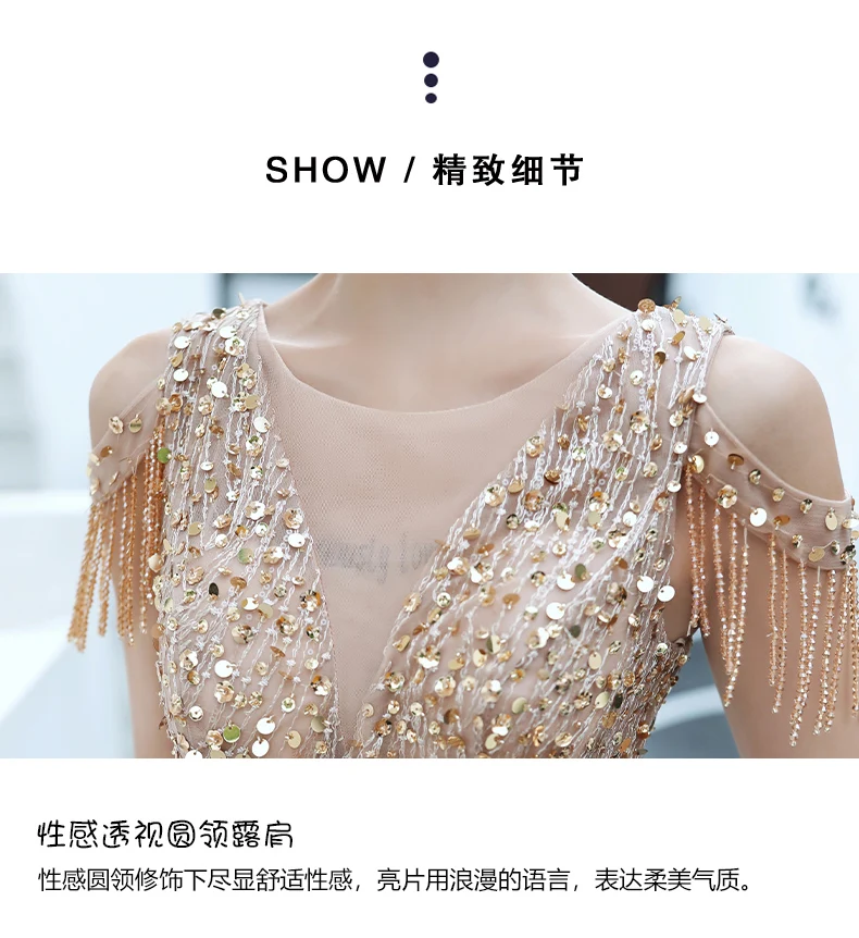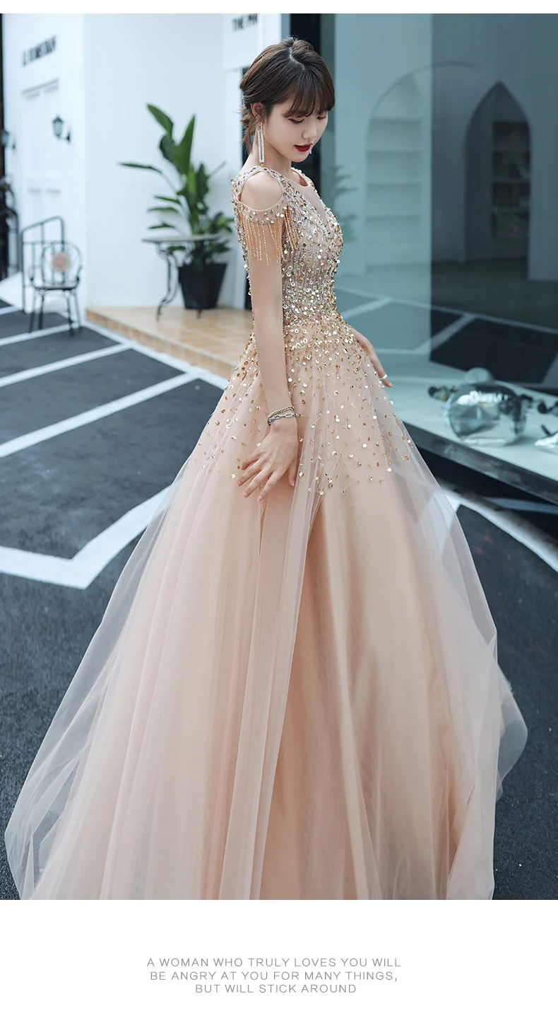 New sweat sequined long lady girl women princess banquet party prom performance dance ball dress gown