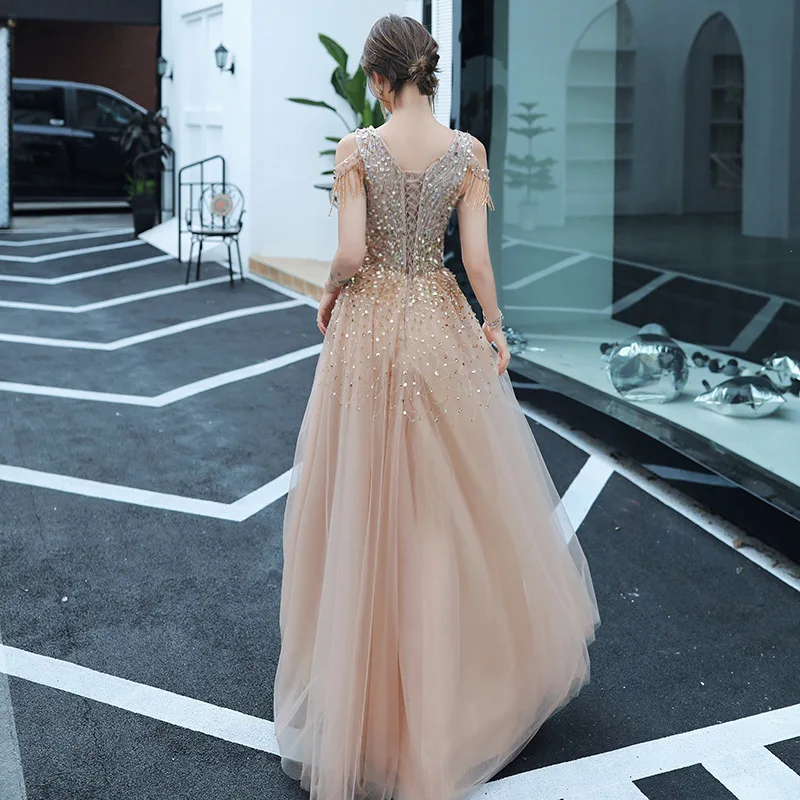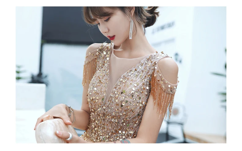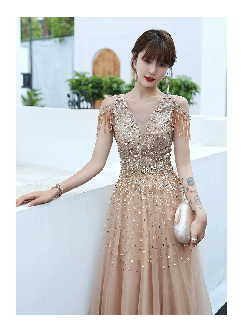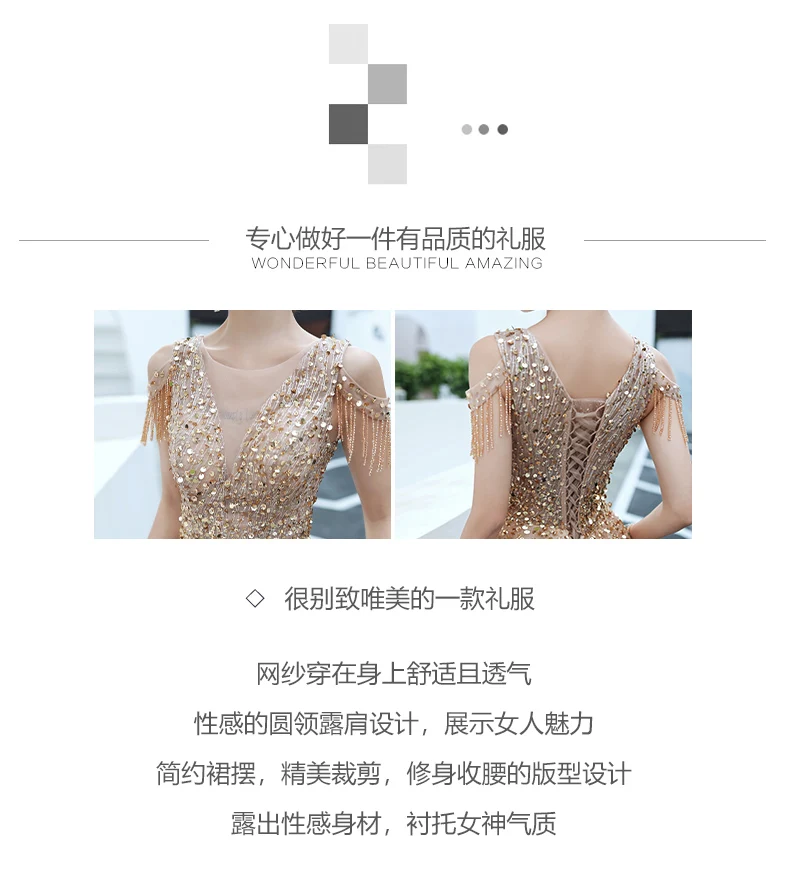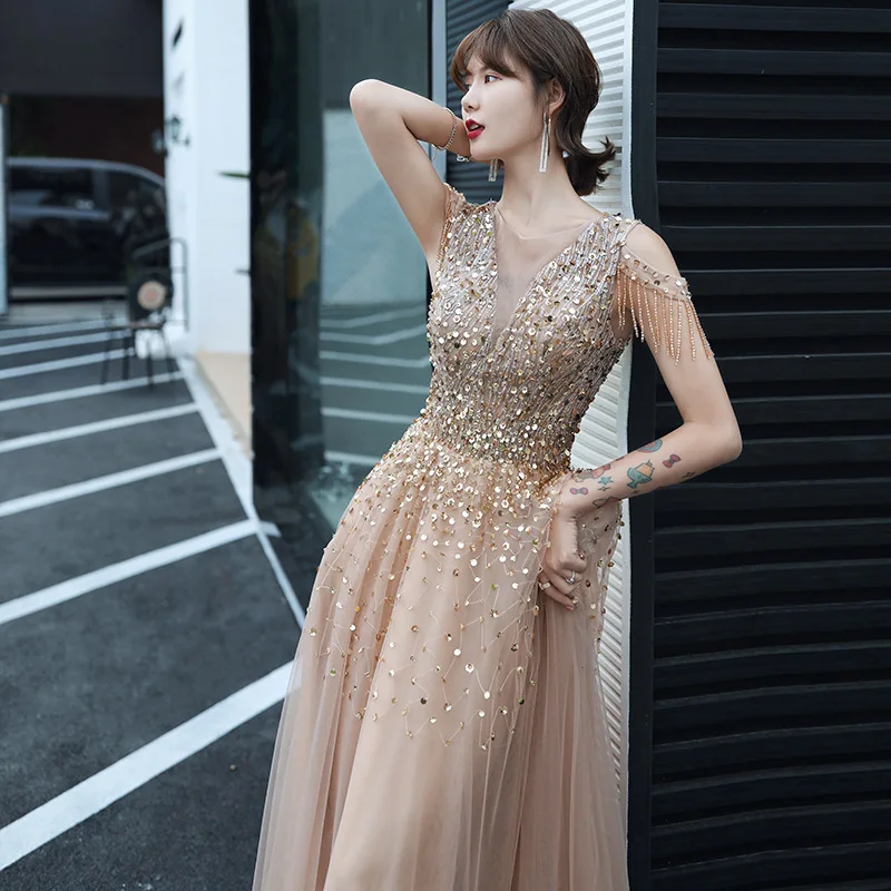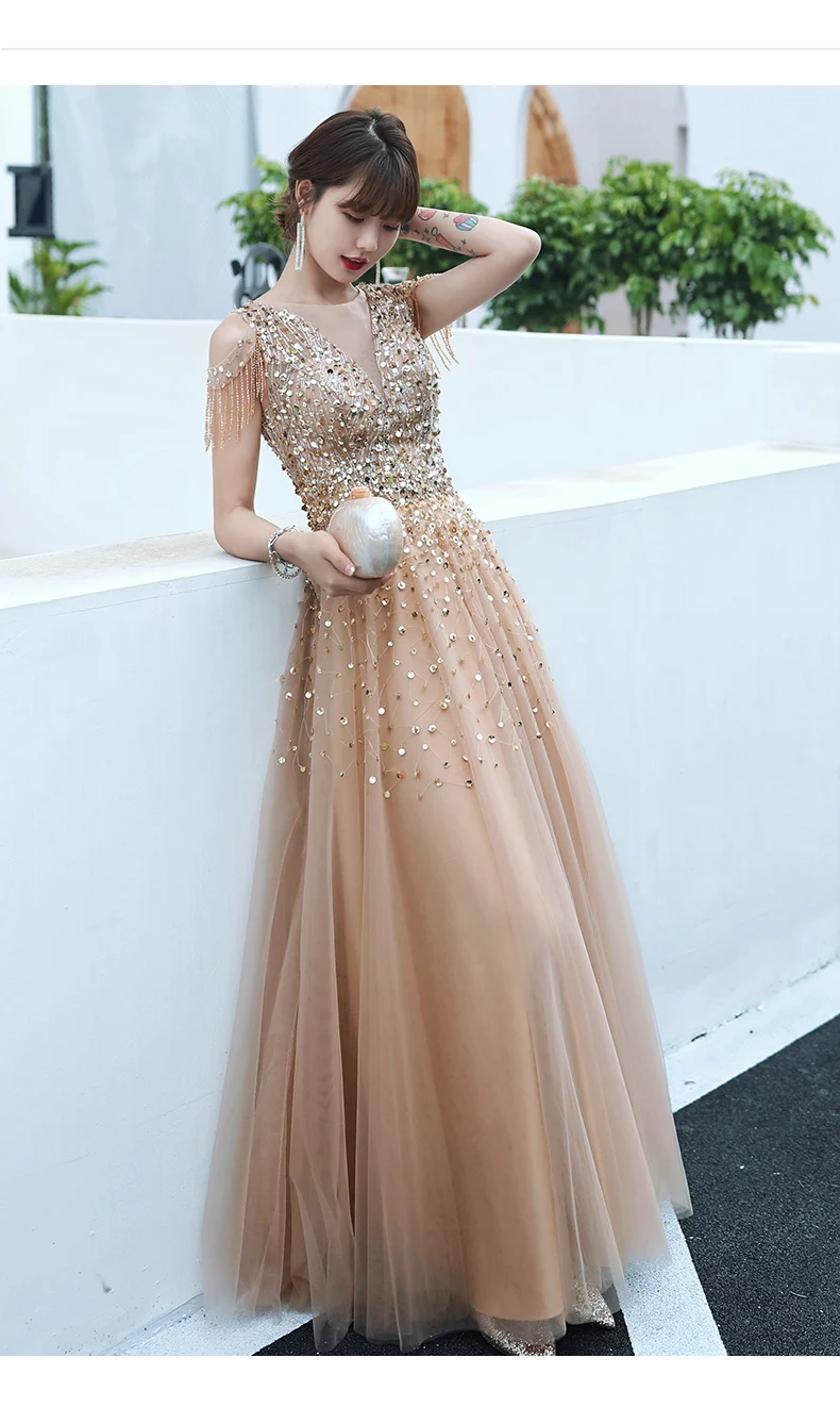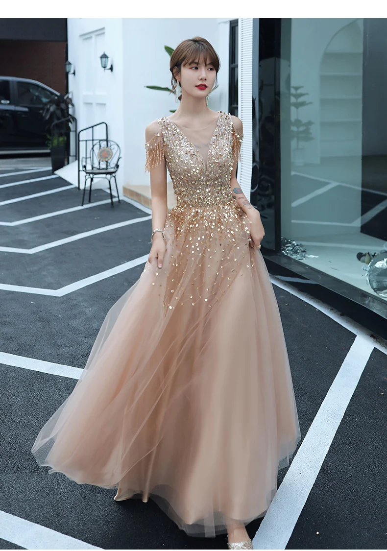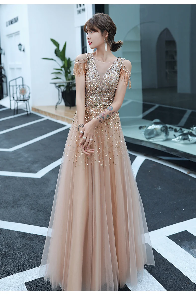 New sweat sequined long lady girl women princess banquet party prom performance dance ball dress gown