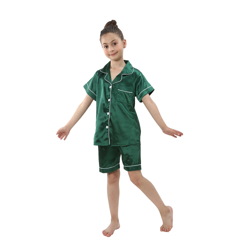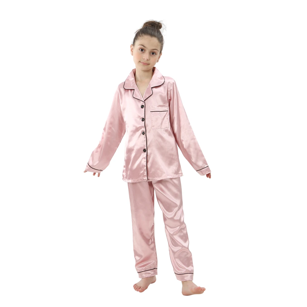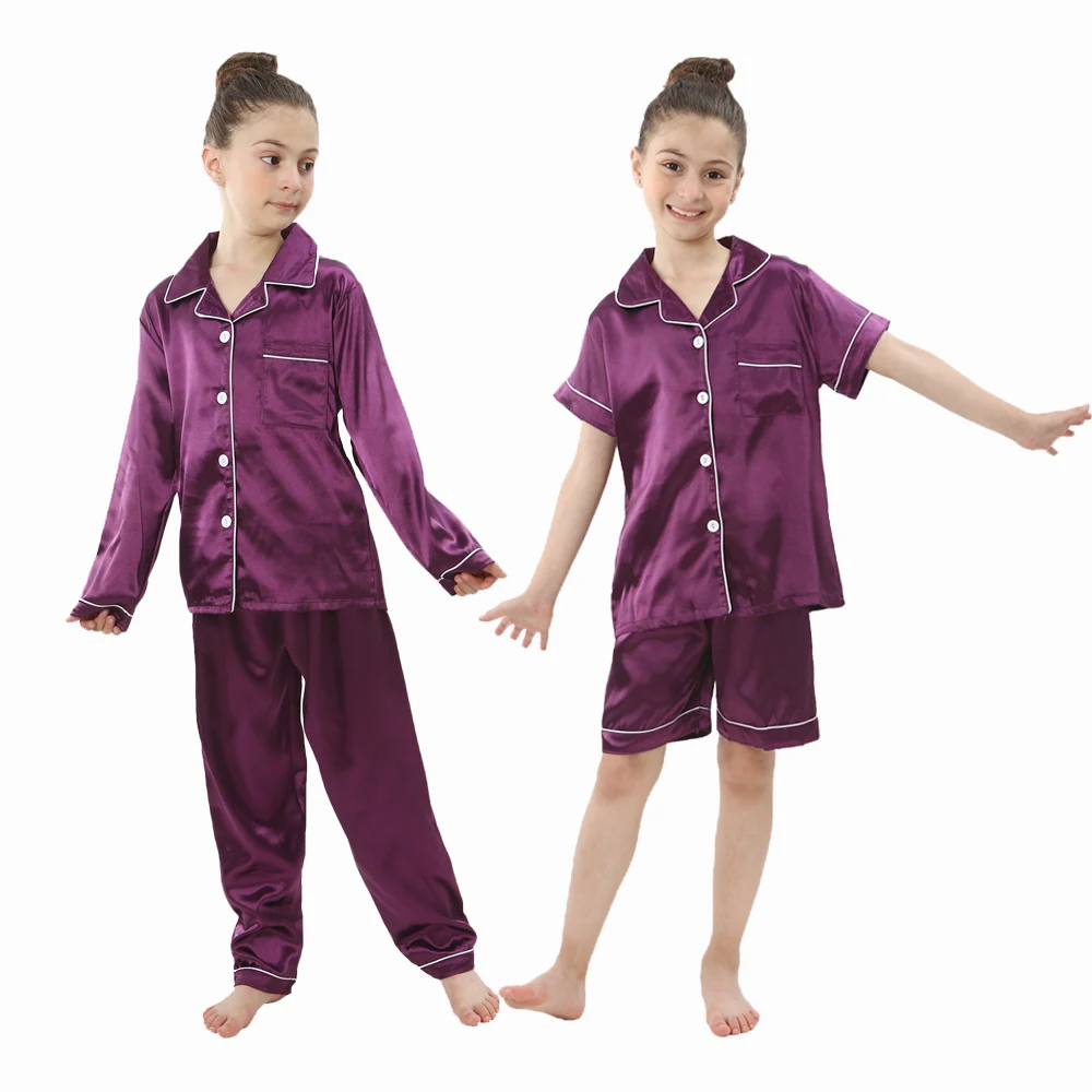 Spring Autumn Silky Pajamas for Boys Girls 2-14 Years Child 2pcs Long/Short Sleeve Shirt+Pant Suit Baby Satin Pyjamas Sleepwear