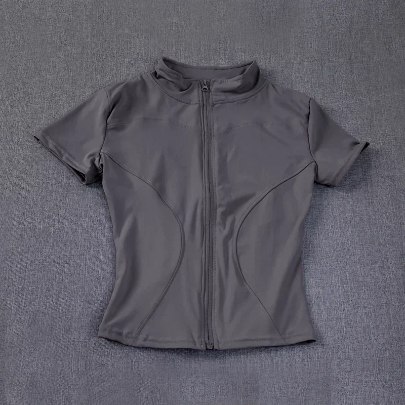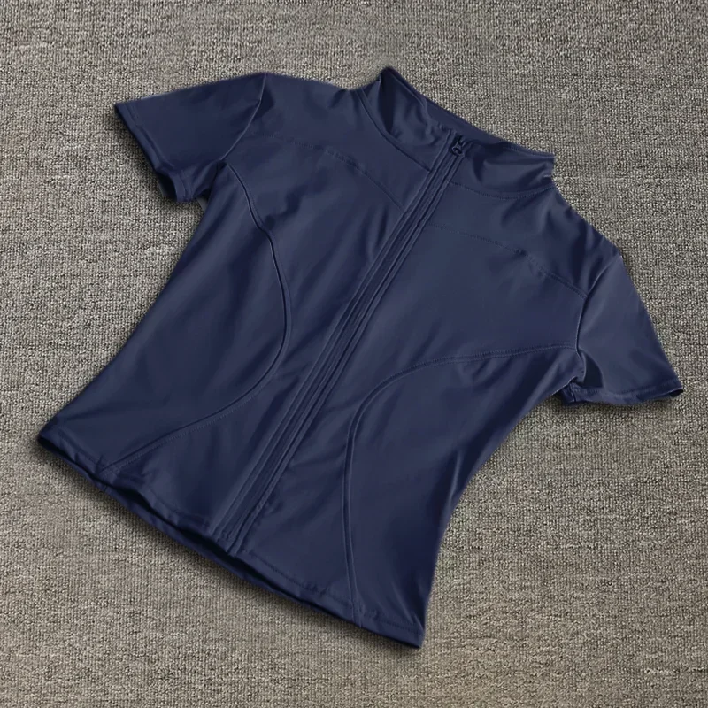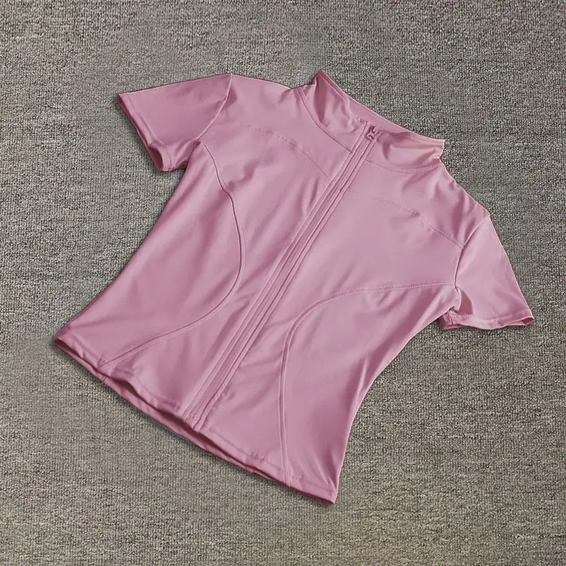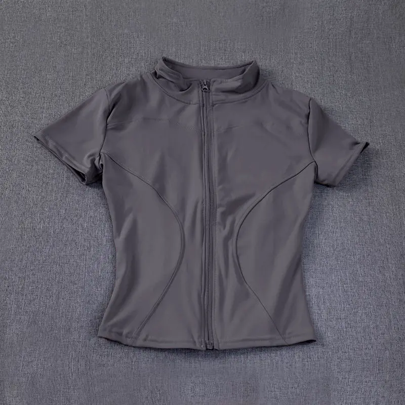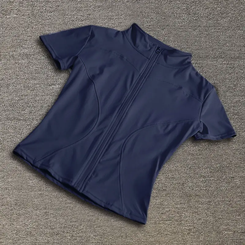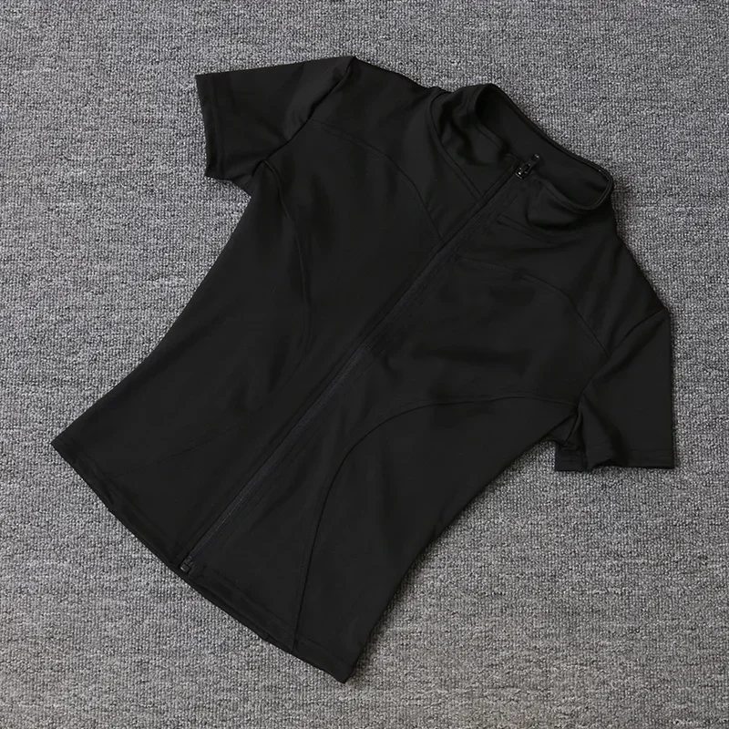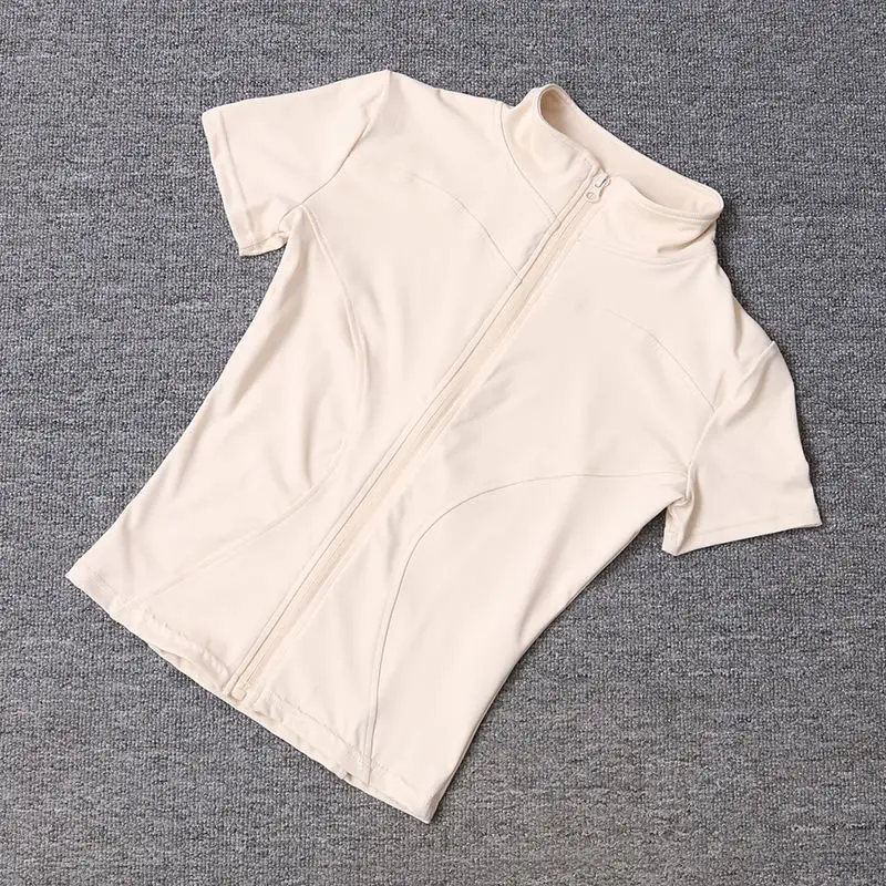 Summer High Quality Waist Slimming Training Tops Women’s Quick-drying Tight Stand Collar Full Zipper Short Sleeves Yoga shirts