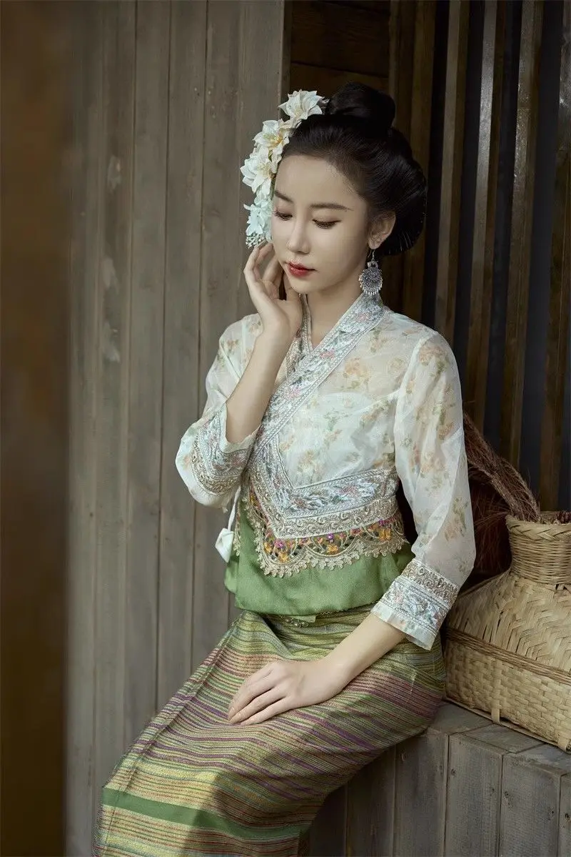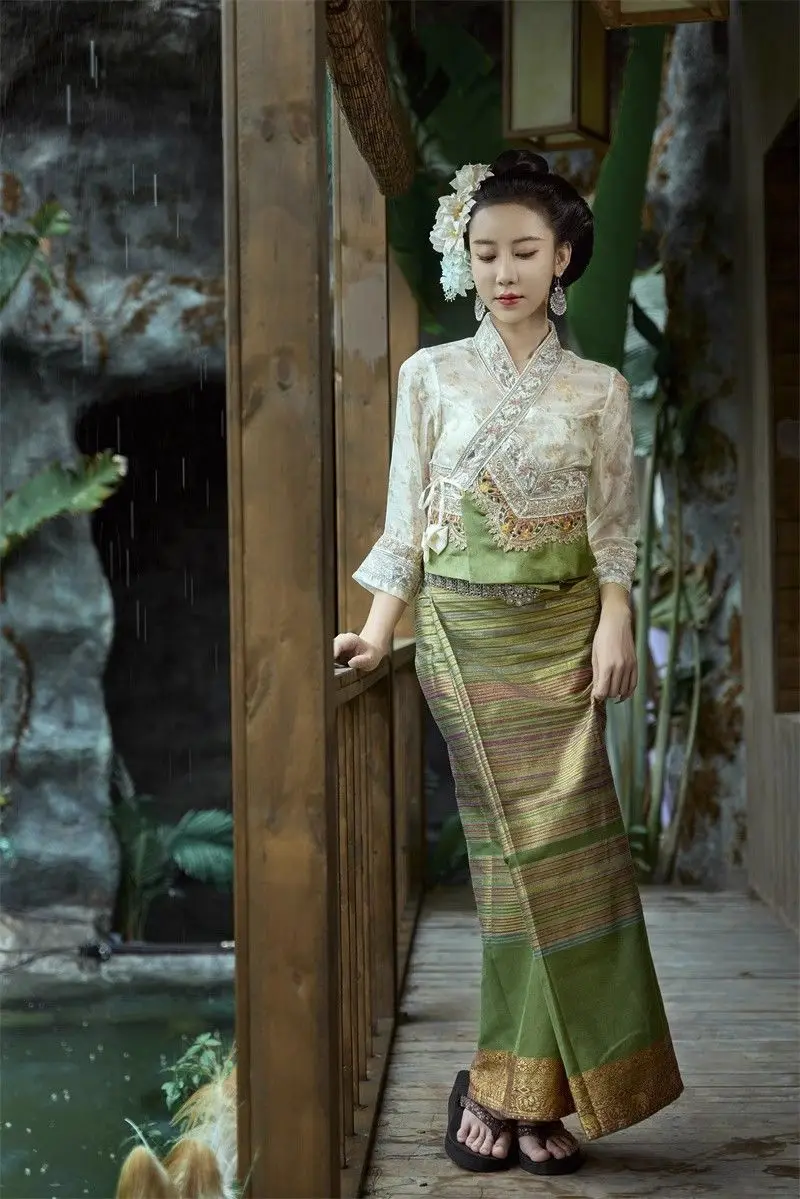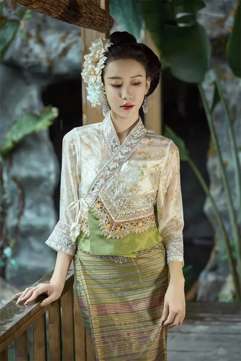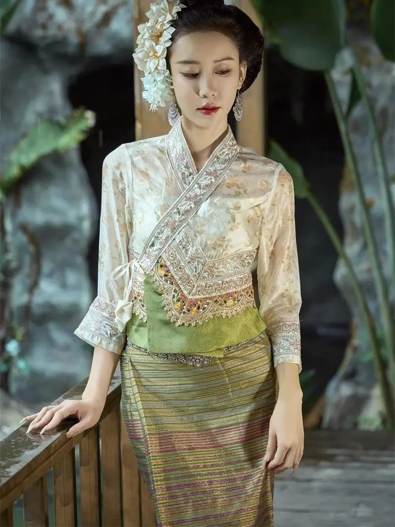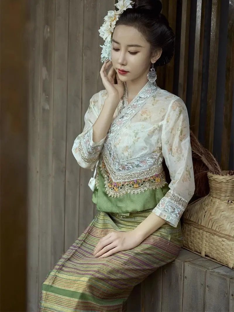 Thai Clothing Ethnic Style Elegant and Sweet Shirt Blouse Women’s Clothing Travel Outfits Street Tube Skirts