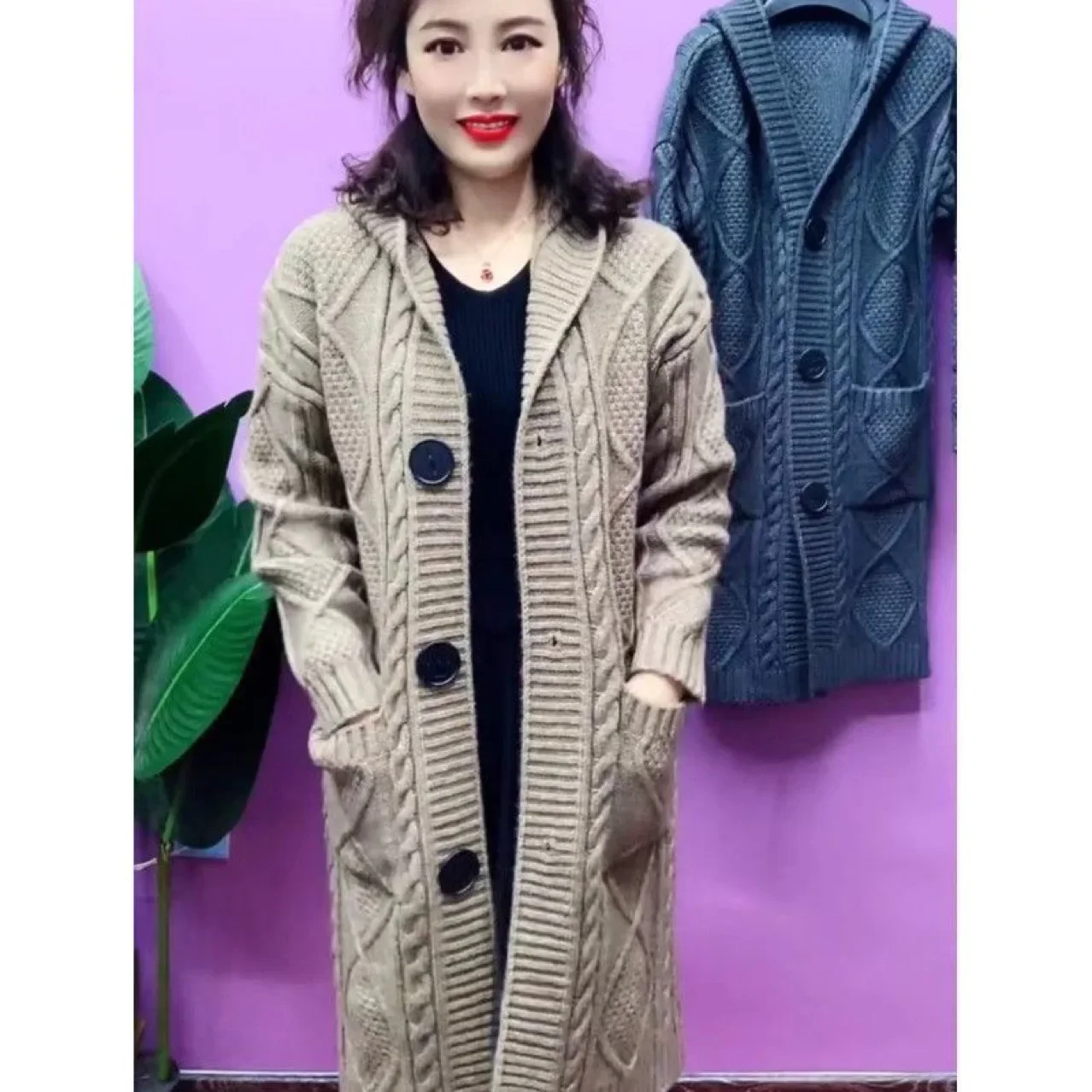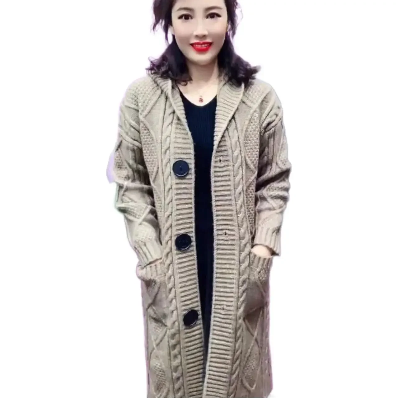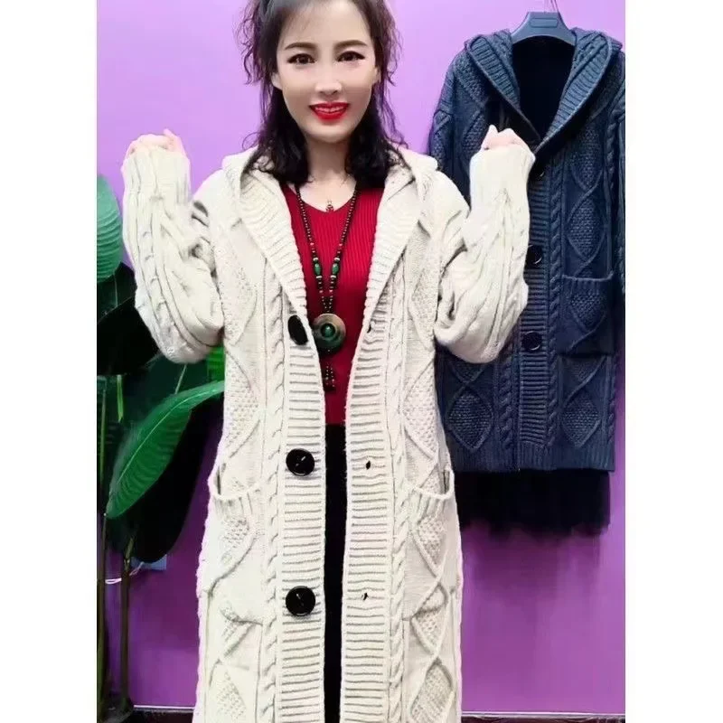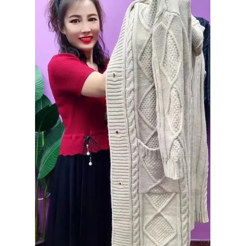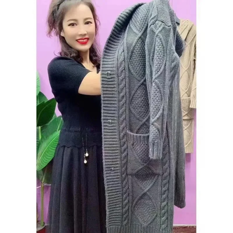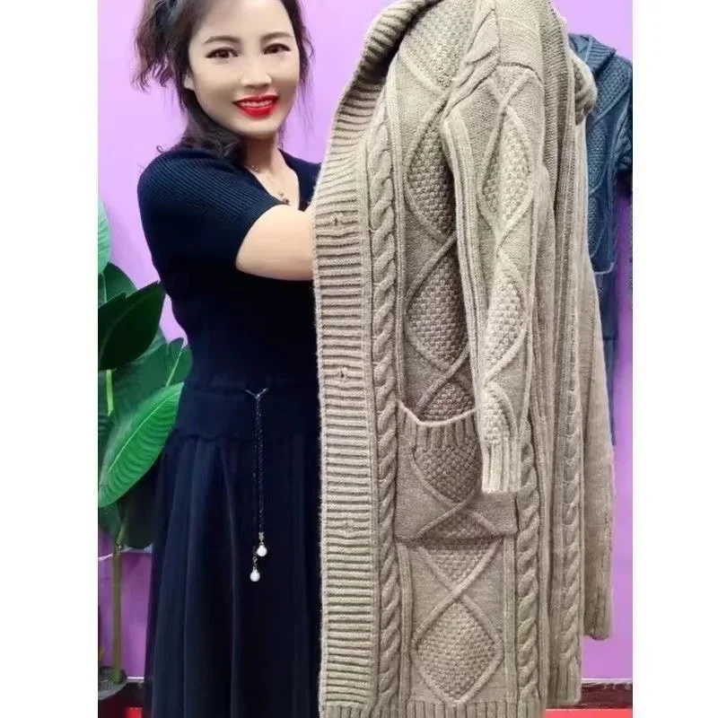 Thickened Large Knitted Hat Women’s Spring Autumn Cardigan Outerwear Spring Autumn Top Coat Casual Comfortable Knitwear