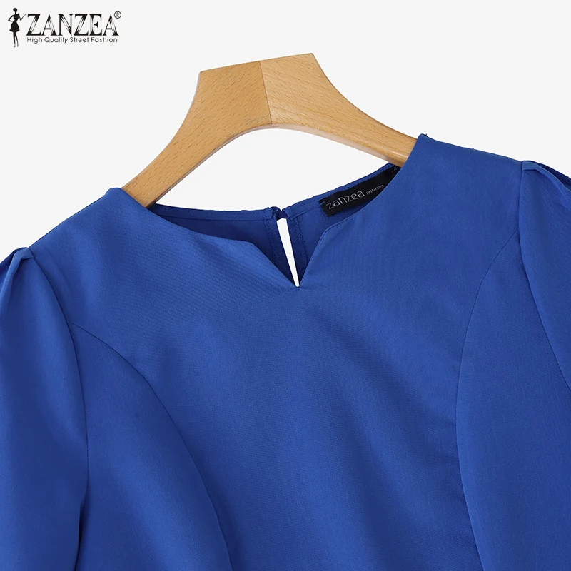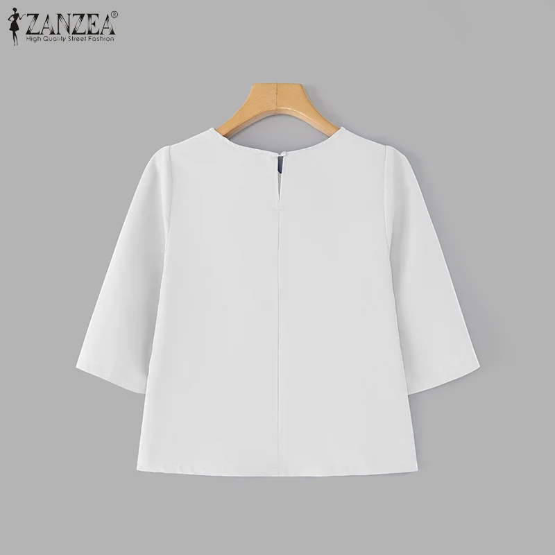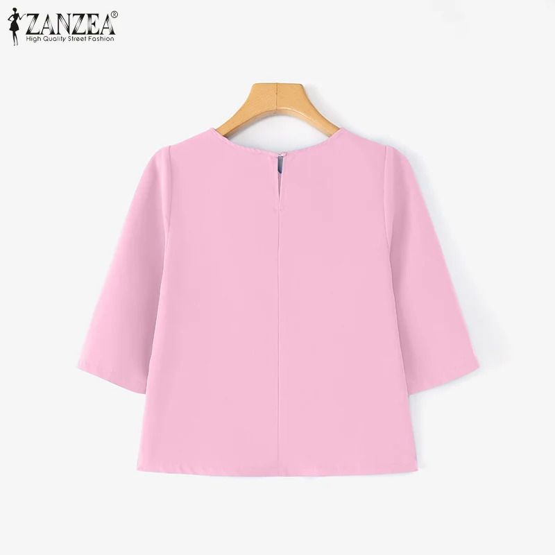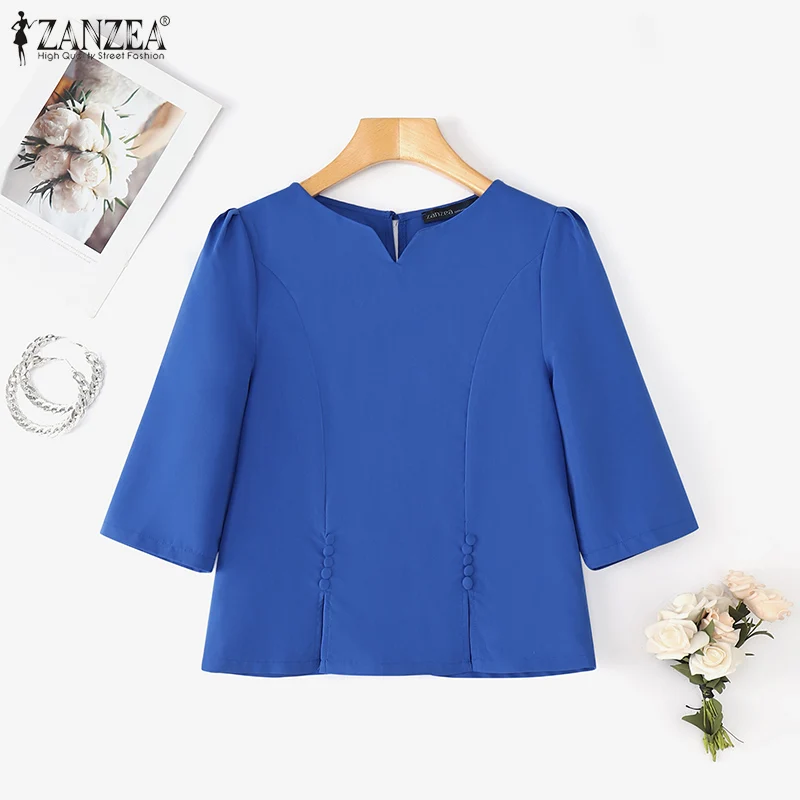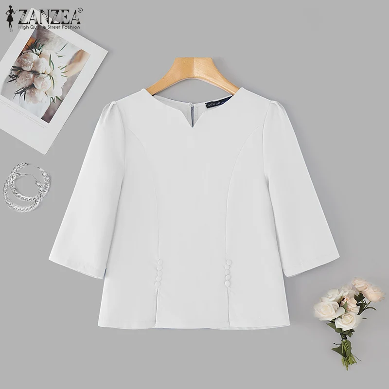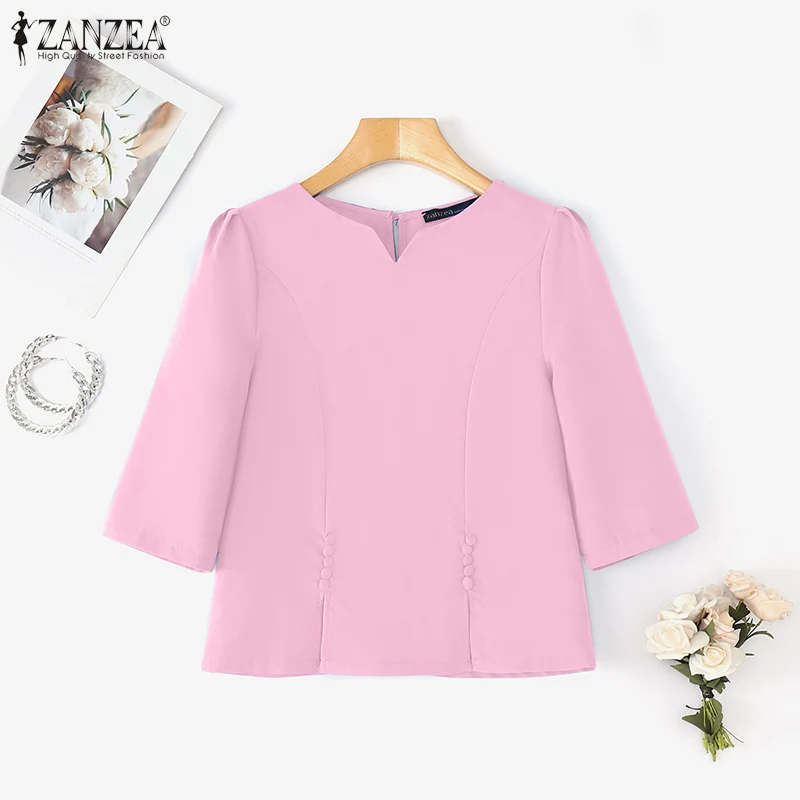 Vintage Blouse Women Spring 3/4 Sleeve Tops Fashion Work Pullovers Casual Loose V Neck Tunic Solid Buttons Blusas ZANZEA 2025