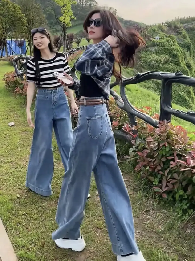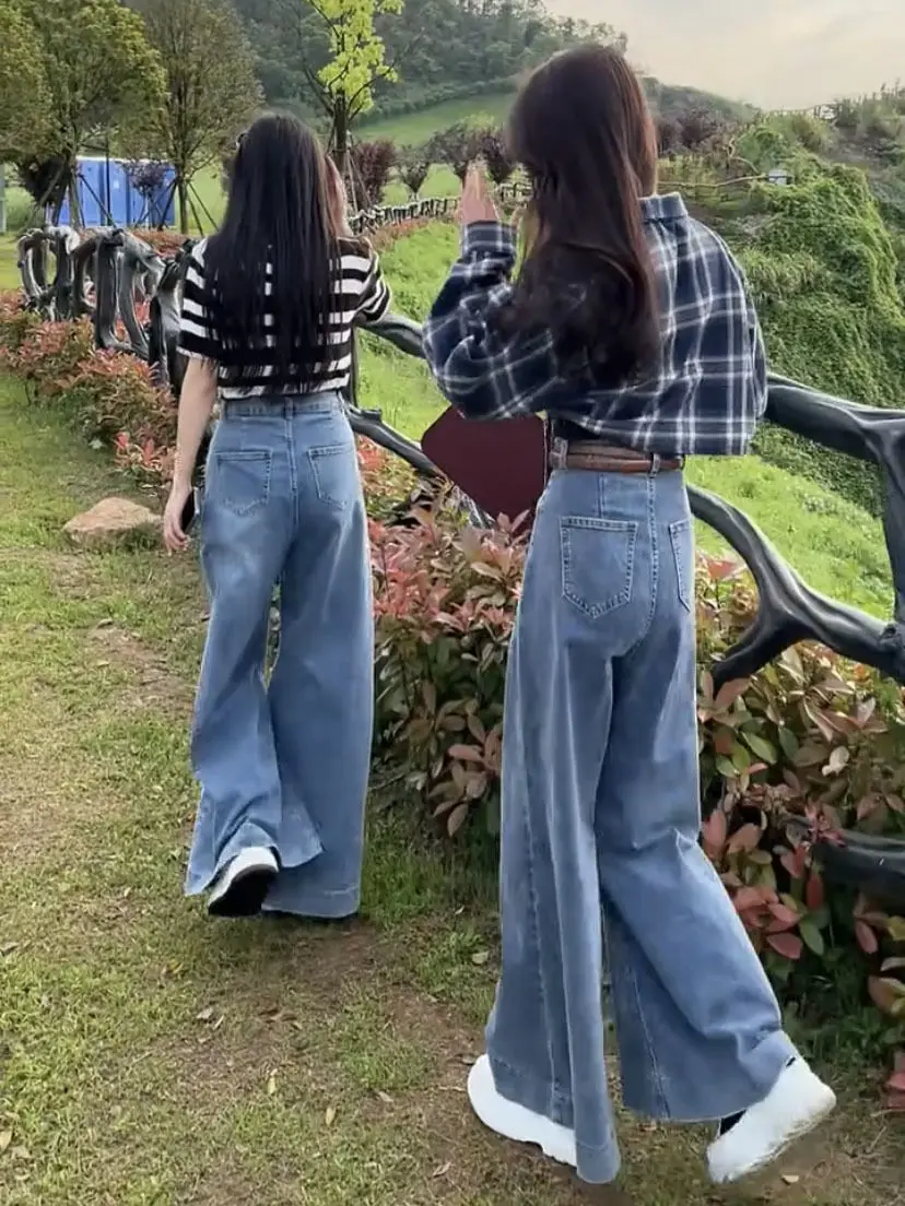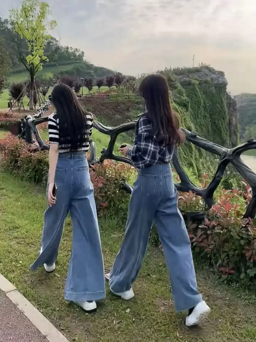 Wide leg jeans 2024 spring new Korean version commuting high waisted slim fit design floor dragging wide leg pants