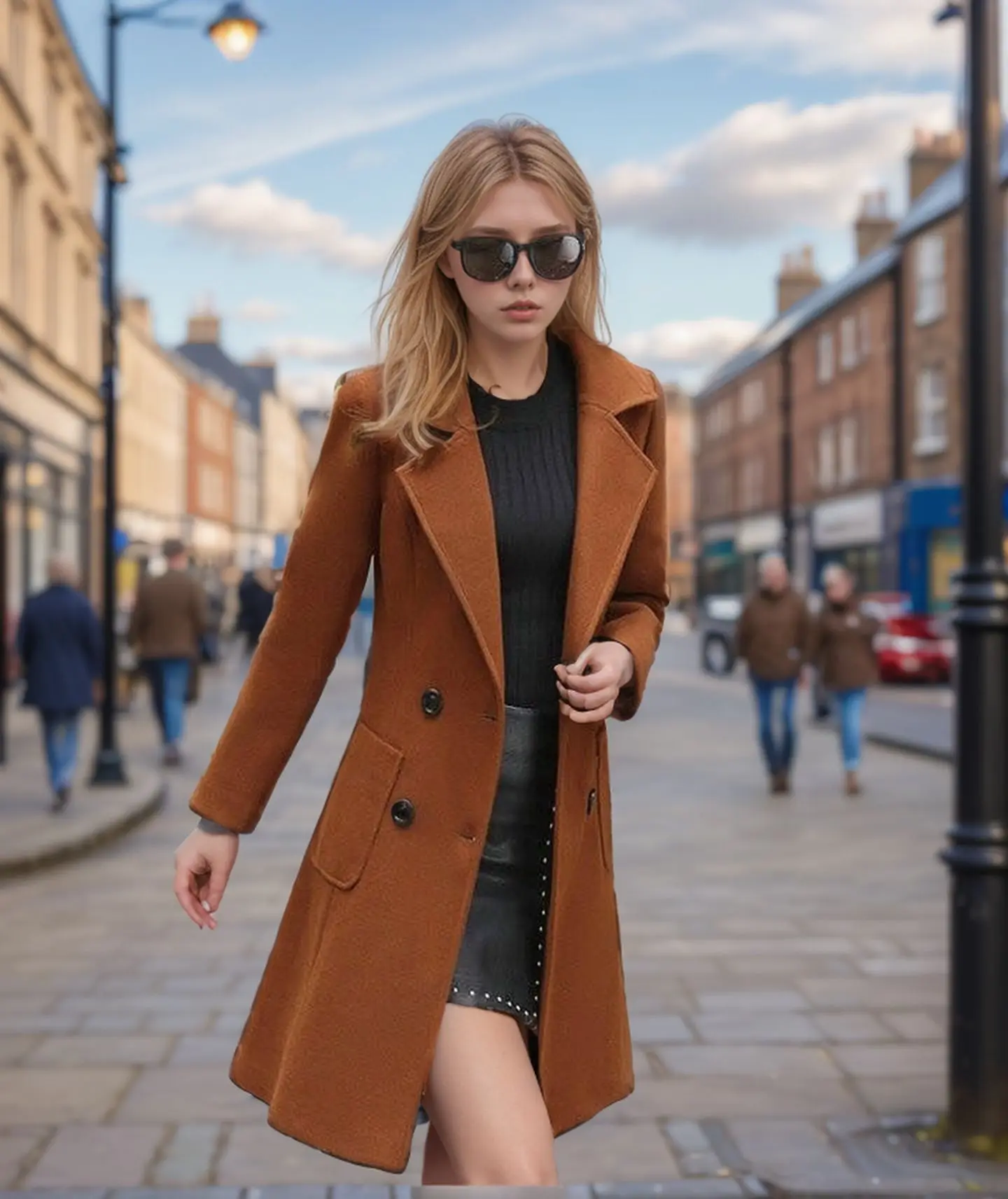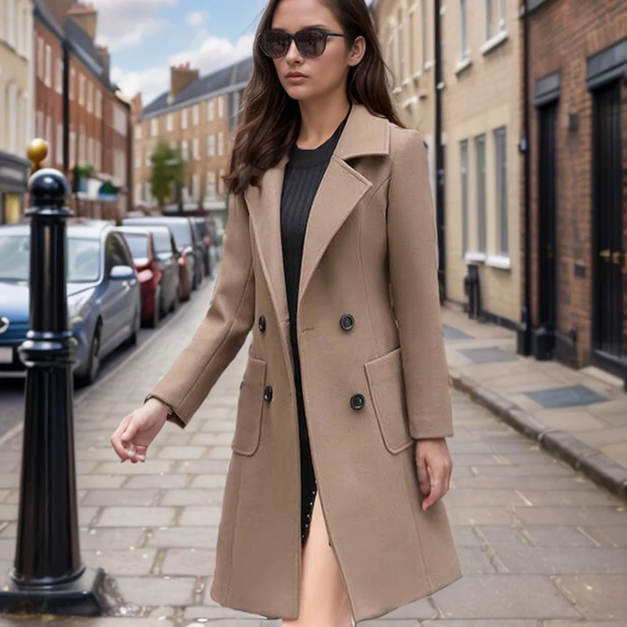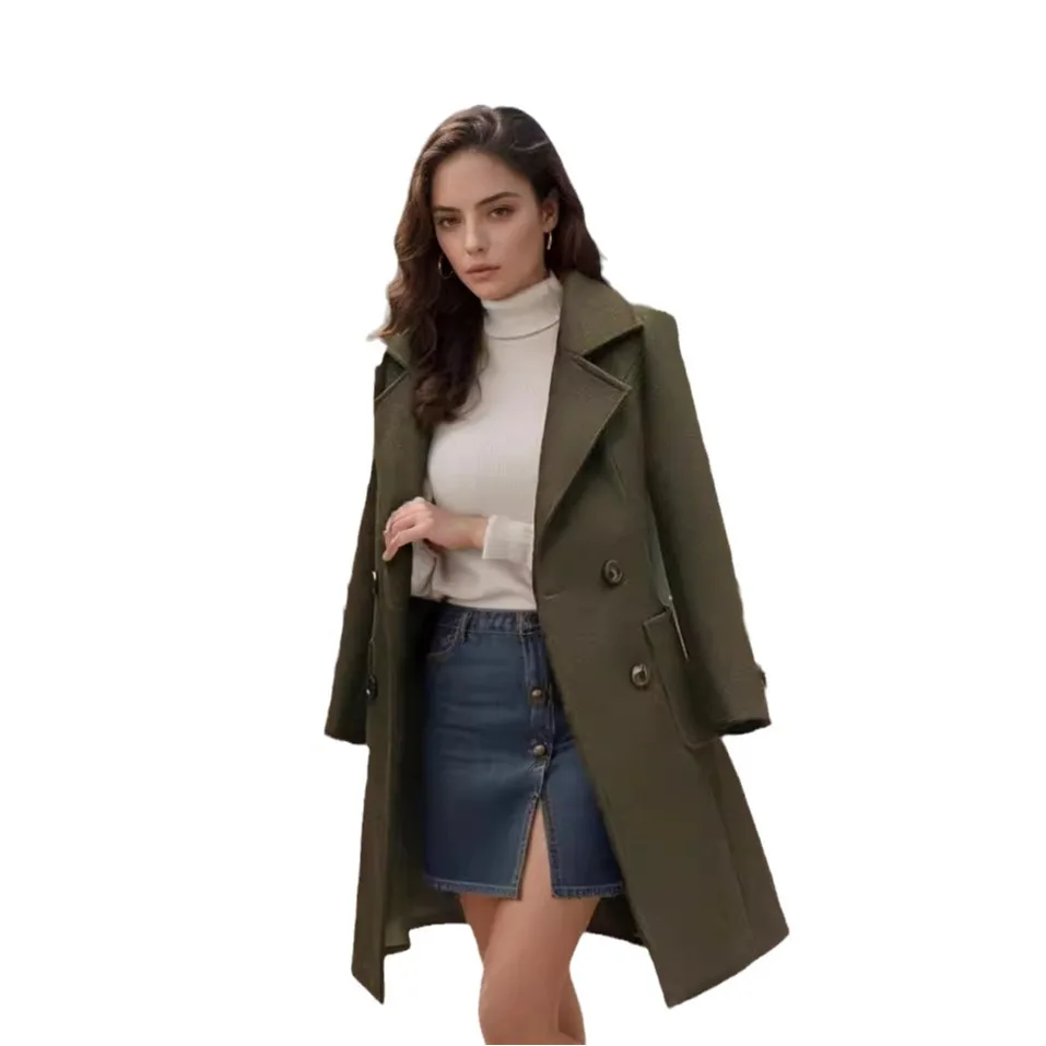 Women Wool Coat Lapel Trench Coat Long Jacket Woolen Overcoat Slim Fit Pockets Versized 2025 Lady Luxury Street Outerwear